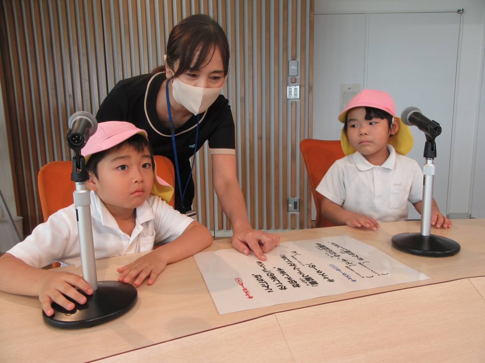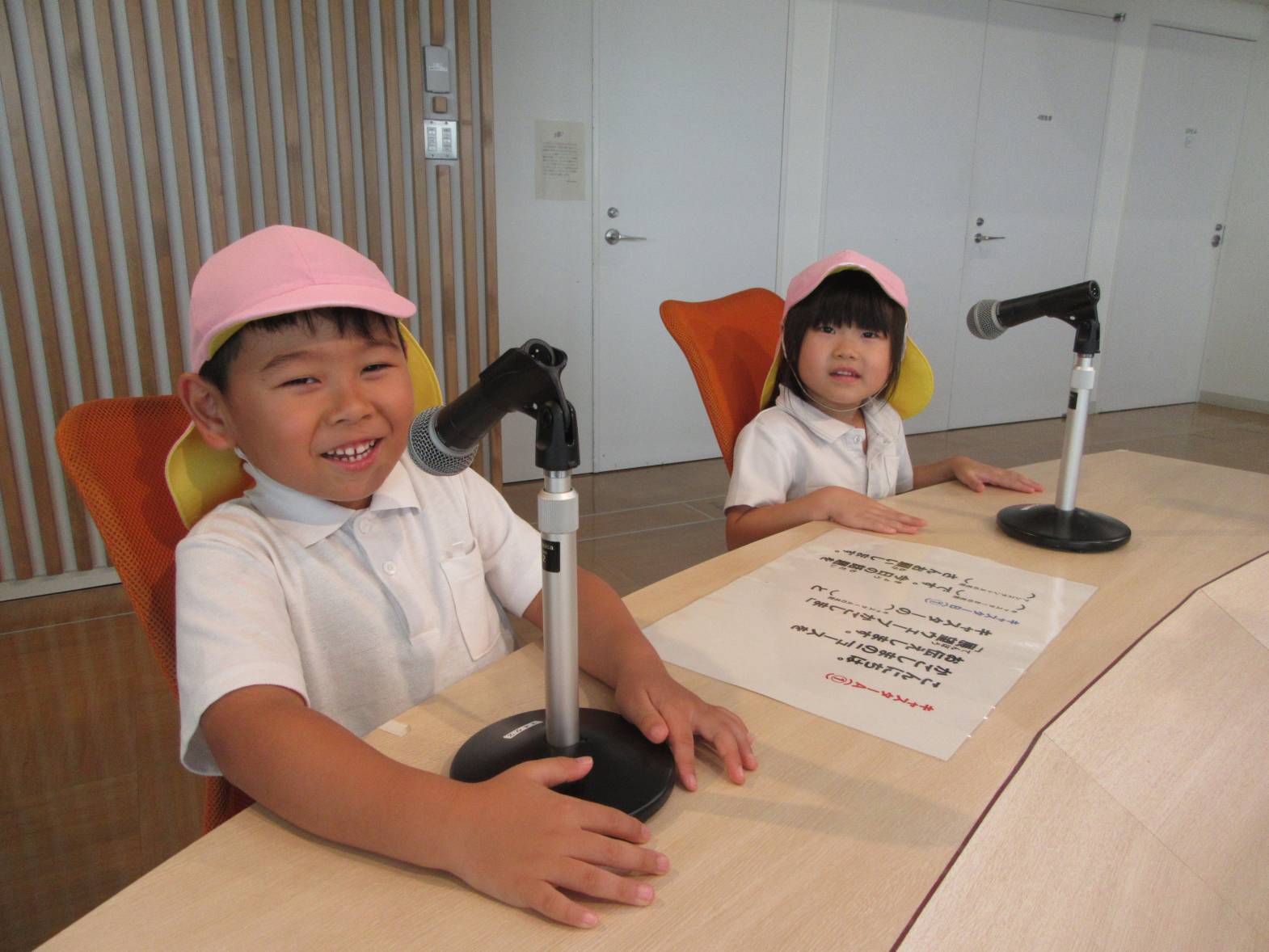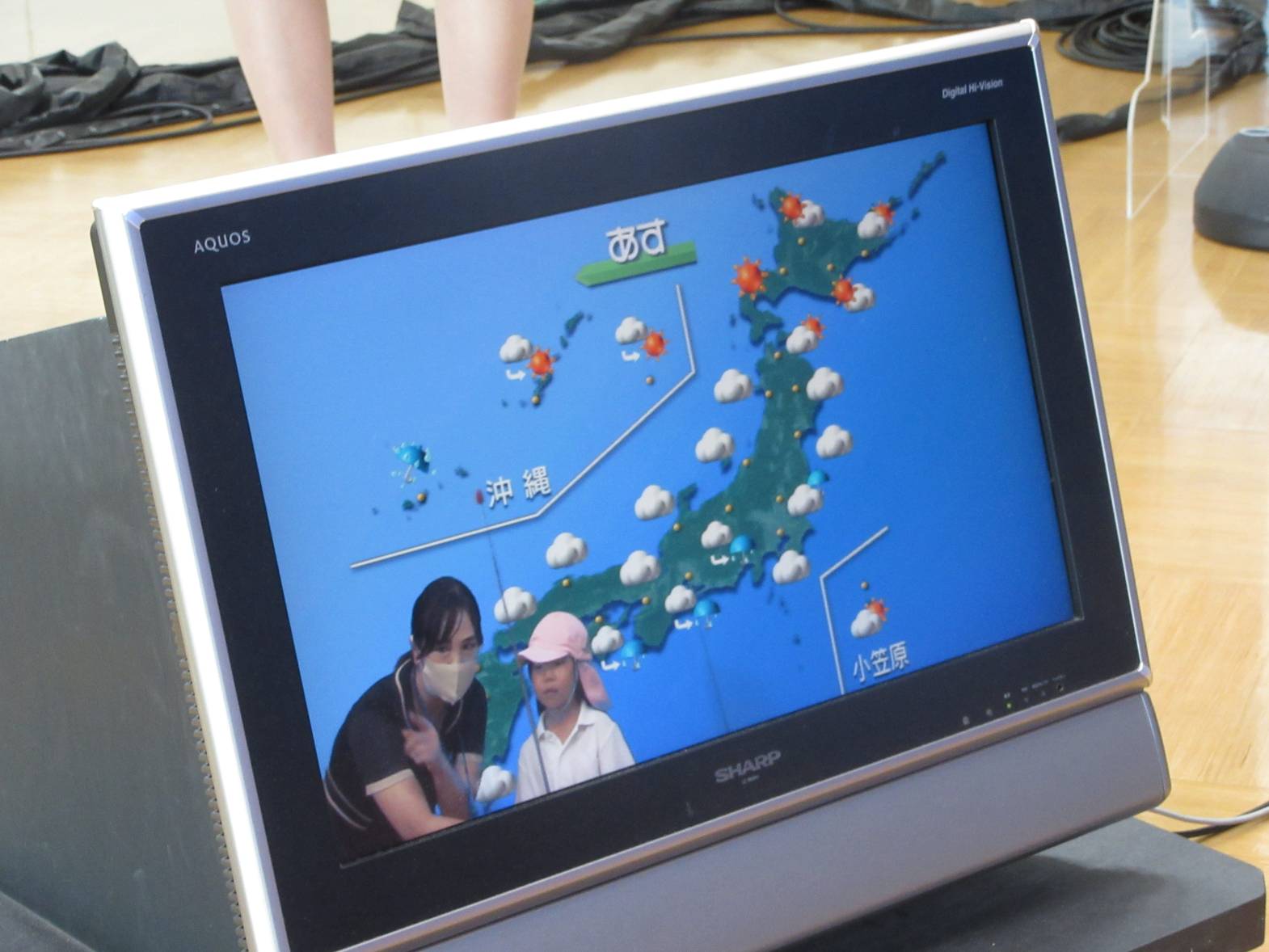 アナウンサーや天気予報コーナーの体験では、「キャスターの○○です。」と自己紹介をしてみたり、「天気は晴れです!」と天気予報士さんになりきったりした子どもたち。