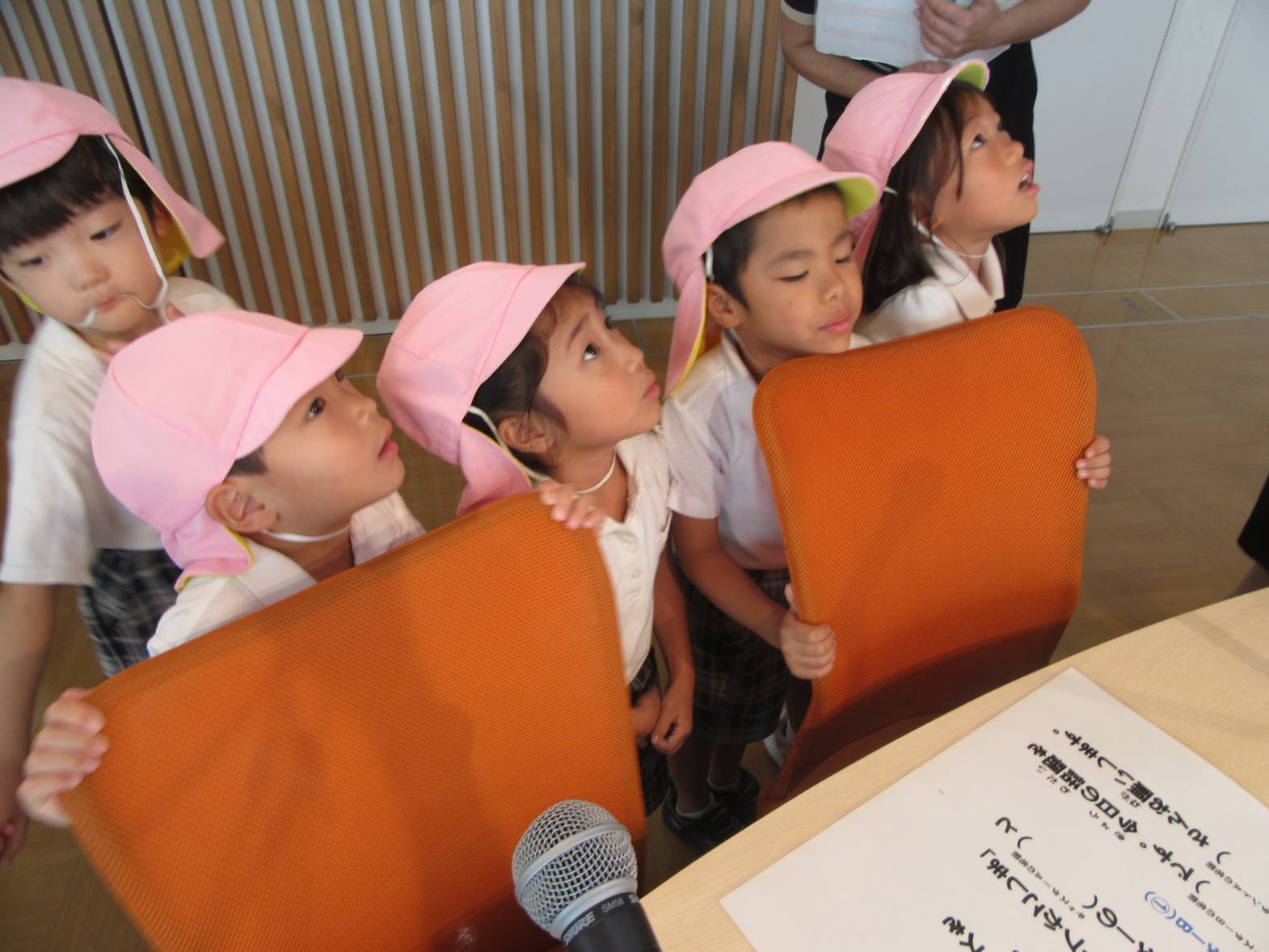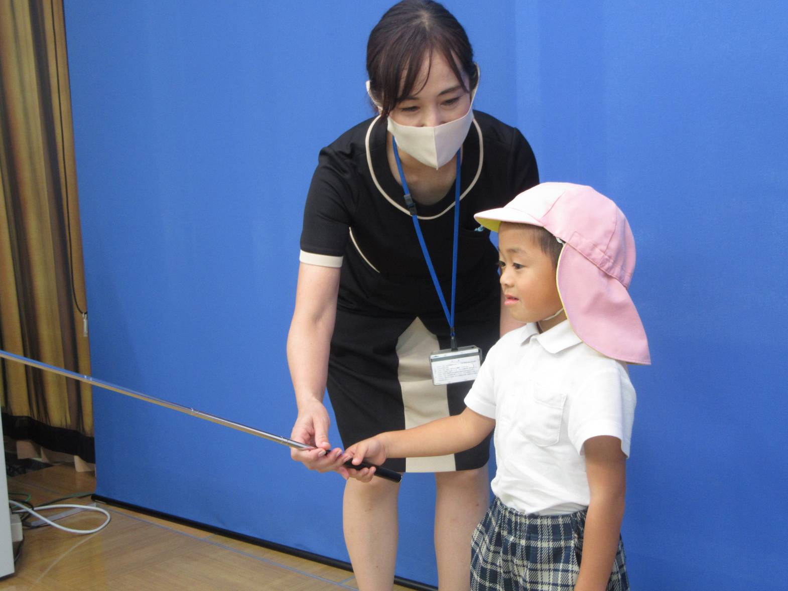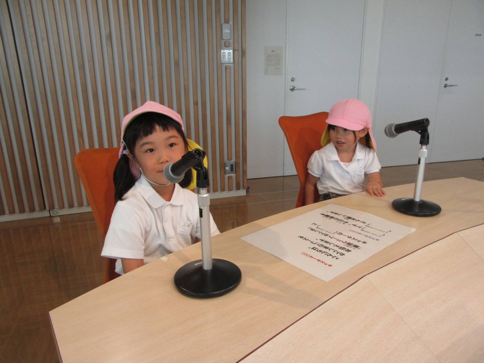 アナウンサーや天気予報コーナーの体験では、「キャスターの○○です。」と自己紹介をしてみたり、「天気は晴れです!」と天気予報士さんになりきったりした子どもたち。