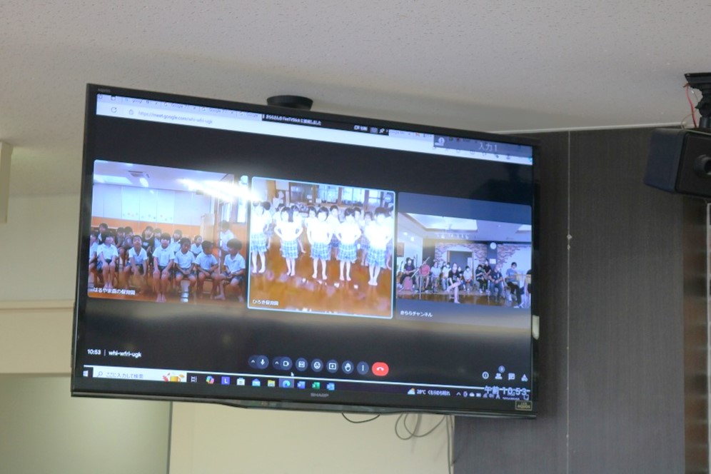 ひろき保育園、はるやま森の保育園の園児の皆さんとリモートで交流しました。 それぞれの園児の皆さんが、元気いっぱいに歌や振り付けを披露してくれて 私たちも自然と笑顔で応援していました。 きららからは、バンド演奏を披露しました。 「世界中のこどもたちが」の選曲がひろき保育園と被ってしまう というアクシデントもありましたが、園児の皆さんも 「じょうず!」「かっこいい!」とたくさん声を掛けてくれました。 また次回も楽しい交流の時間を過ごしましょう。