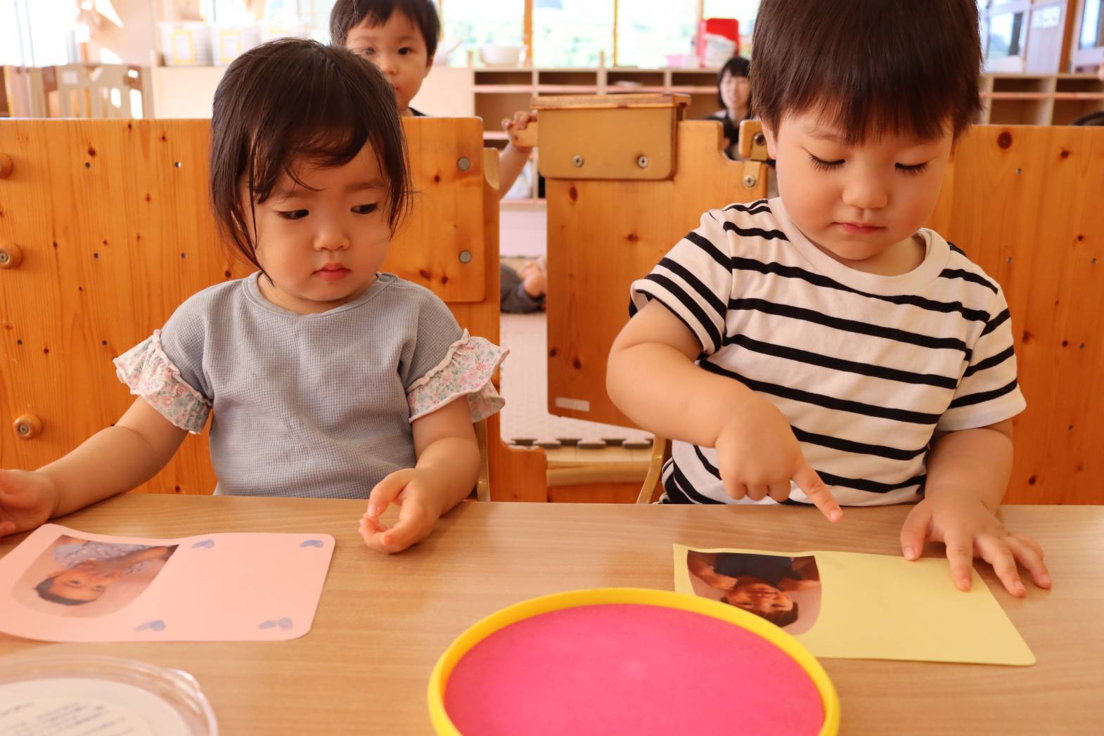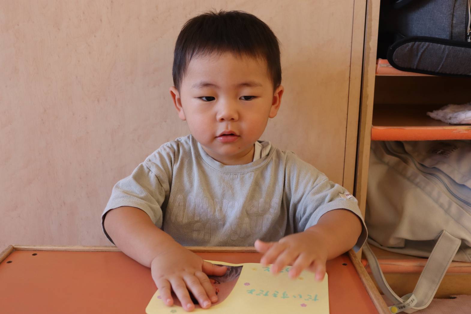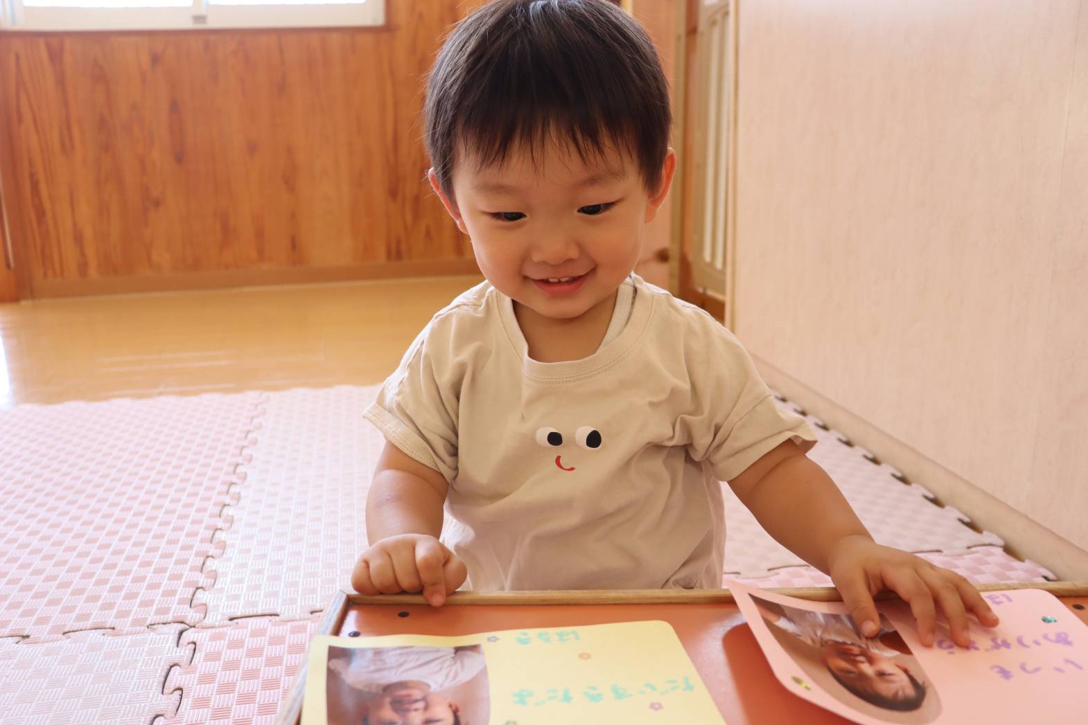 先日は敬老の日で、大好きなおじいちゃん、おばあちゃんへ 指スタンプを使った製作を行いました。 ピンク色でコスモスを作ったり、青色でハートをしました。 「ペッタンするの?」「ピンクだ!かわいい!」と、ニコニコしながら一生懸命に取り組みました。 「おじいちゃん、おばあちゃんに、どうぞしてね!」と伝えると、 「うん!」と嬉しそうにしていた子どもたち。 かわいらしい作品を是非見て頂けたらと思います。