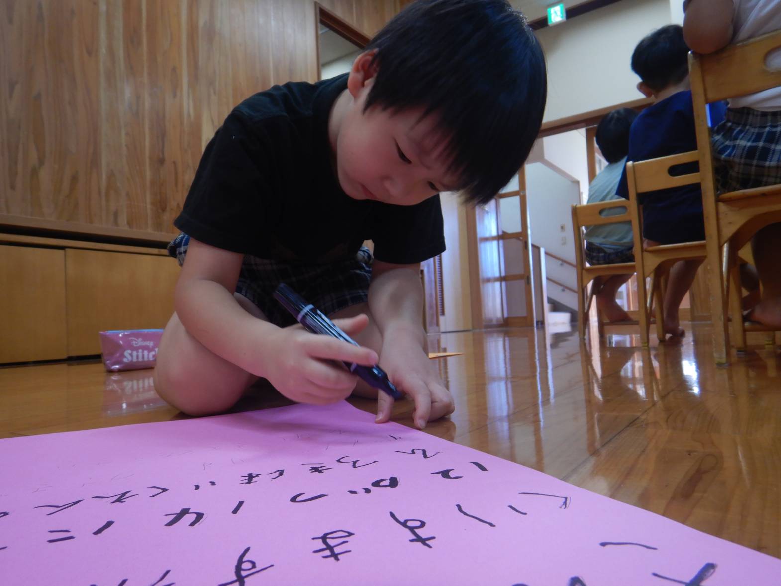 12月のクリスマス会に向けて、きりん組でサミットを行いました。 「お父さんとお母さんに見に来てほしいよね。」「ダンス見せたいね。」と意欲的に意見を出しあう子どもたち。 他にも「サンタさん来てくれるかな?」、「お手紙書いたらわかるんじゃない?」とクリスマスへの期待を高める姿が見られました。 招待状も、「クリスマスだから、ツリーと雪だるま書こう!」、「いっぱい絵を描いた方が可愛いよね!」と自分たちで描いていきます。 「クリスマス会楽しみだね!」と、クリスマス会に向けてやる気満々なきりん組さんです!