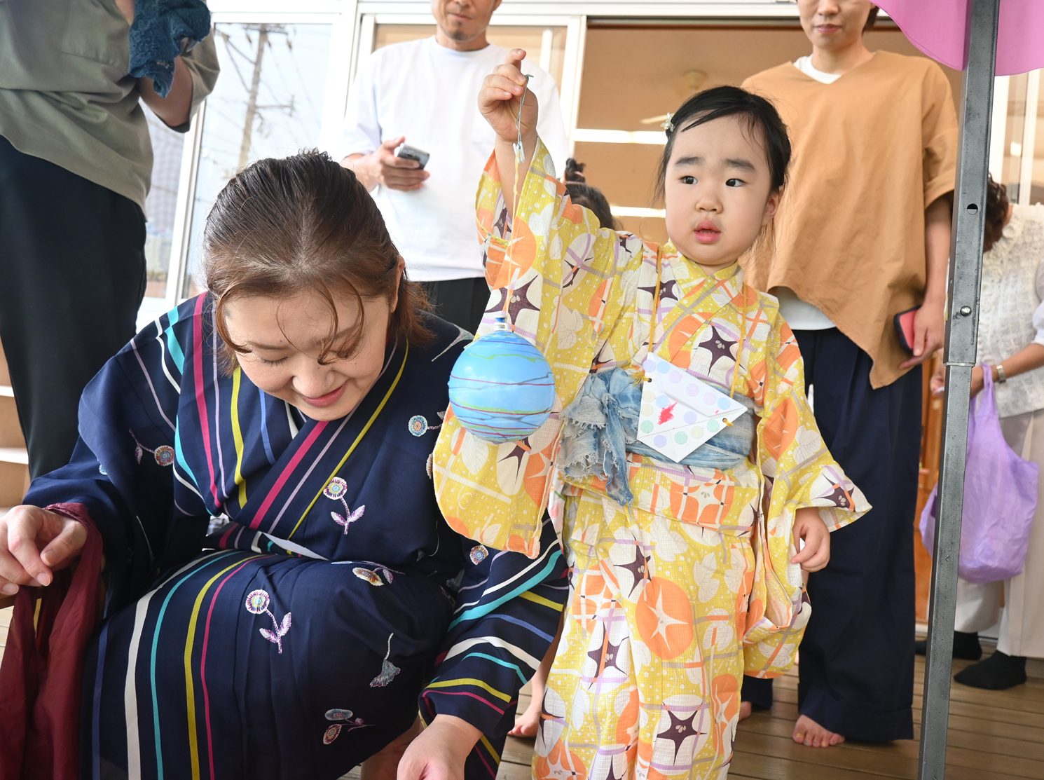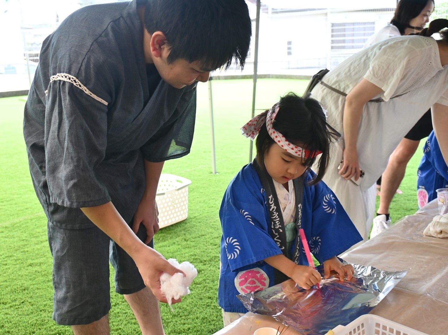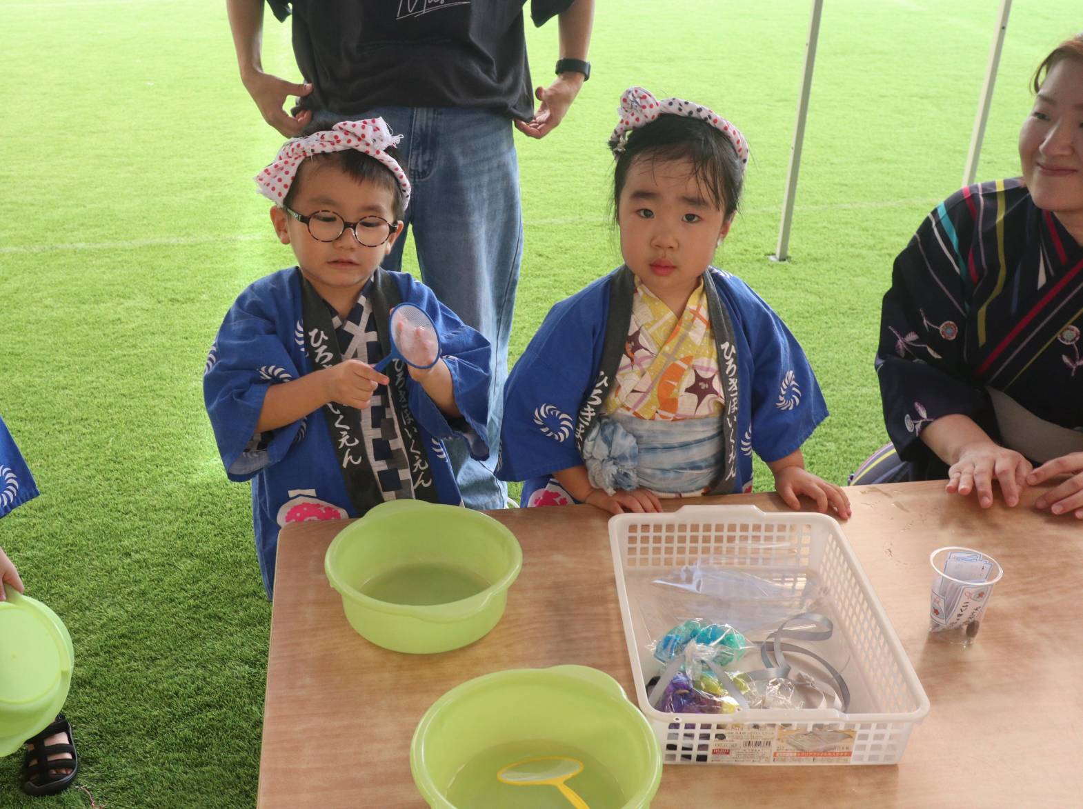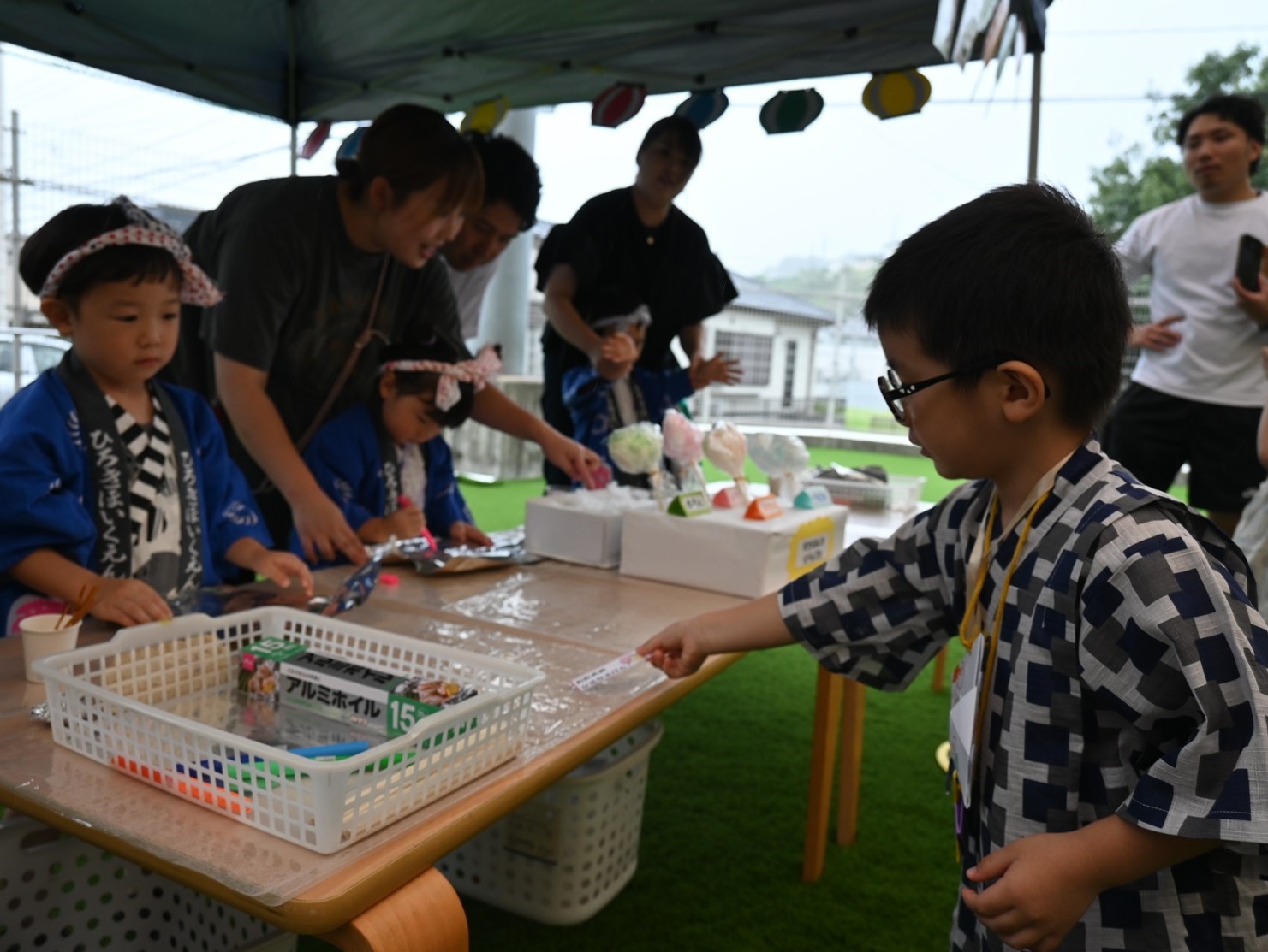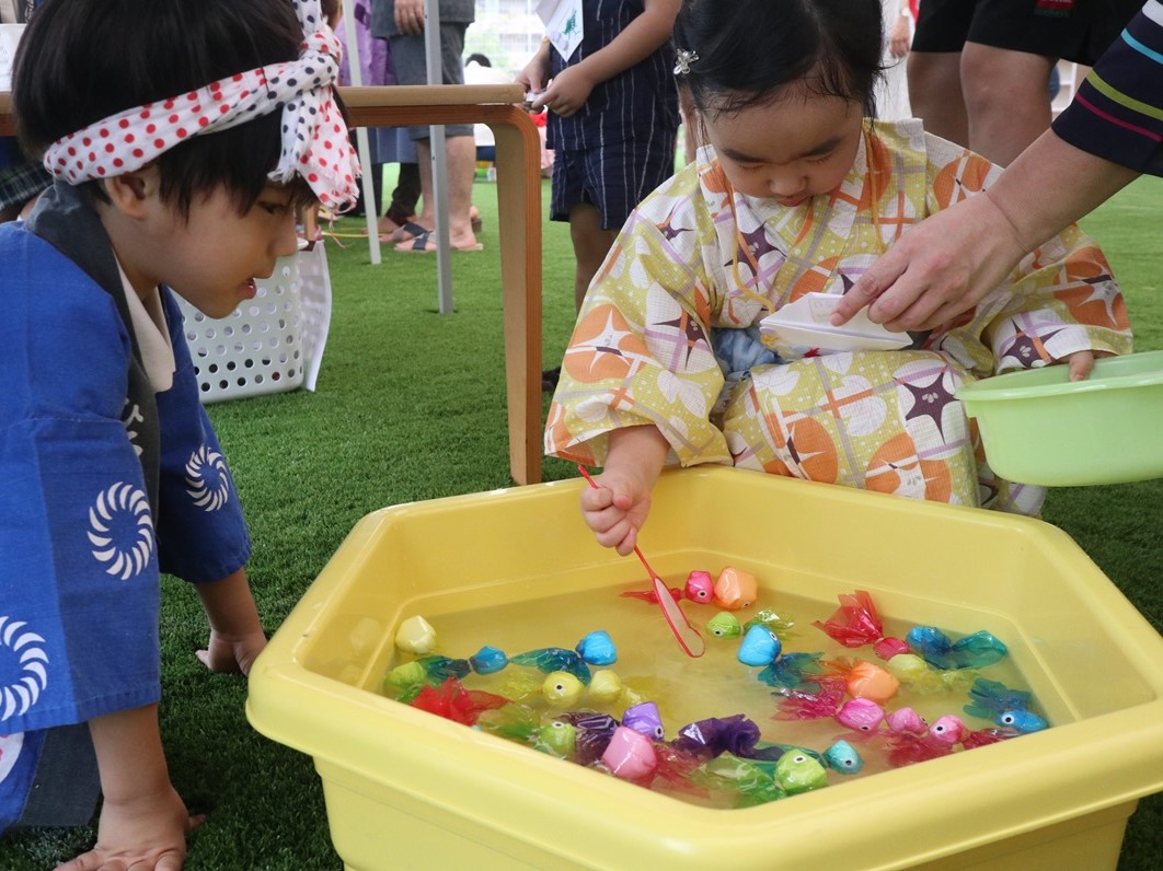 「ヨーヨーつれたよ!」、「わたあめ行きたいなー。」とわくわくした様子でたくさんのお店をまわる姿がありました。