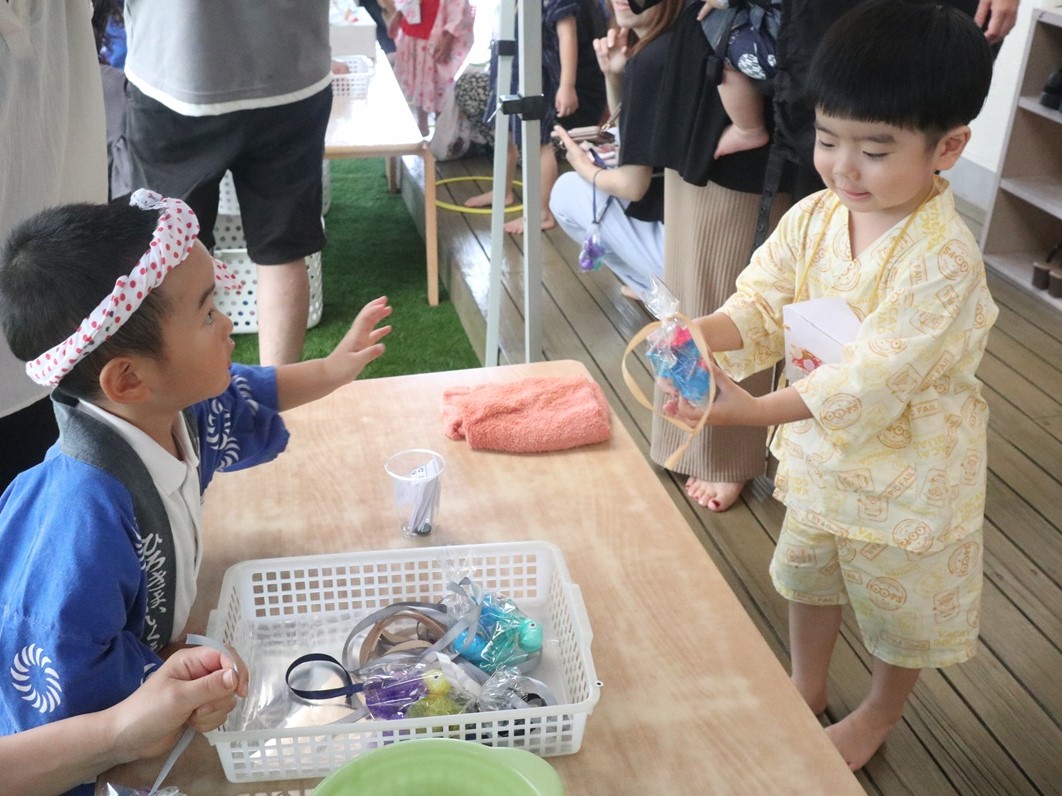 休憩をはさむと、お店屋さんとお客さん役を交代して夏祭りを再開しました。