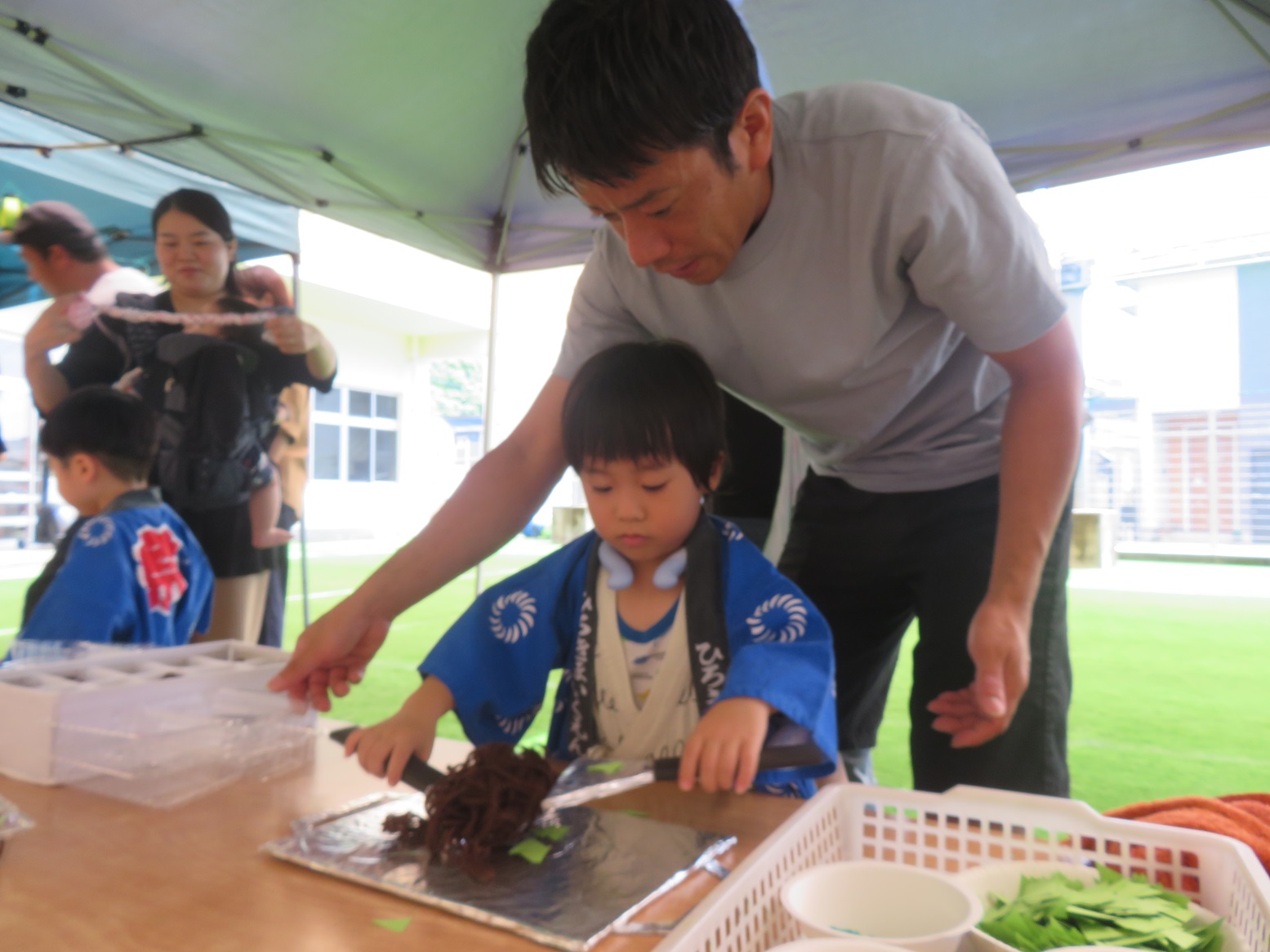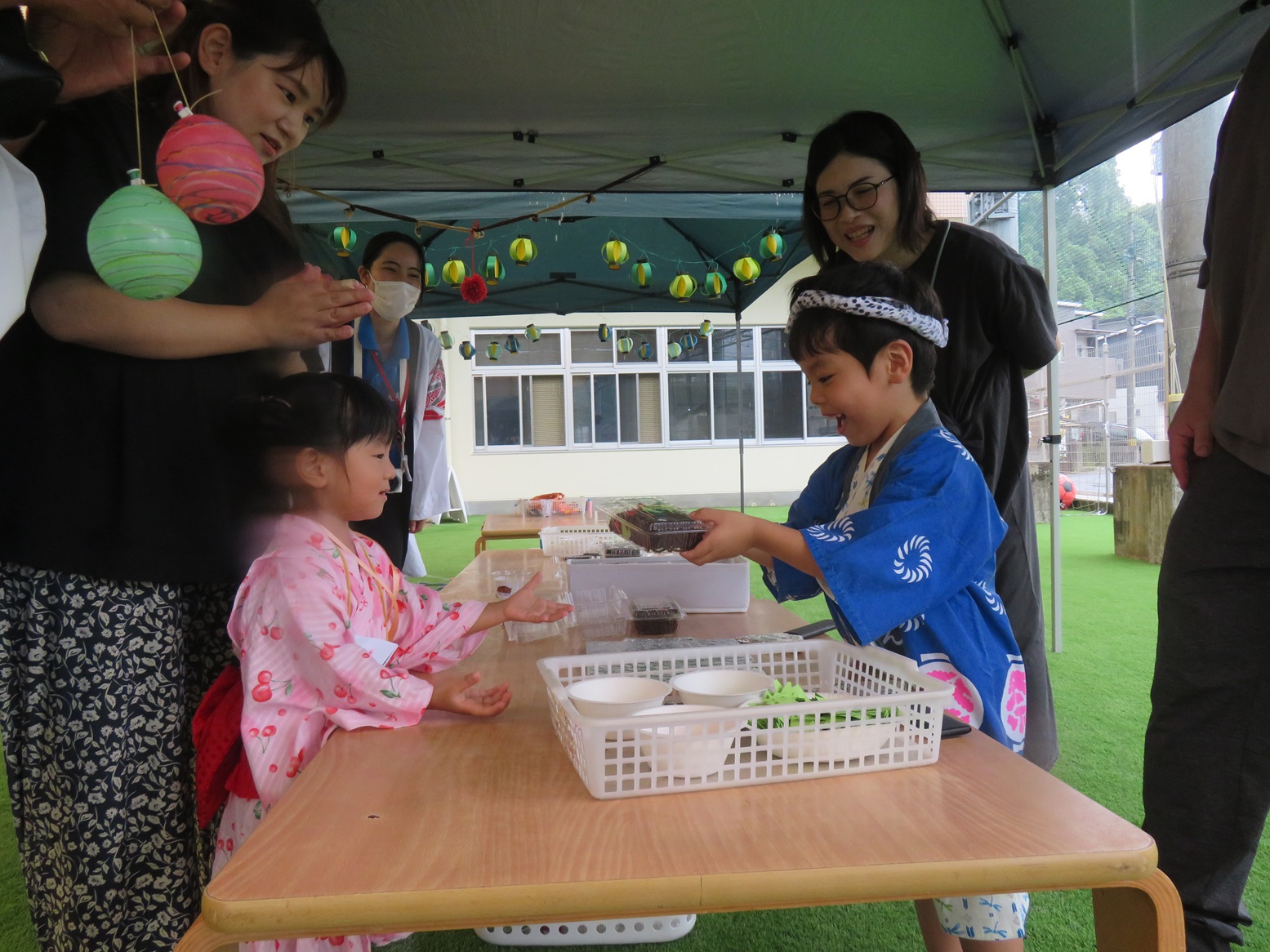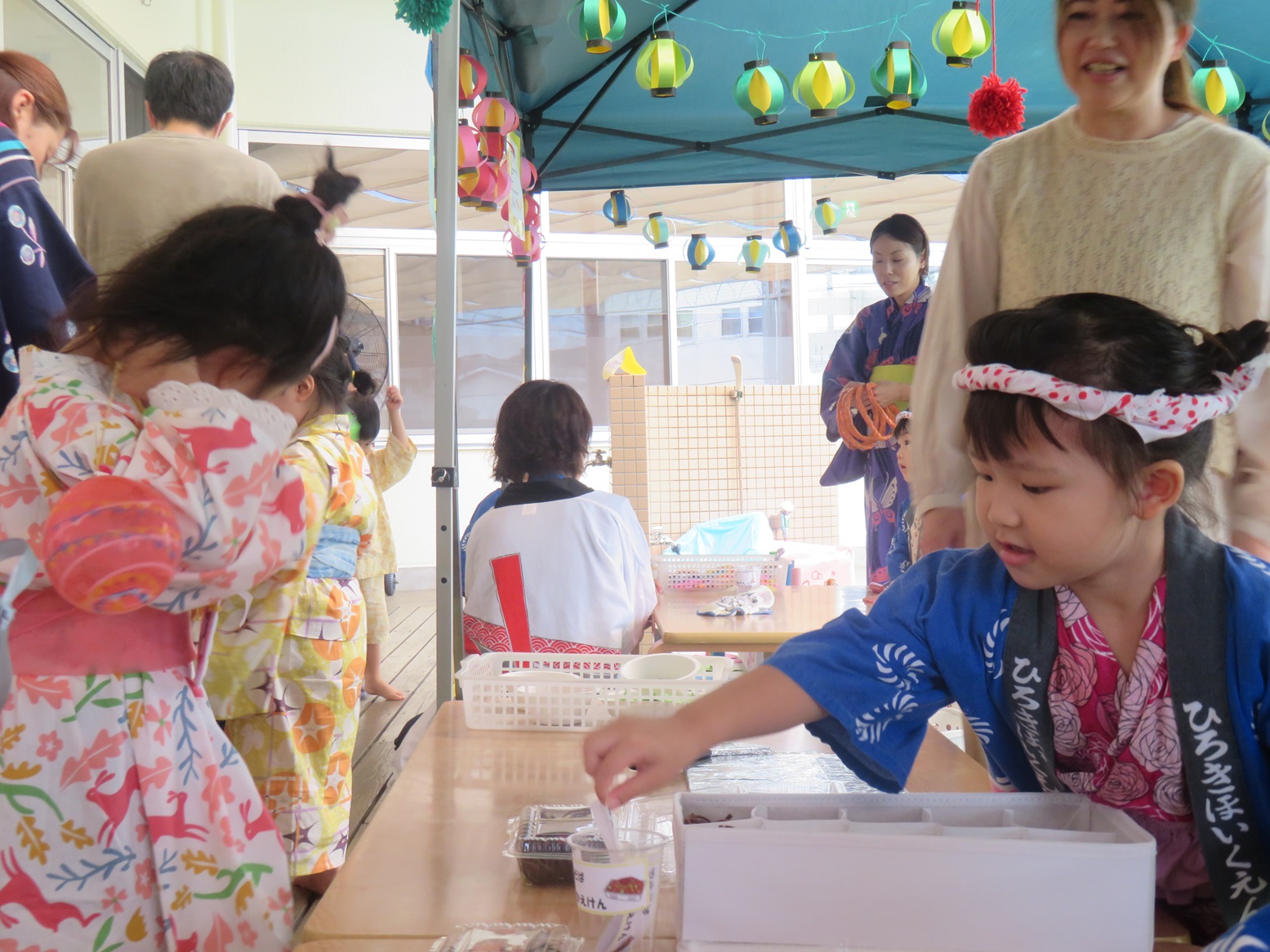 お父さんお母さんと一緒に夏祭りができ、「楽しかったー。」と満足気な様子の子どもたち。夏の思い出ができました。