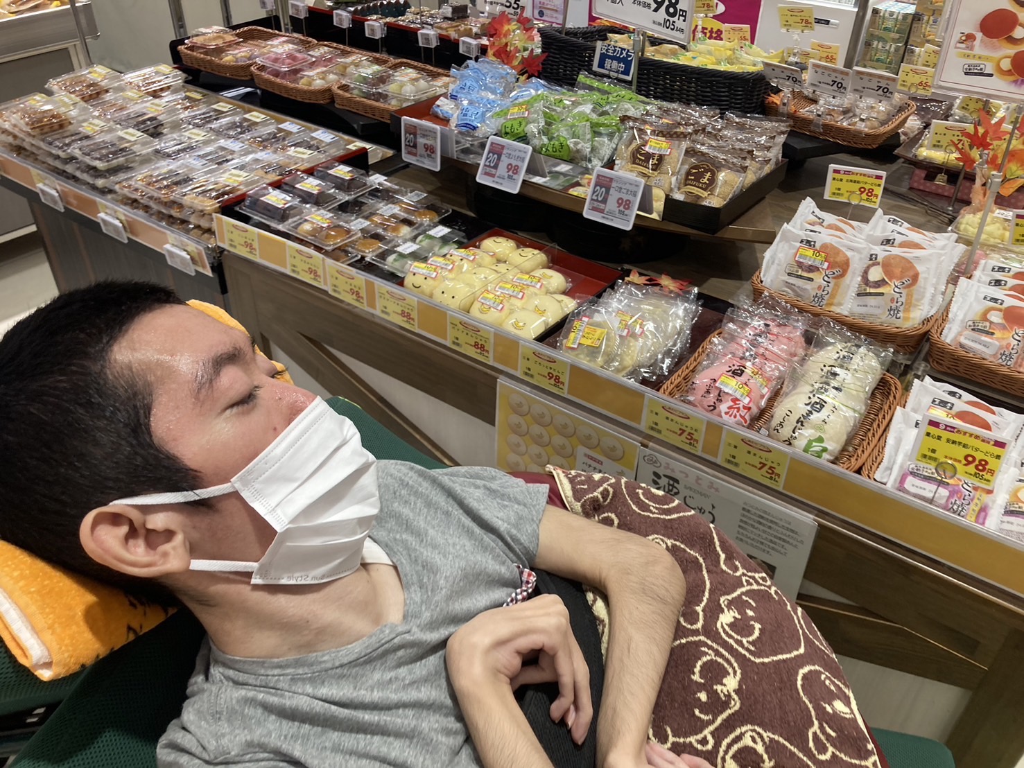 イオン到着後、食品コーナーでジュースとお菓子を買いました。