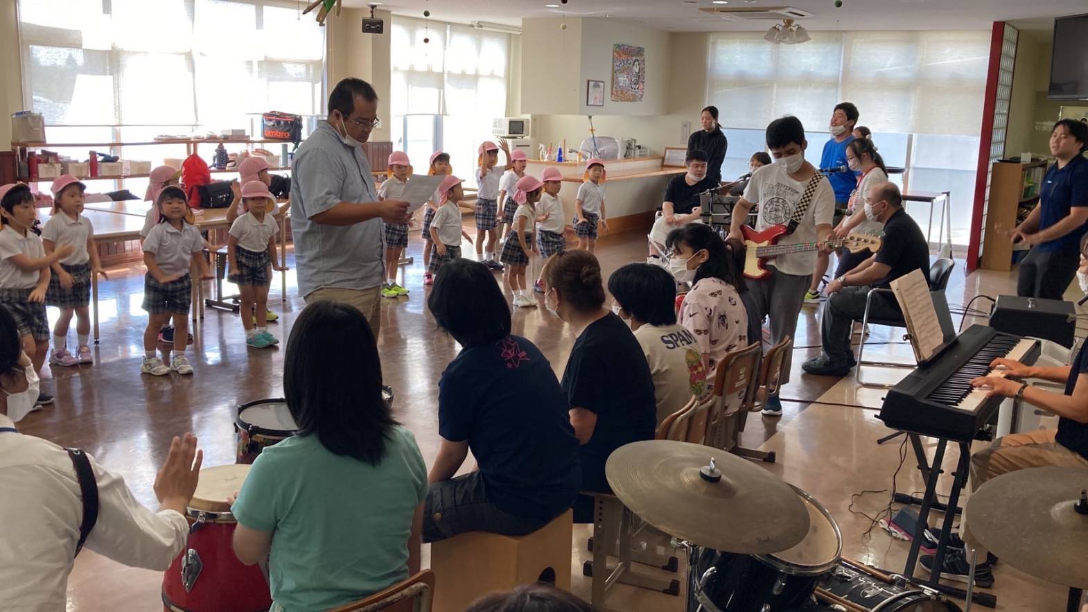 ひろき保育園の皆さんと交流を行いました。 今回は園児や先生方にきららへ来ていただき、 今月20日開催予定の「ウェルマル」に向けたステージ練習を行いました。 きららバンドと保育園のコラボは、 是非、当日をお楽しみにされてください!