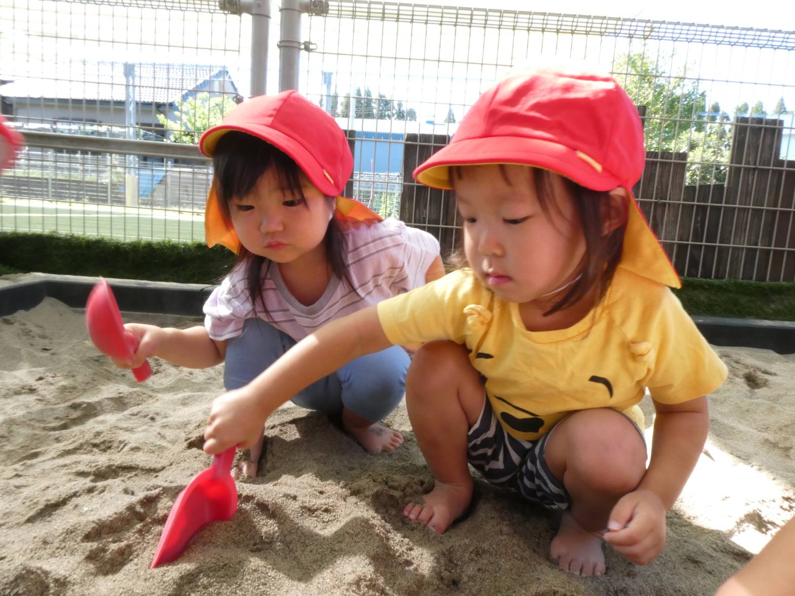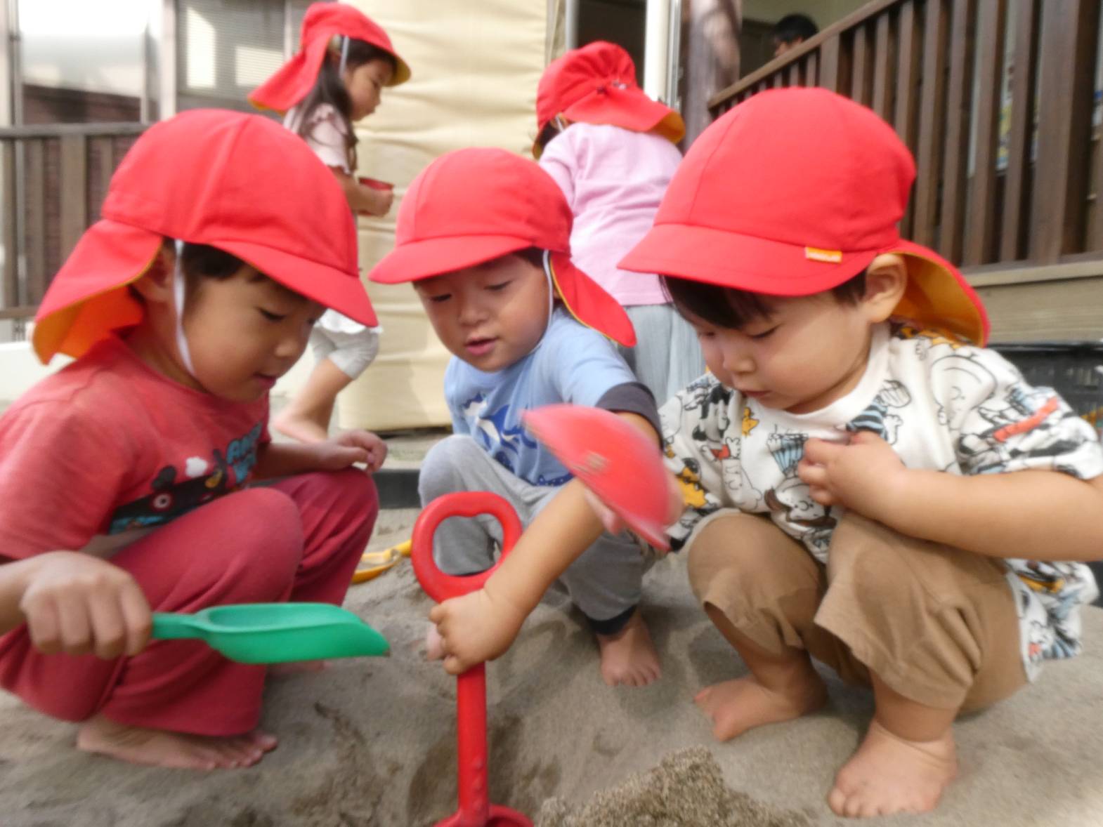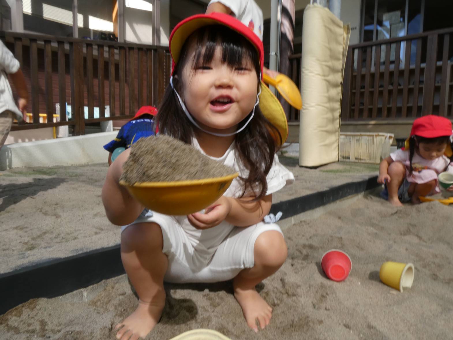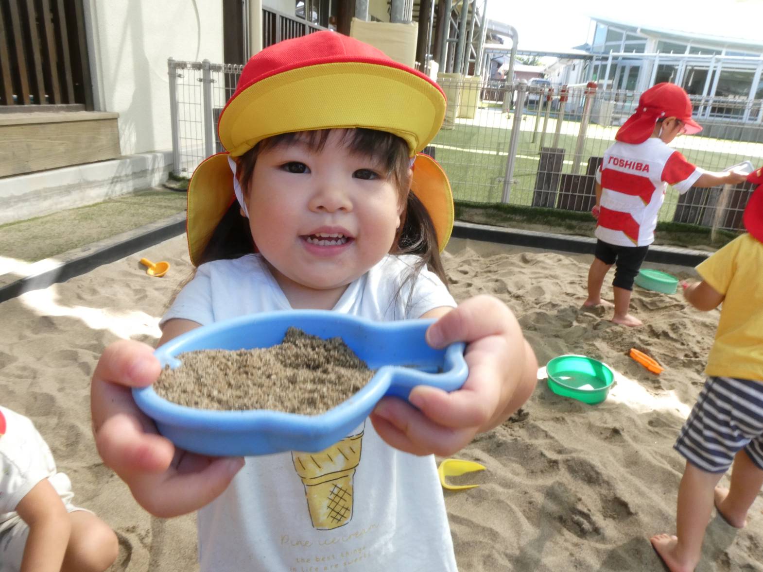 少しずつ涼しくなり、過ごしやすい季節になりました。 砂場遊びが大好きで、「砂場行くよ!」と言うと「やった!」と大喜びです。 友だちに「一緒に山作ろう!」と誘う様子のぱんだ組さん。 スコップで砂をすくうことも上手になってきました。 また、完成したものを嬉しそうに保育者に持ってくる子どもたち。 子どもたちの体調に気を付けながら、今後も楽しい活動を取り入れていきたいと思います!
