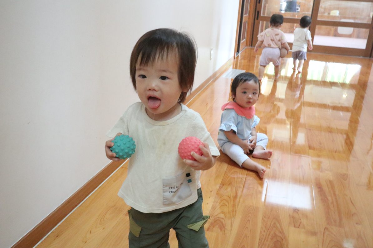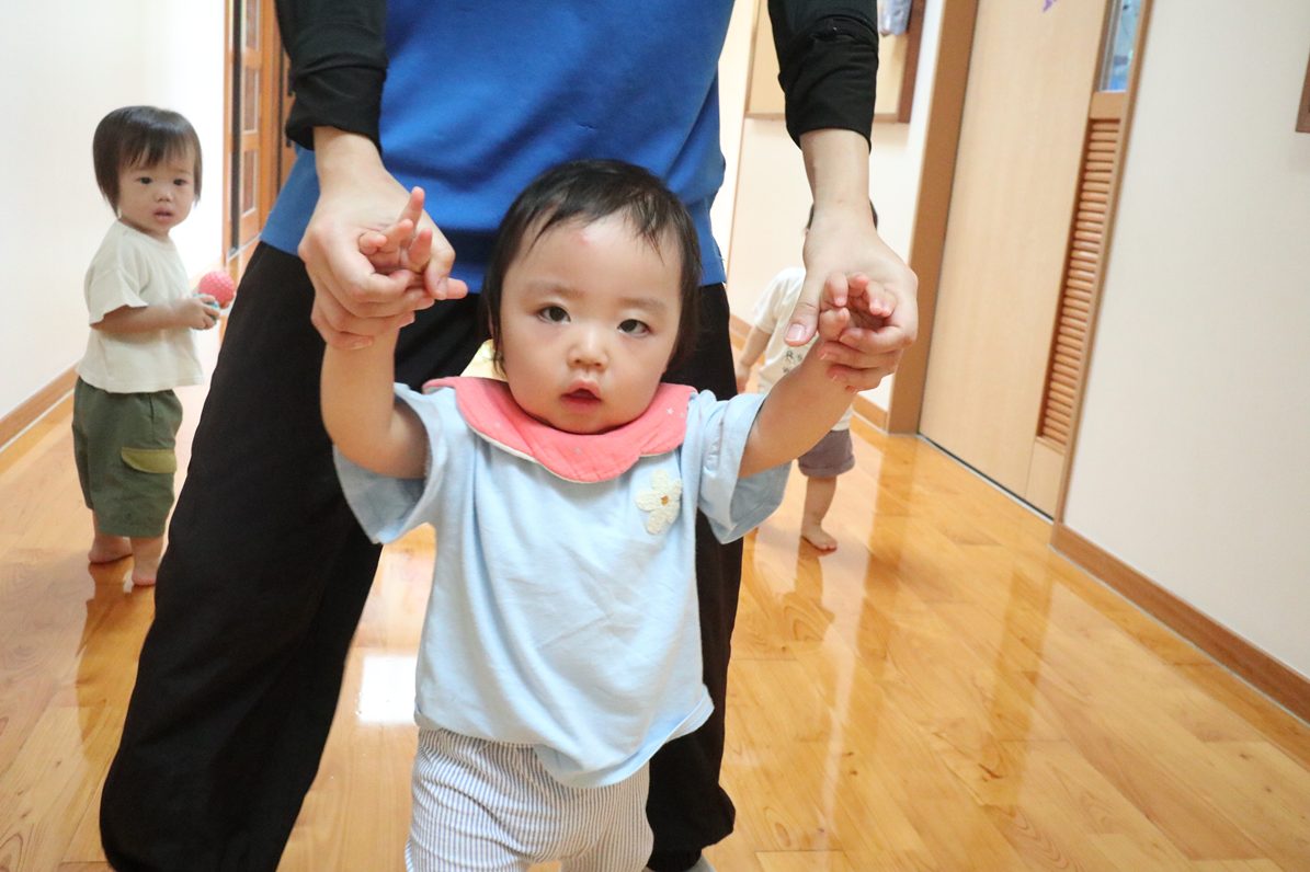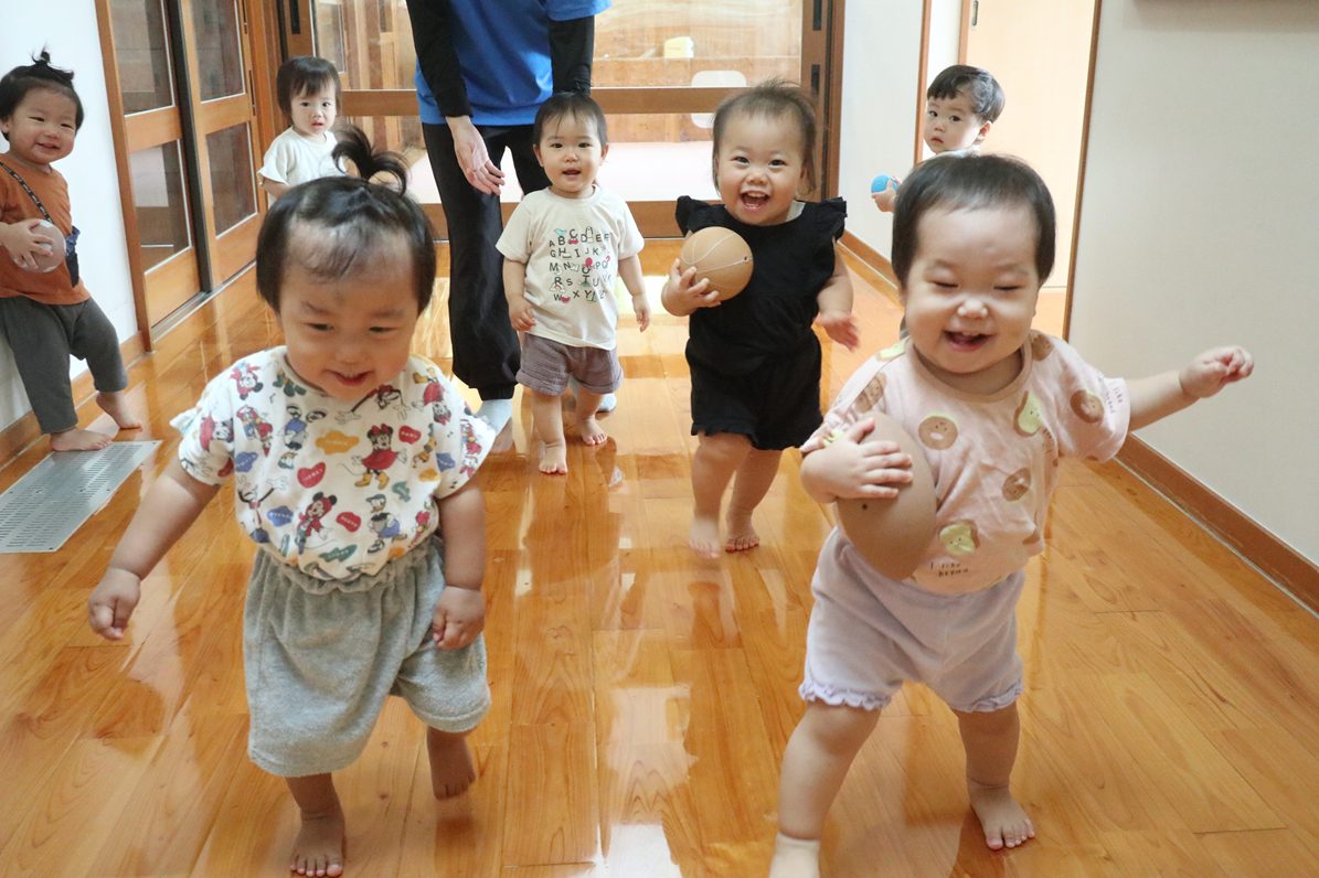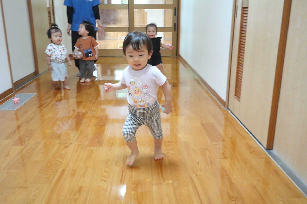 体を動かすことが大好きなひよこ組さん。 お昼寝が終わり、おやつを食べると保育室を出て広い部屋で沢山身体を動かしています! 歩いたり、ハイハイをしたりしてたくさん体を動かす子どもたち! 午後も元気いっぱいの様子です!
