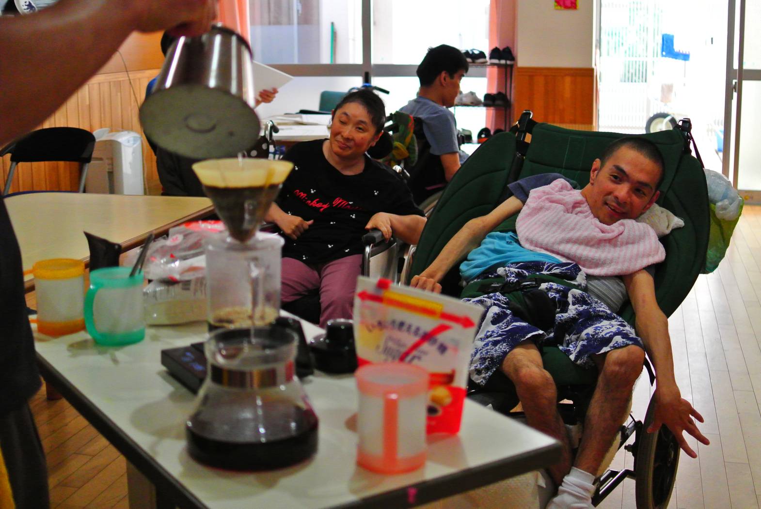 本日はカフェ活動☕ ドリップしているところを興味津々に眺め コーヒーが出来上がるまでも、室内はいい香りが立ち込めていました。 皆さん美味しそうに飲まれていました☆ 今月まではアイスで提供したのですが、来月あたりからは温かい飲み物が 欲しくなりそうですね☆