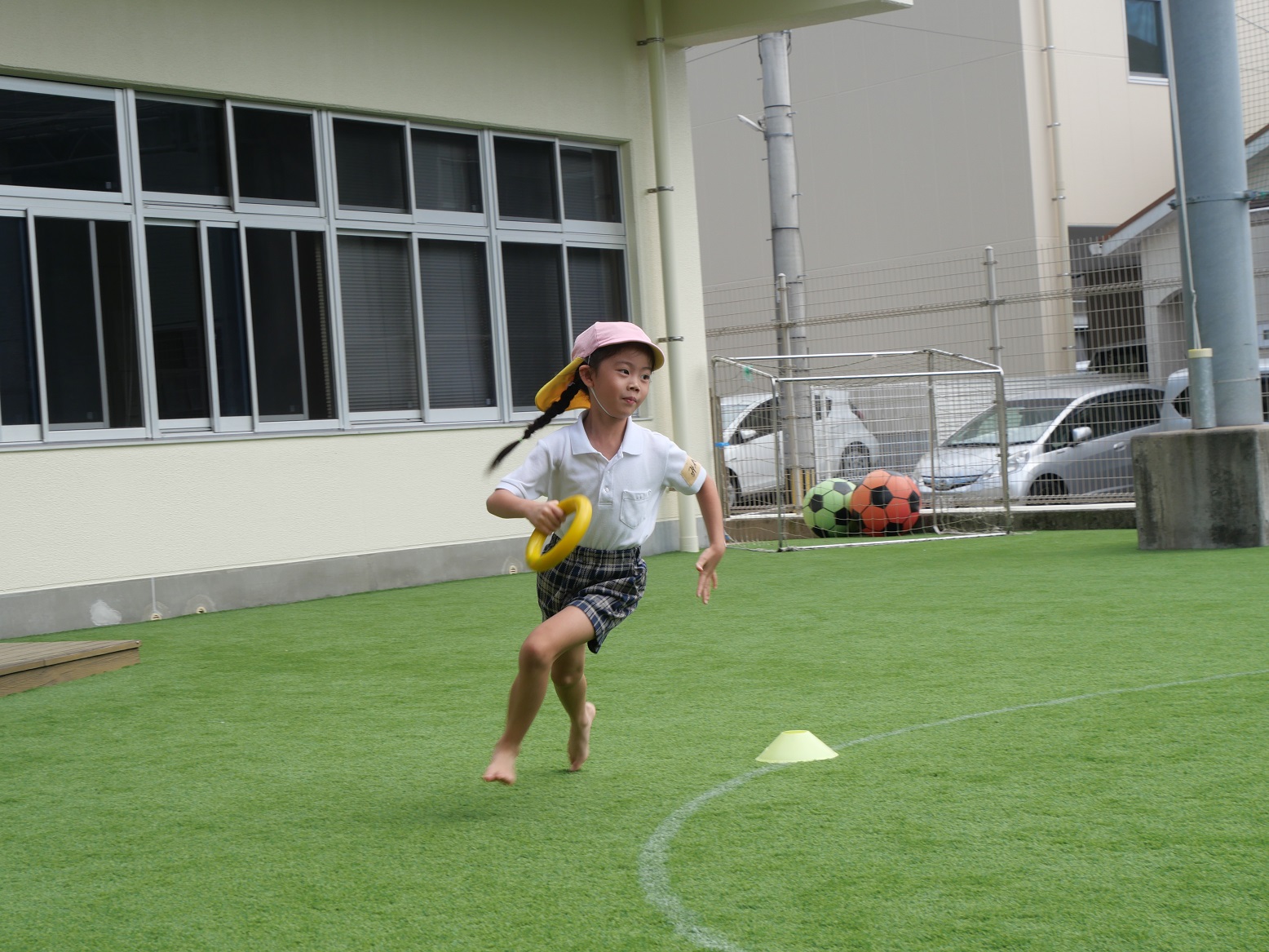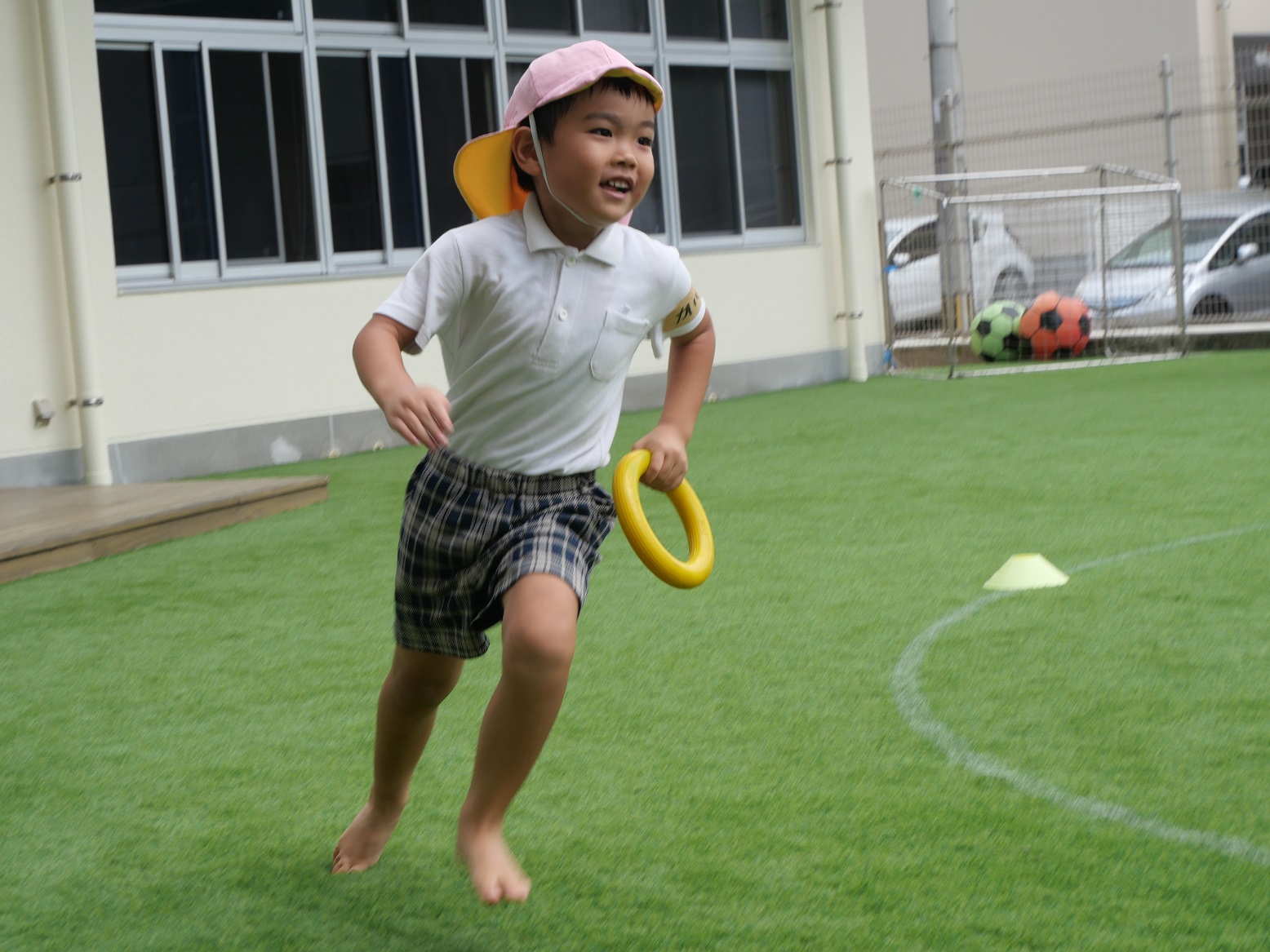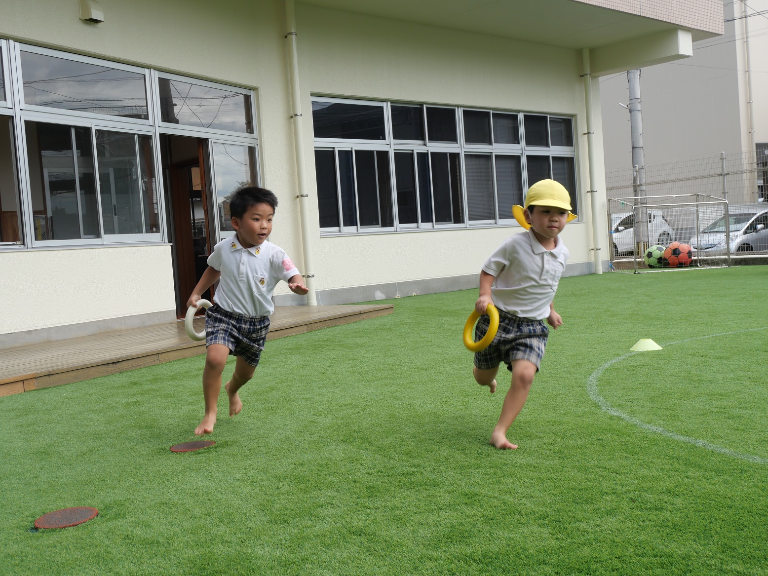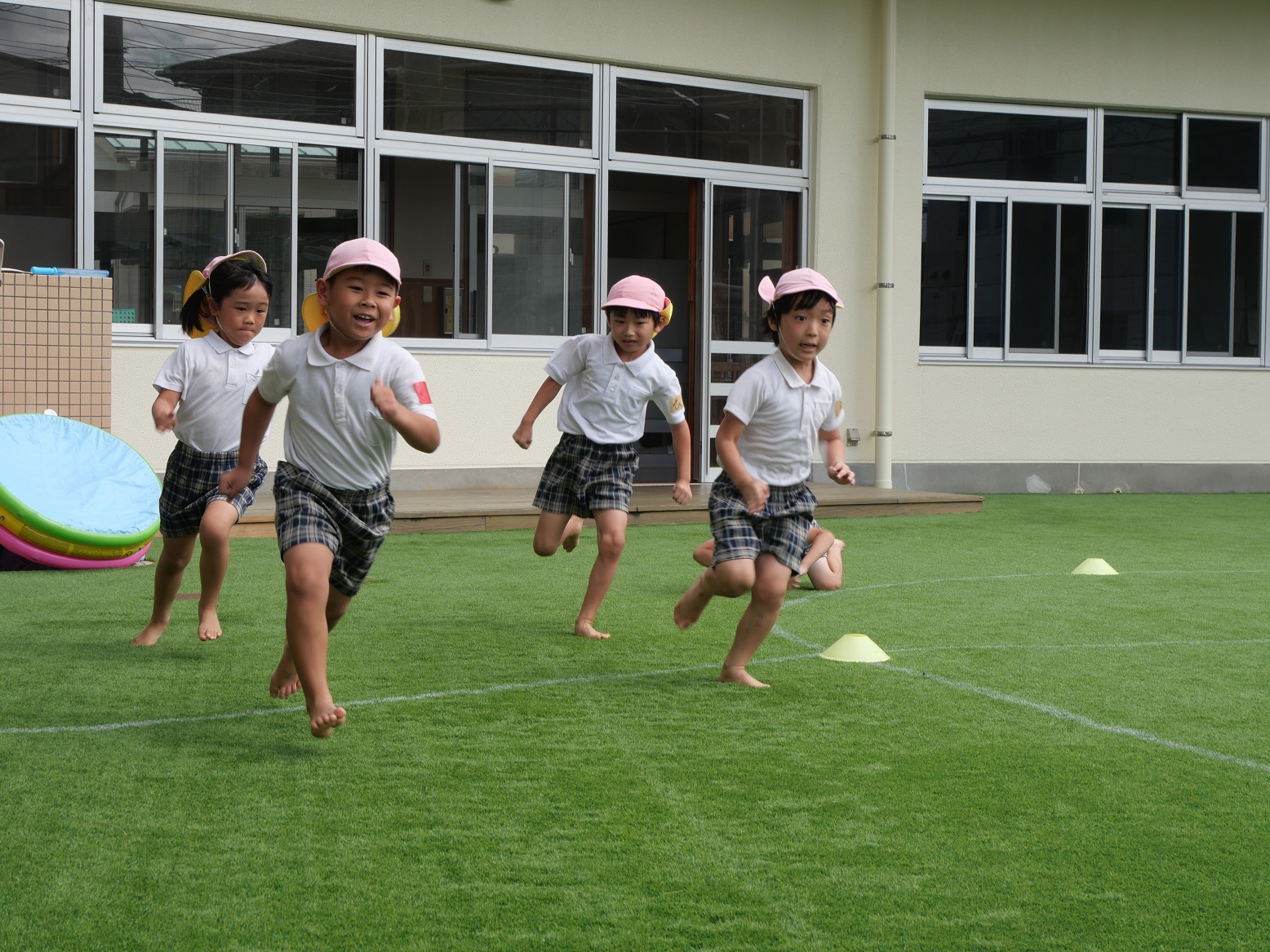 最初の競技『かけっこ』では、「○○ちゃん、頑張れー。」「よーし、負けないぞ!」と気合いを入れて走ったり、応援したりする姿が見られます。