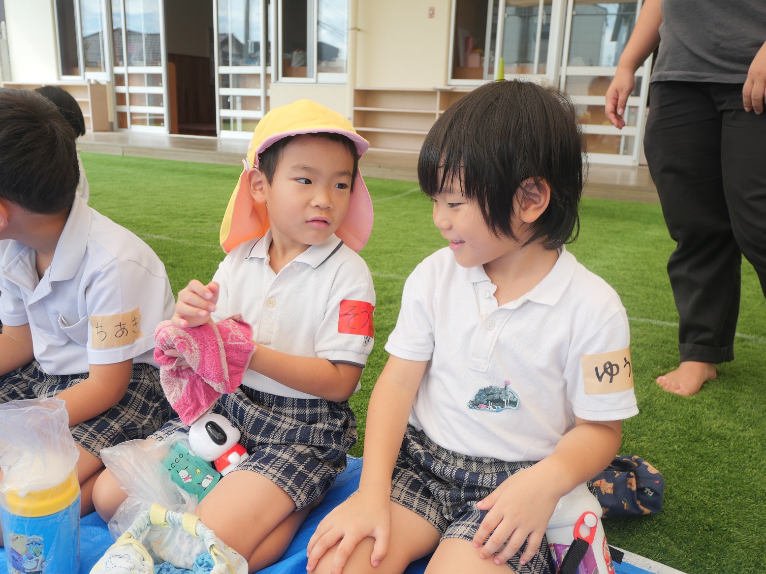 「私は○○です。」「お名前、何ですか?」と、初めは緊張した様子で自己紹介をしていました。