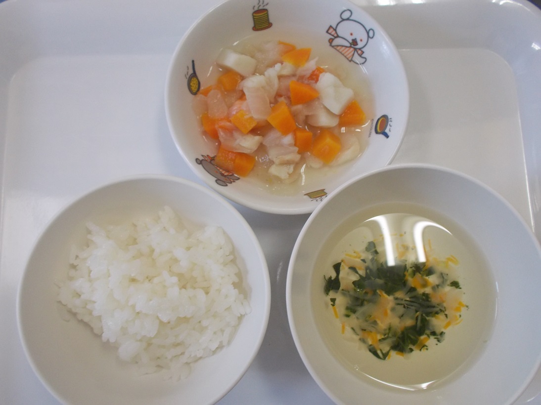 10月15日(火)から10月19日(土)までの給食献立写真・離乳食提供量と写真の一例です。
