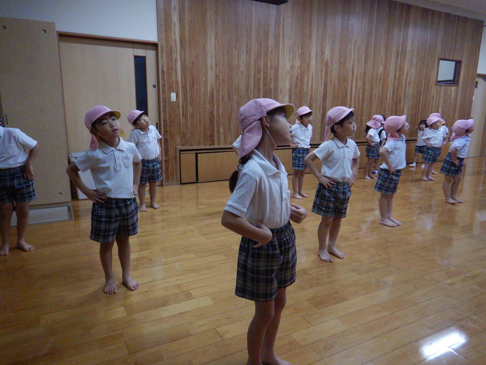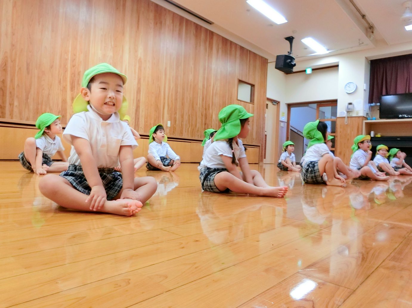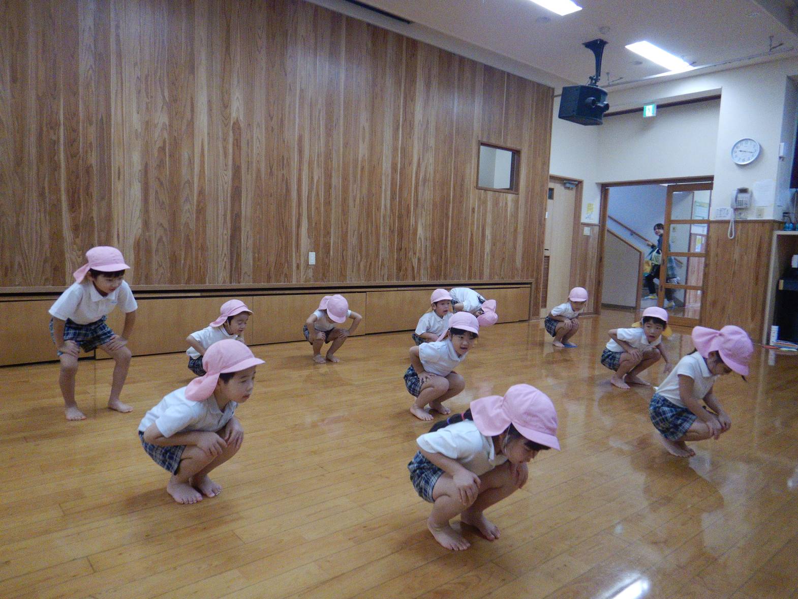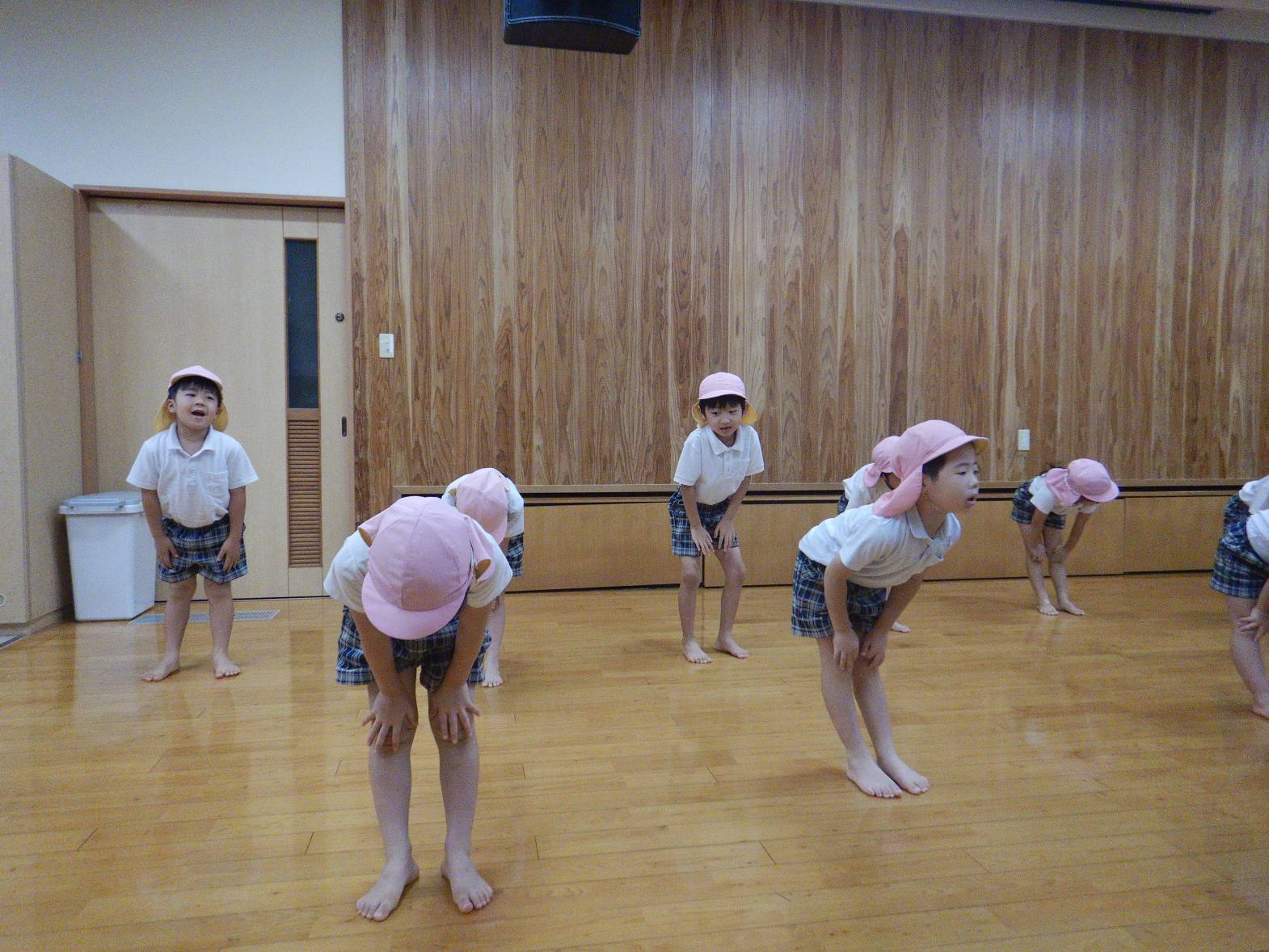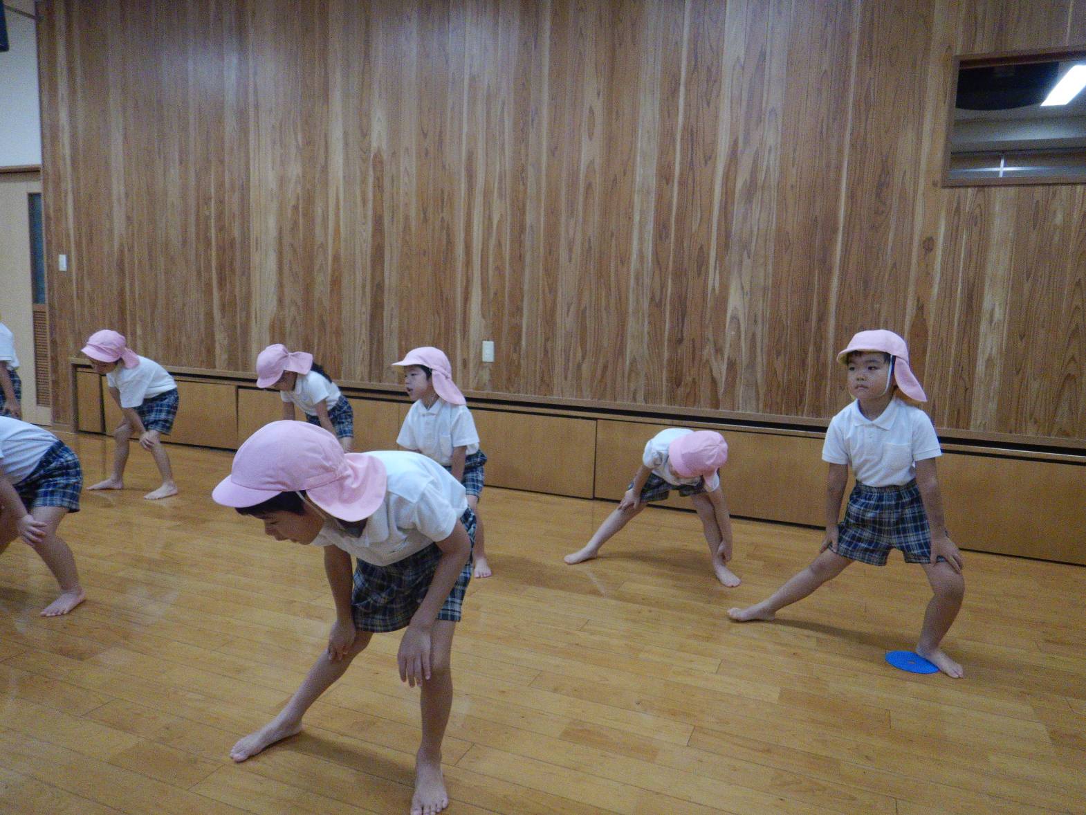 りす組では、はじめ準備運動、柔軟からスタートです。