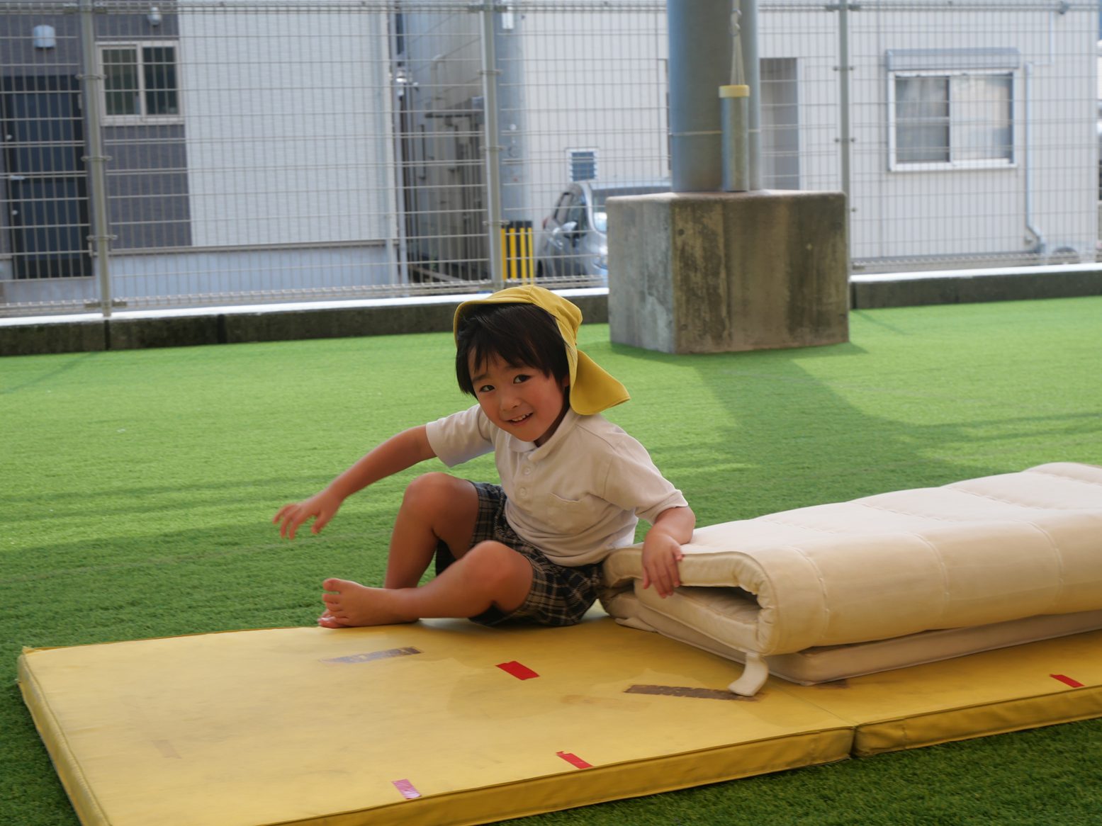 うさぎ組では、鉄棒とマットをしました。