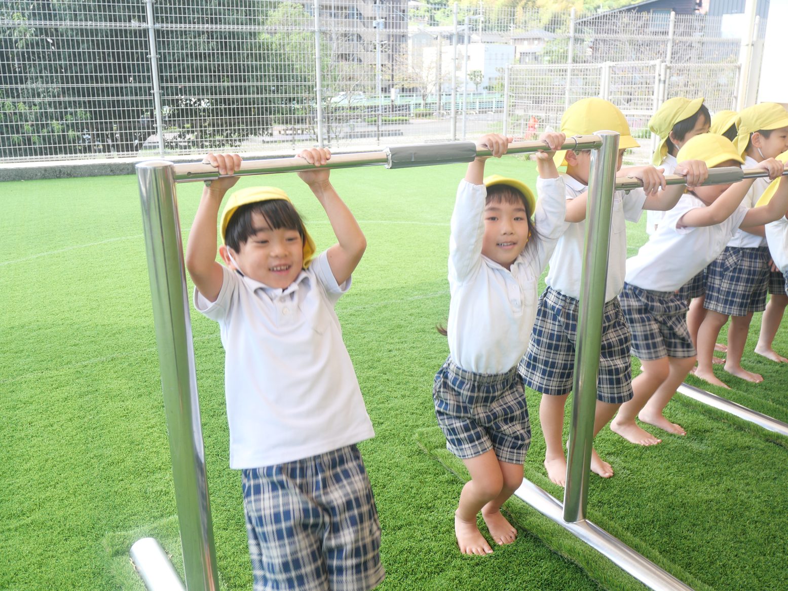 たくさん体を動かしたら、さっそく鉄棒に挑戦!