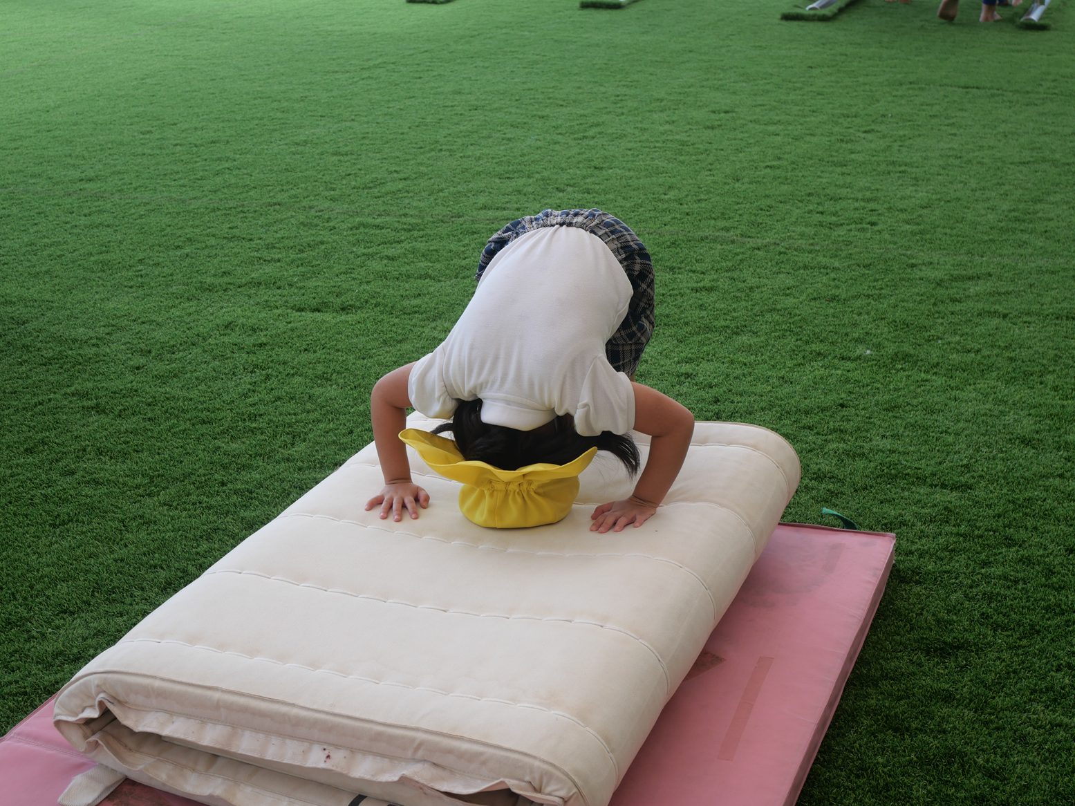 準備運動の後はマットで前転に挑戦です。