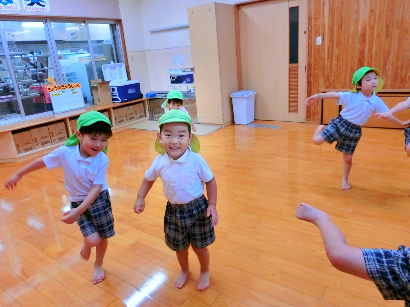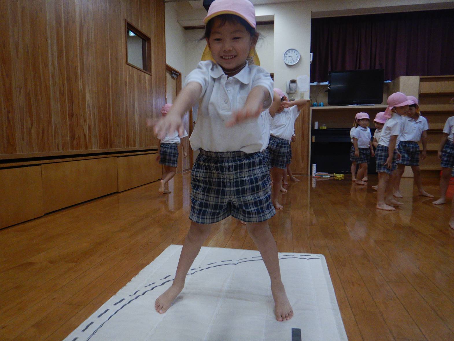 「跳べたよ!」「もっと跳びたい!」と次の運動遊びが待ちきれないきりん組さんでした。
