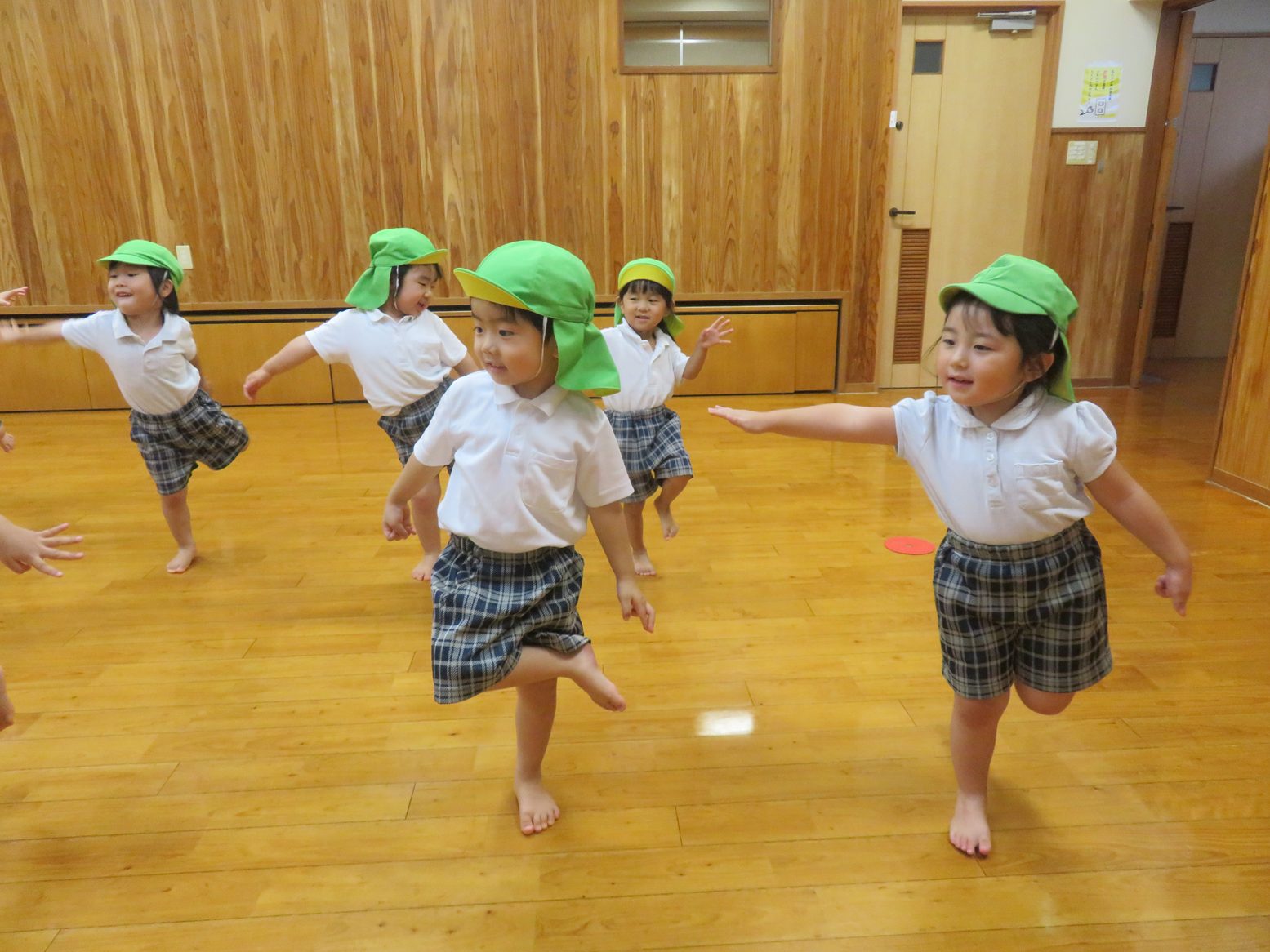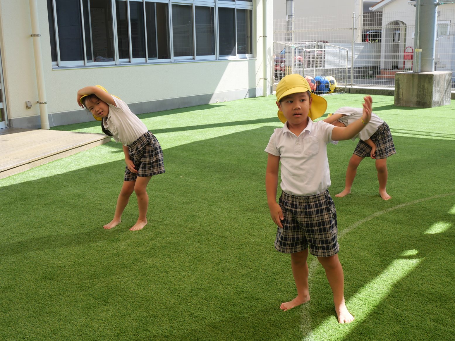 片足をあげてのバランスや柔軟も、繰り返す中で上手になってきた子どもたち。