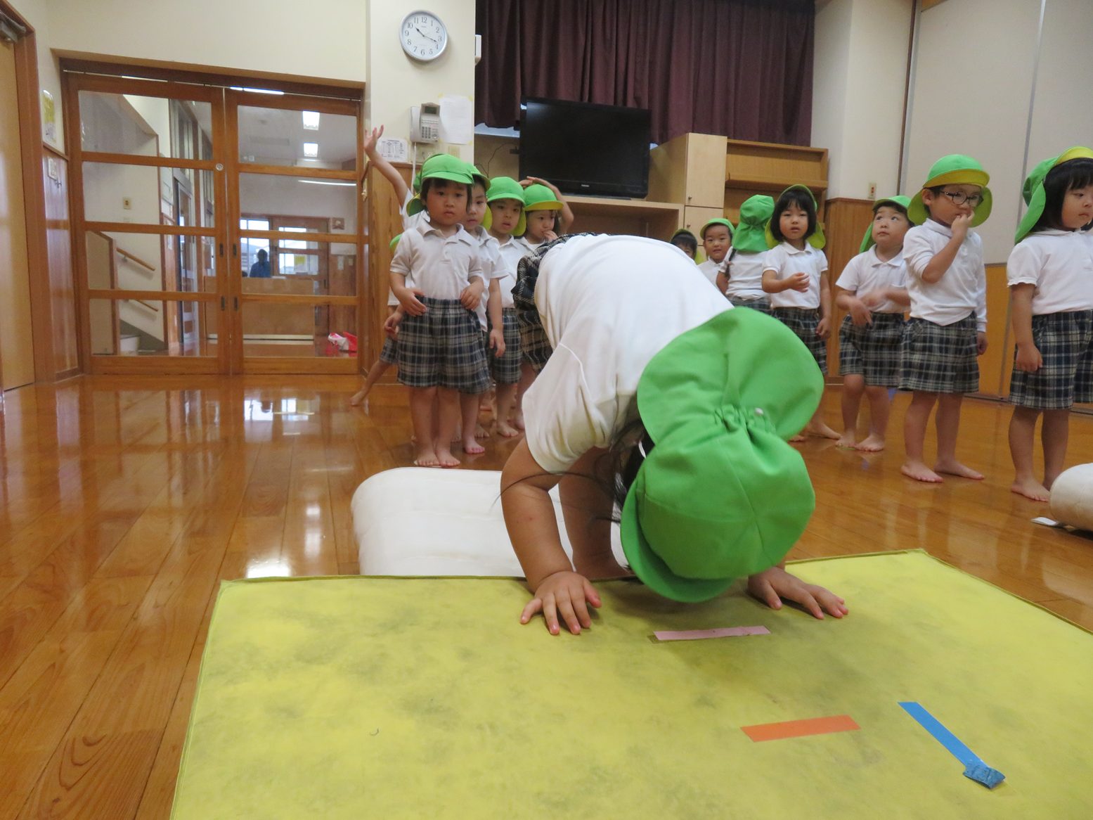 「自分でできるよ。」「上手にできるようになった!」と、自分たちで前回りをしていきます。