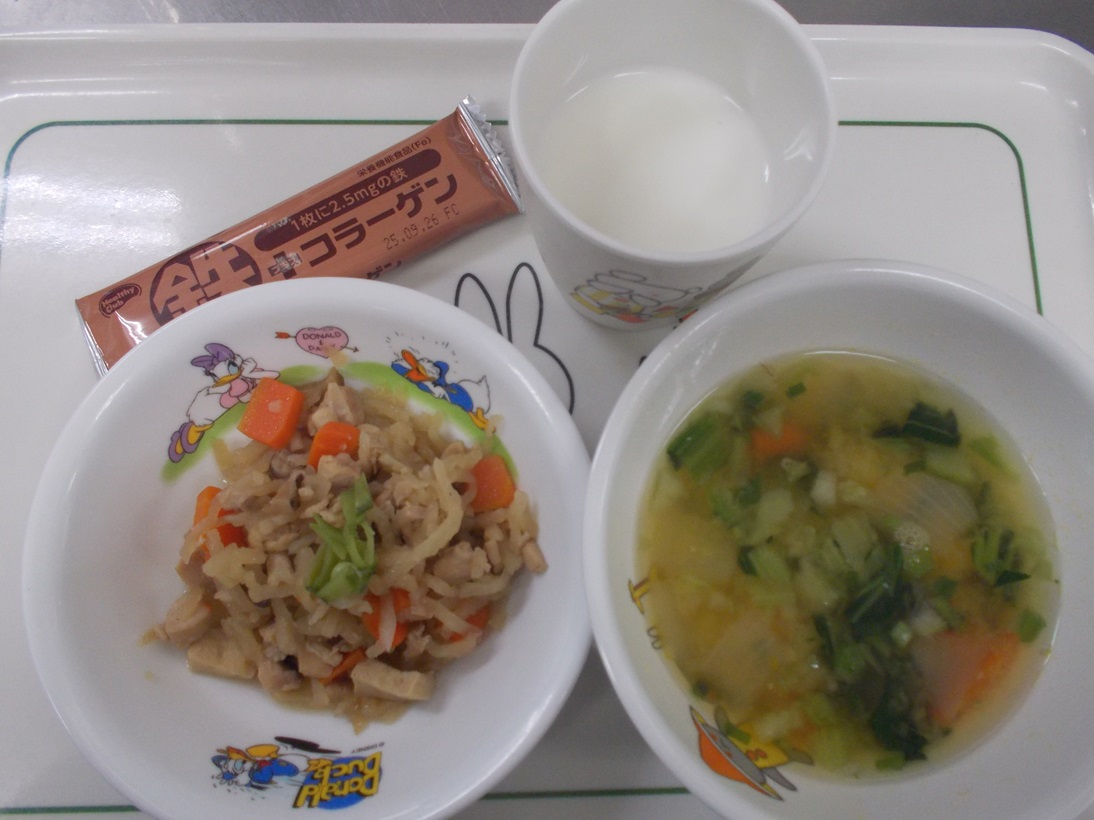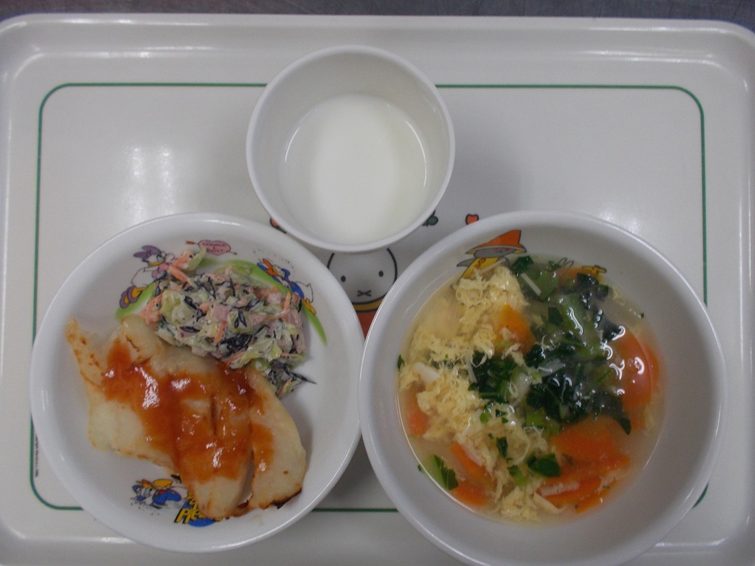 11月11日(月)から11月16日(土)までの給食献立写真・離乳食提供量と写真の一例です。
