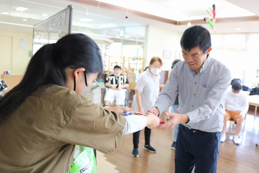 本日は10月31日、きららも『ハロウィンパーティー』でした。 くじ引きでグループに分かれて、ボールを使ったゲームや写真撮影を行いました。 ゲームの後は皆さんにお菓子のプレゼントがありました。 今回撮影したグループ毎の集合写真は、 後日ラミネートしてプレゼントします。おたのしみに!
