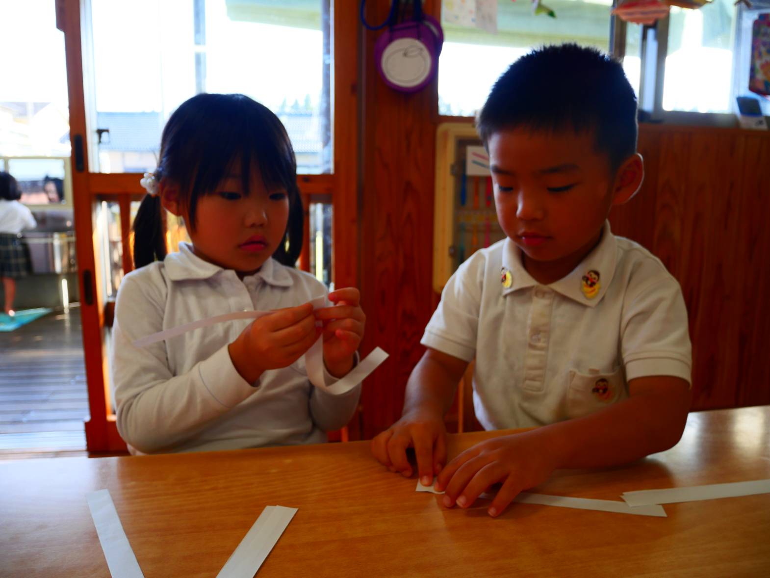 「僕は高ーくジャンプできるように長いバネの足を作ろうかな。」、「私はにっこり笑顔の可愛い顔にしよう!」と、それぞれが思い思いのバックを作ることができました。
