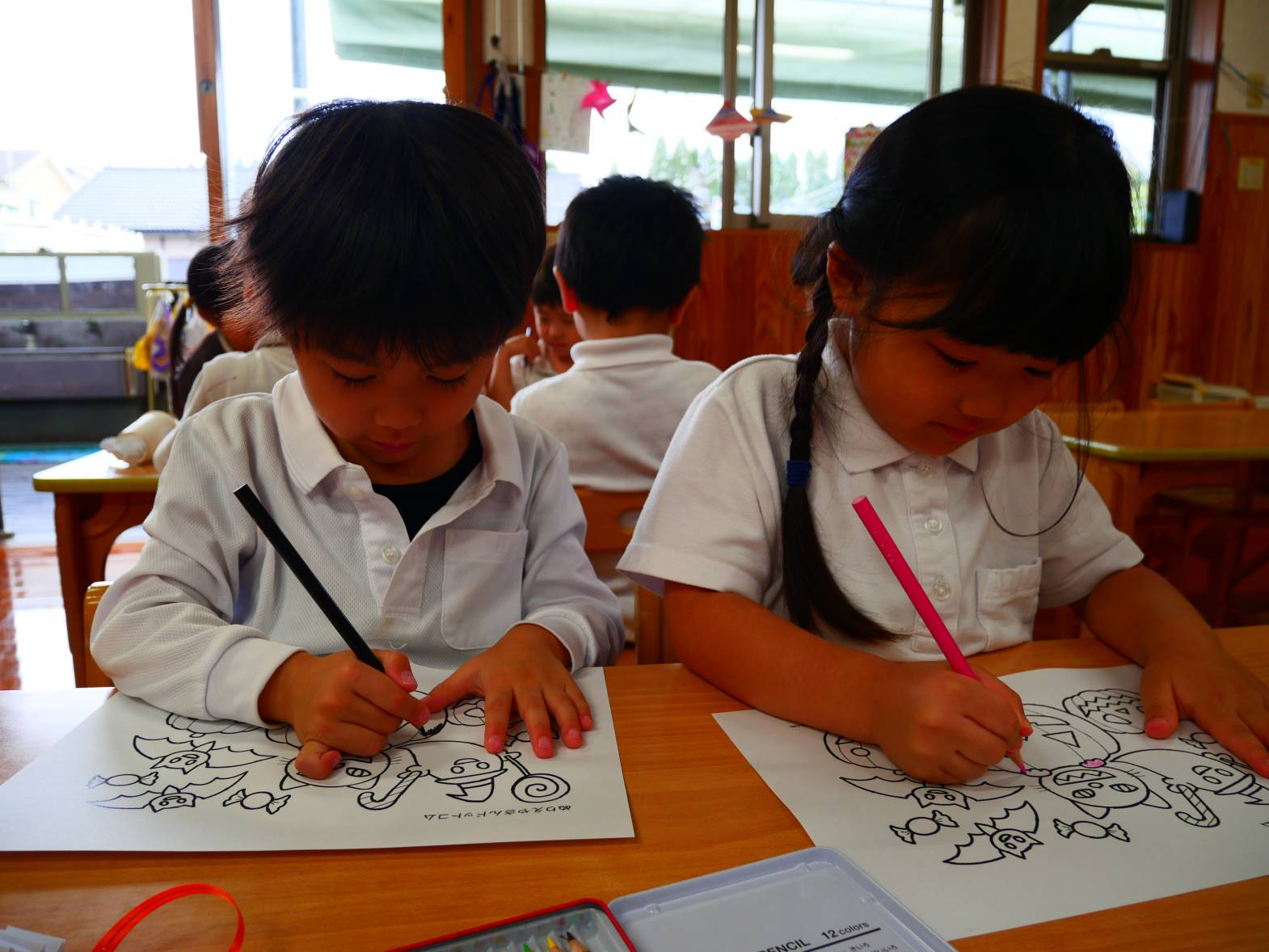 今日はハロウィンの日!以前から子どもたち同士で、「ハロウィンってお菓子がもらえるんだよ。」、「みんなで魔女になったり、かぼちゃに変身したりするんだよね。」と、話をする姿が見られました。