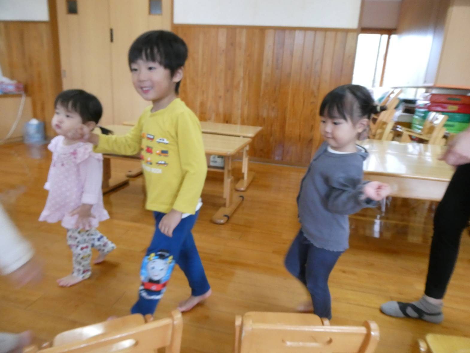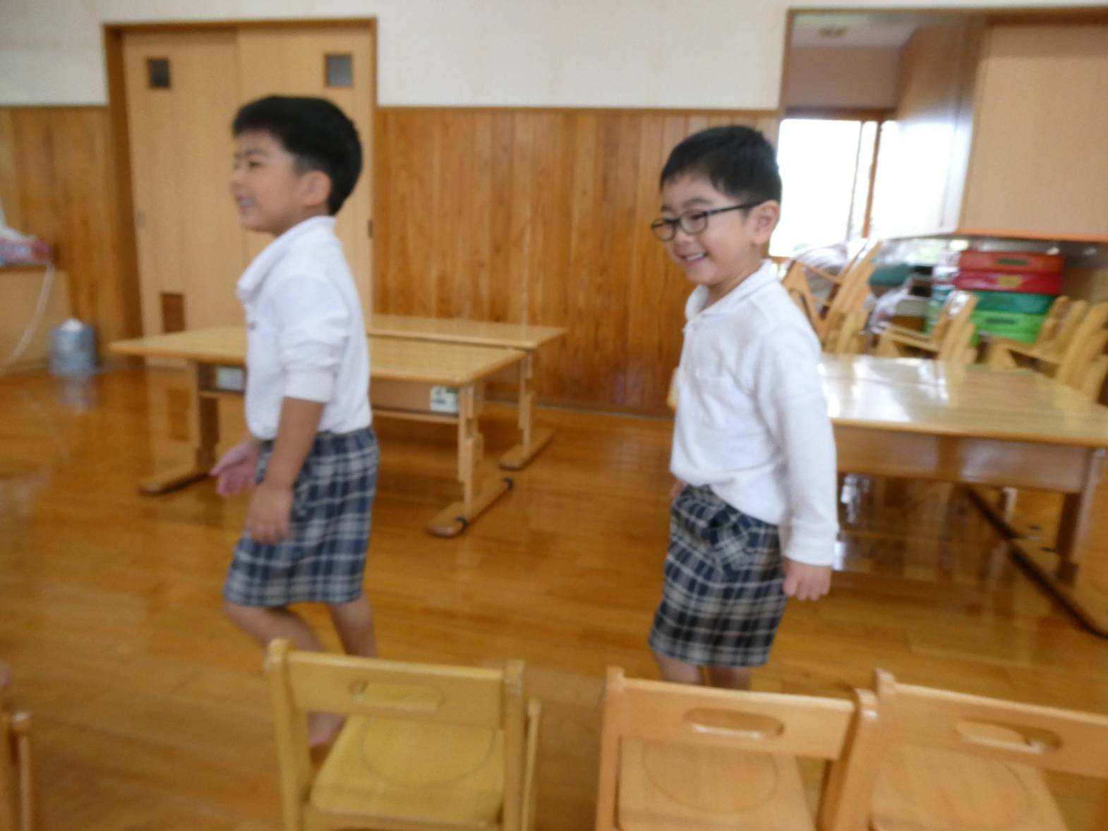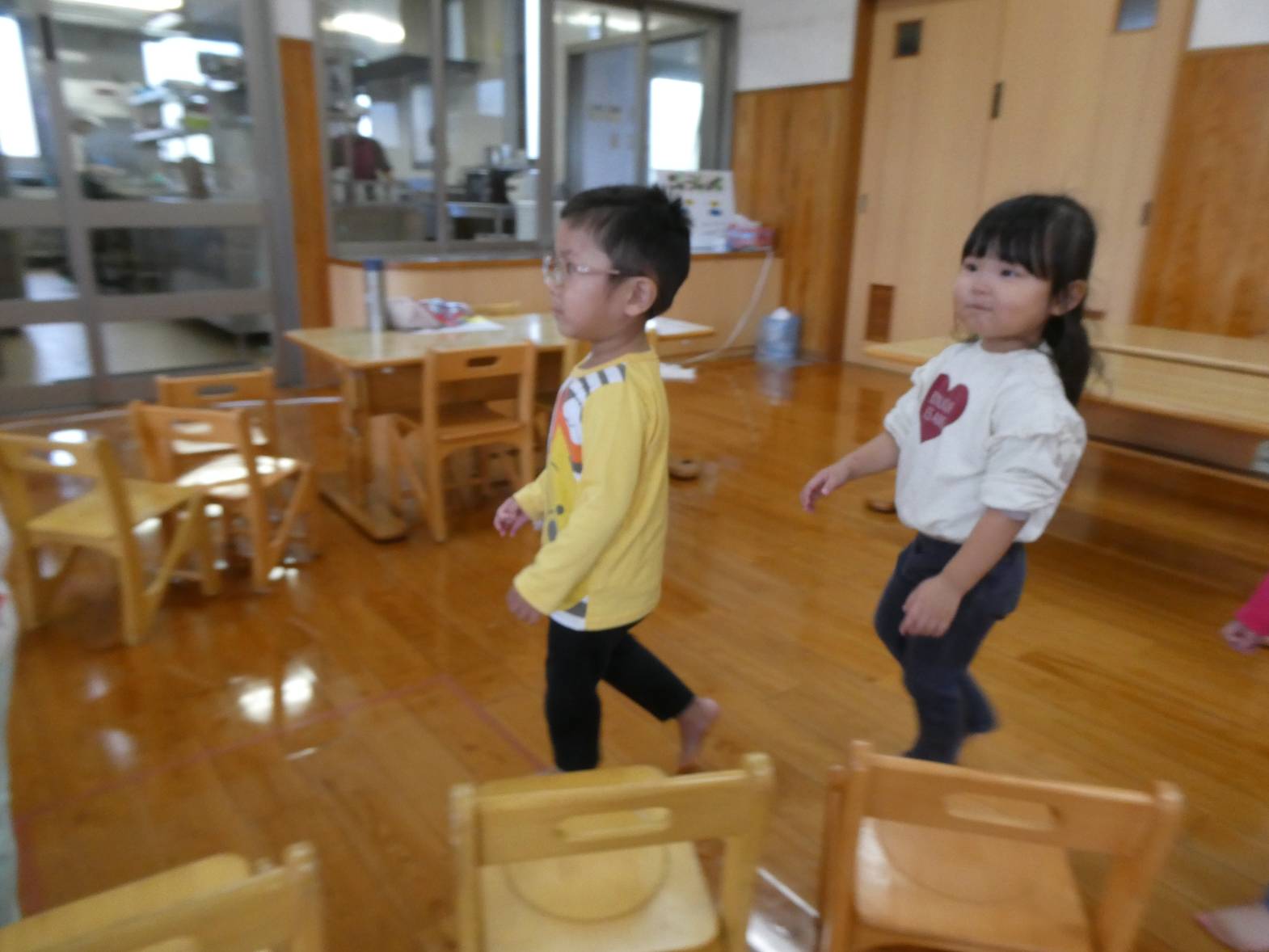 今日は12月7日(土)にあるクリスマス会の保護者席を決めるくじ引きを行いました。 音楽が流れると、わくわくしながら歩き出す子どもたち。 音楽が止まると、椅子に座ります。 座った椅子の下に置いてある番号札が席順になります。 椅子の下にある紙を開いて、「僕○番だったよ!」、「私は、○番だから○○ちゃんと近いね~!」と、嬉しそうに見せ合う子どもたちでした。 クリスマス会の座席は、決まり次第お伝えします!
