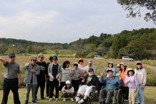 都市農業センターにて『コスモスデイキャンプ』を行いました。 散策しながらコスモスを鑑賞したり、 お弁当やスモアを皆さん一緒に召し上がったりして 過ごされていました。 気温も涼しく、陽射しも強すぎず、皆さんの笑顔をたくさん見ることが出来て 心地の良い時間を過ごすことが出来ました。 また、次回の外出活動もお楽しみに!
