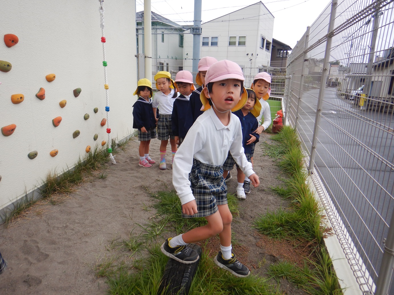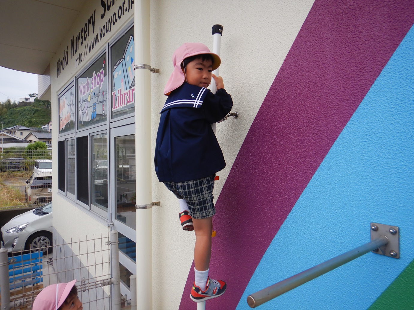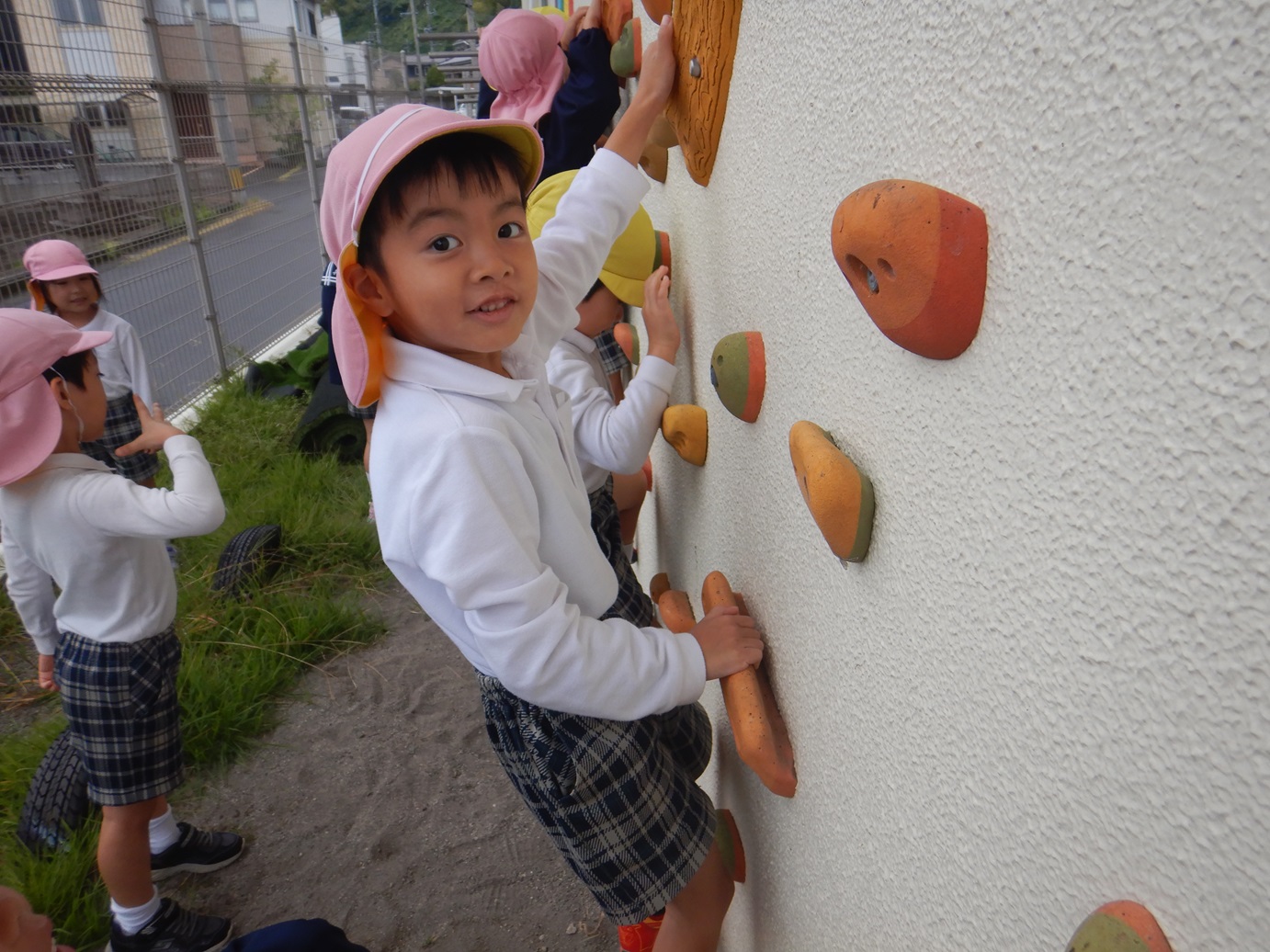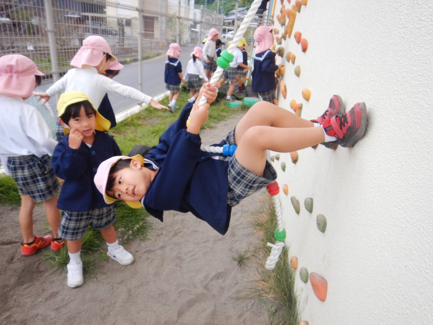 「楽しいね!」「ちょっと難しいよ!」と新しくなったロッククライミングを満喫したきりん組さんでした。