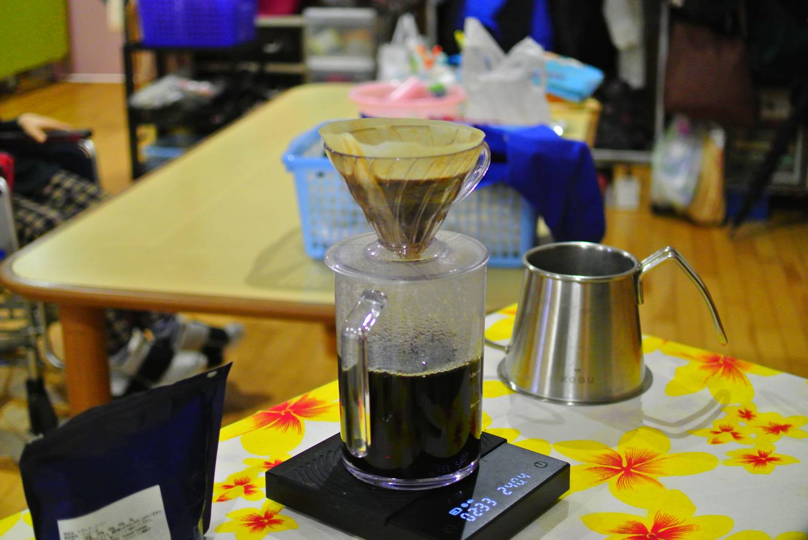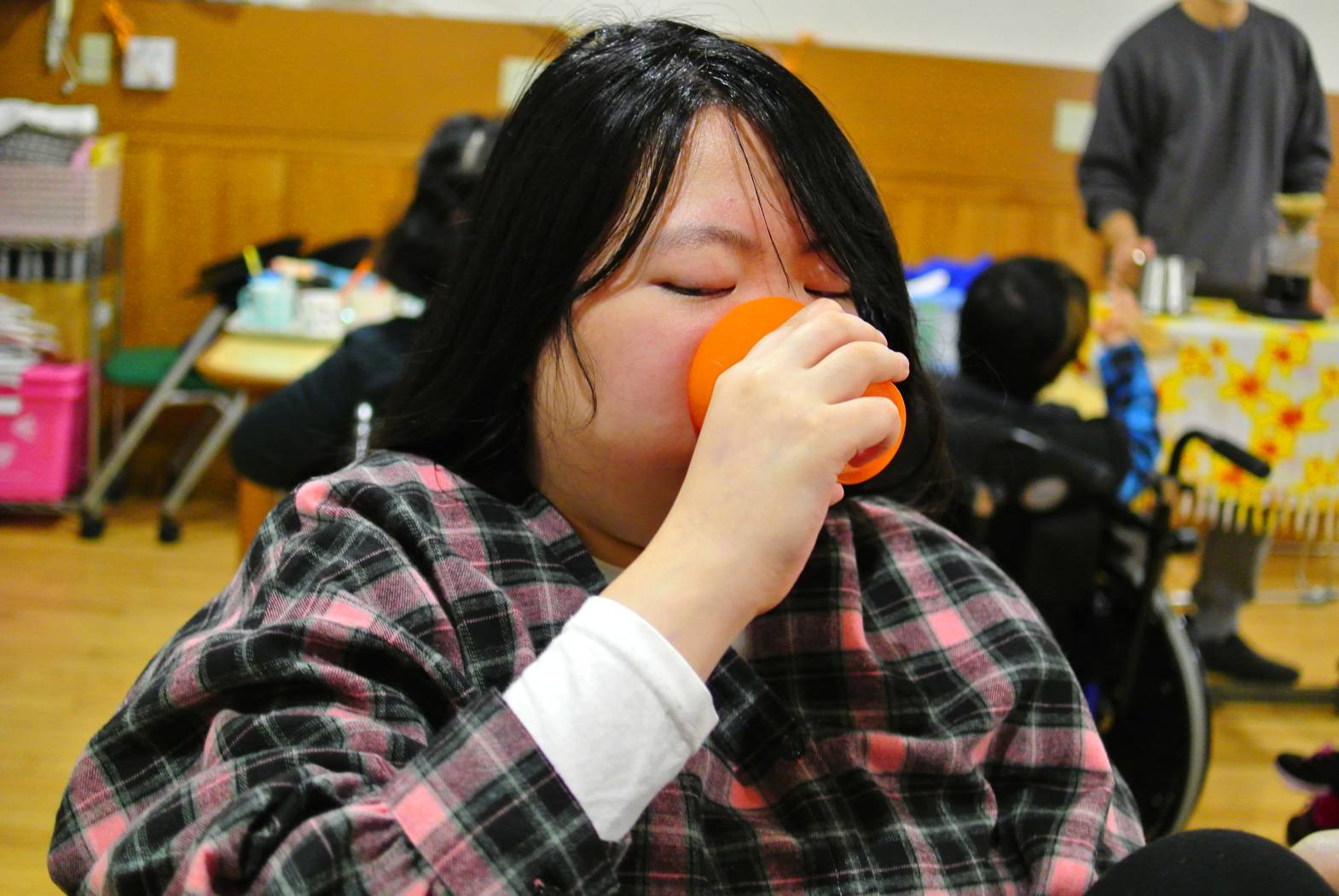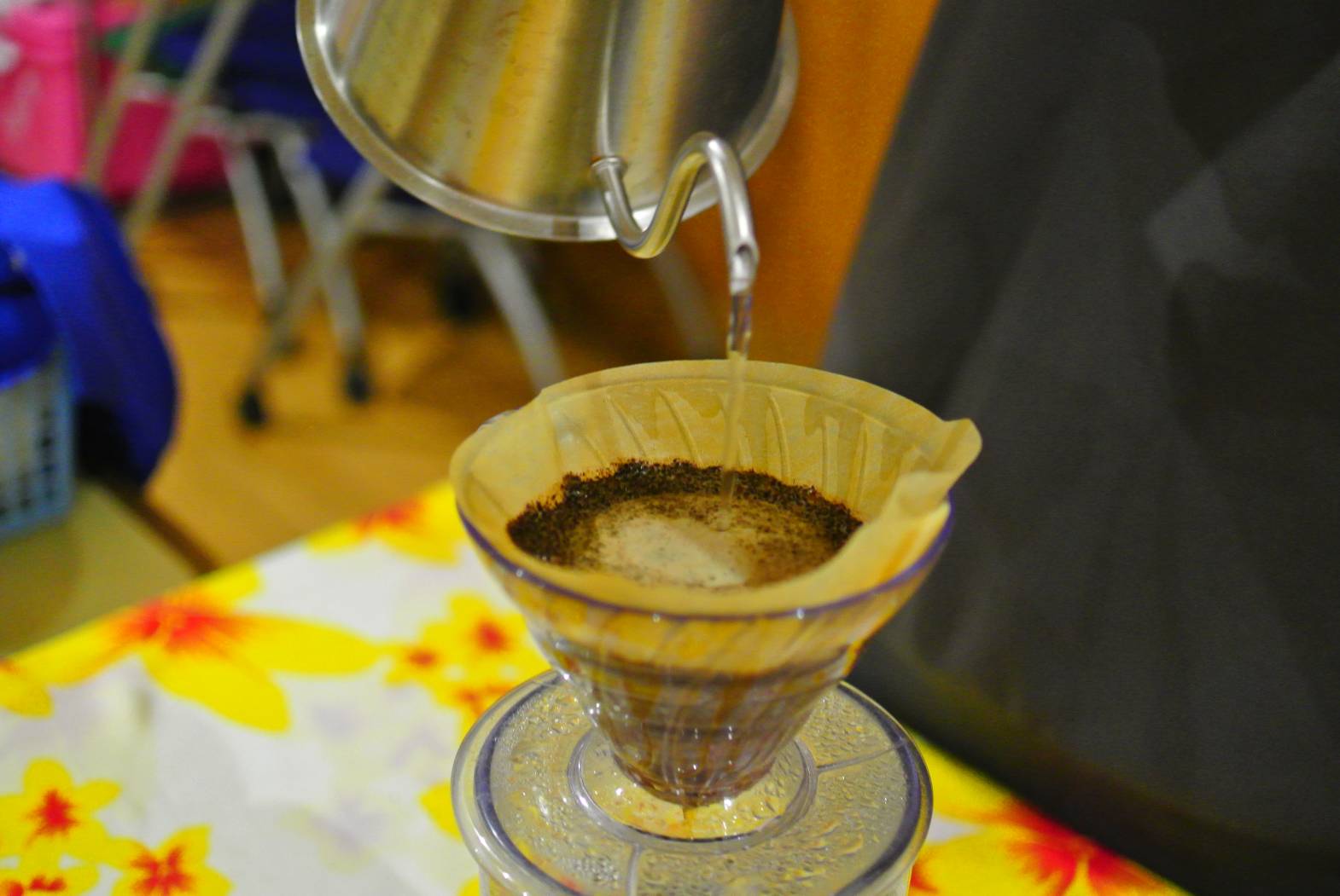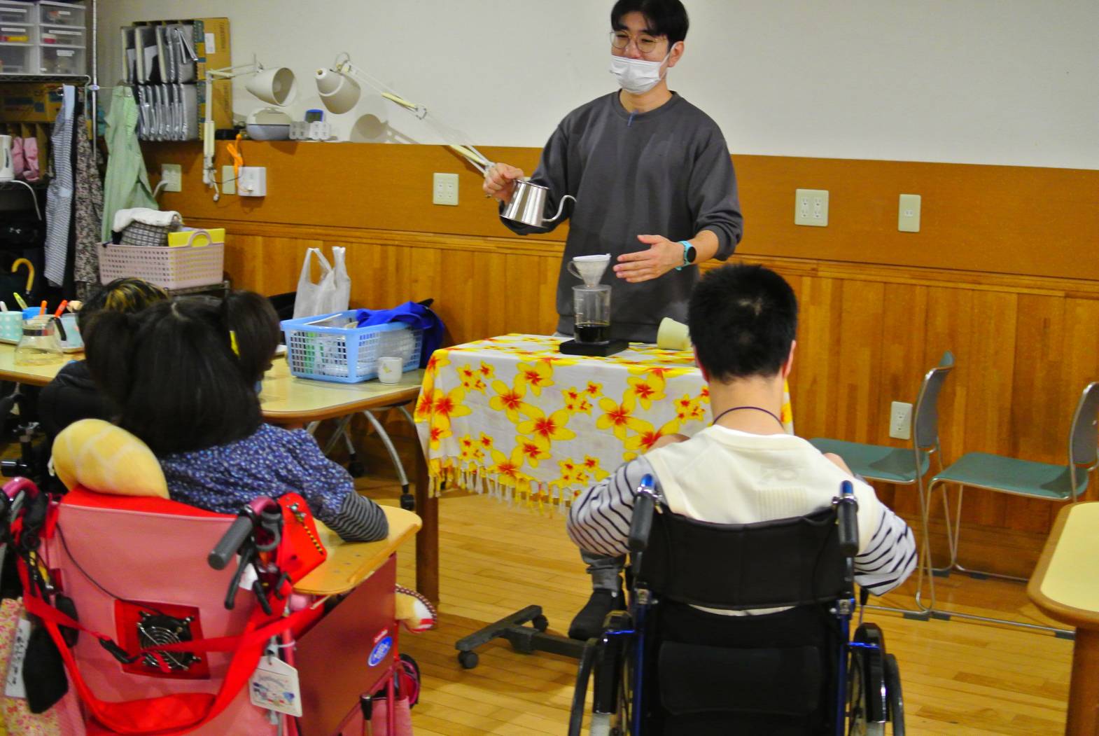 今日は土曜日だけの特別な活動、カフェ活動を行いました。 今日はどんなコーヒーが飲めるのか、楽しみですね! お湯を注ぐと、ふわっとコーヒーの良い香りが部屋いっぱいに広がりました! 今回はミルクたっぷりのカフェラテを美味しくいただきました! しとしとと降る雨も、ちょっとしたアクセントに感じる美味しいカフェ活動でした! 次回のカフェ活動も楽しみにしておいてくださいね!