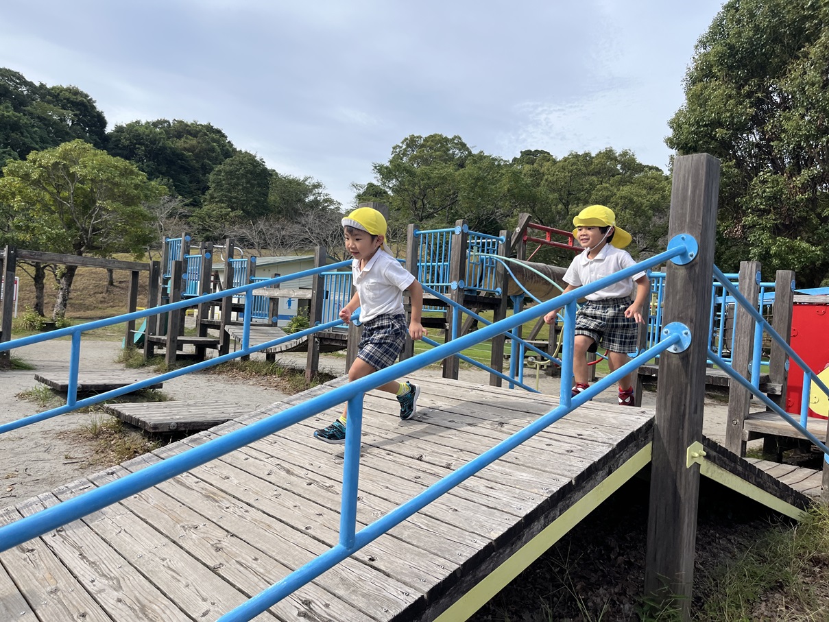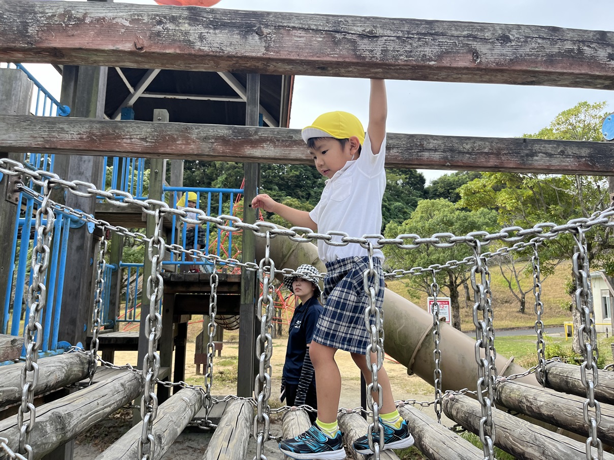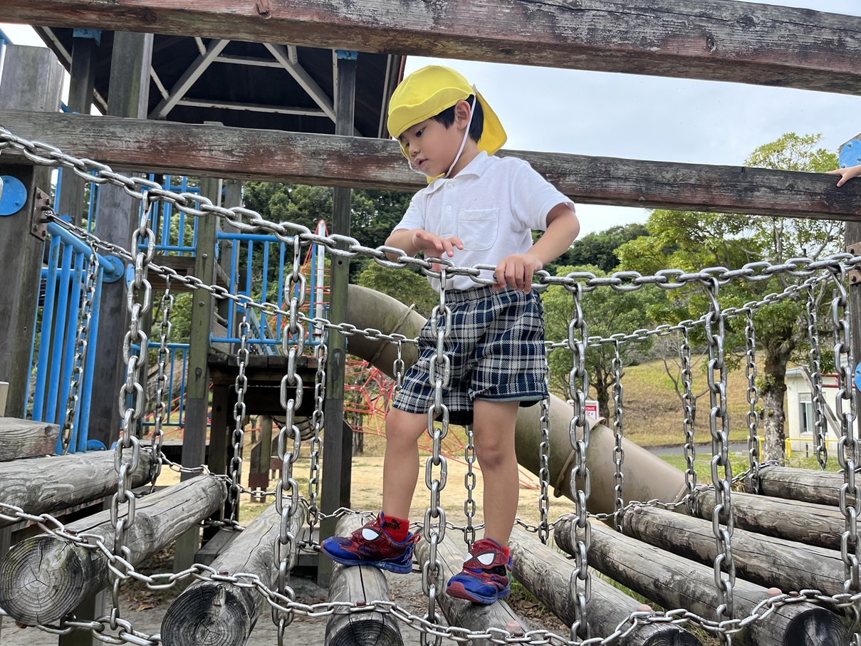 とら①グループさんでは、健康の森公園の遊具で遊びました。 走ったり、登ったり、渡ったりと様々な遊具で遊びました! 足場が不安定な場所も一歩ずつ慎重に歩いて渡るとら①グループさん! お友だちと順番を守りながら、「○○くん頑張れ!」とお友だちの応援をする様子も見られました! 「楽しかった!」「あの遊具初めてだった!」と笑顔いっぱいお話をする姿が見られていました☆