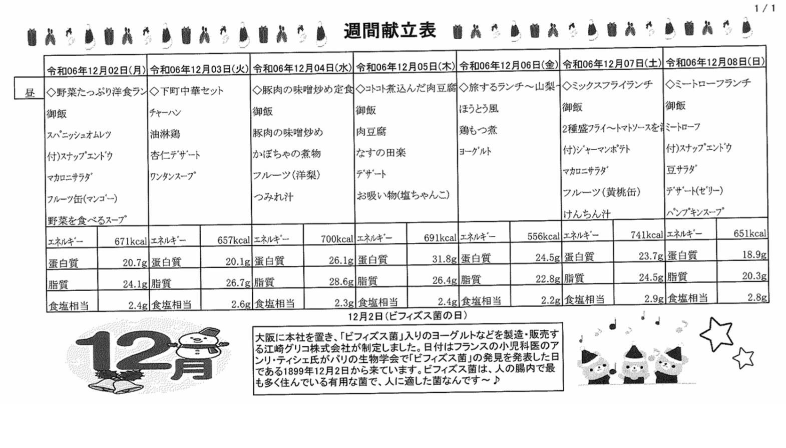 12月2日(月)~12月8日(日)の献立表になります。ぜひご覧ください。