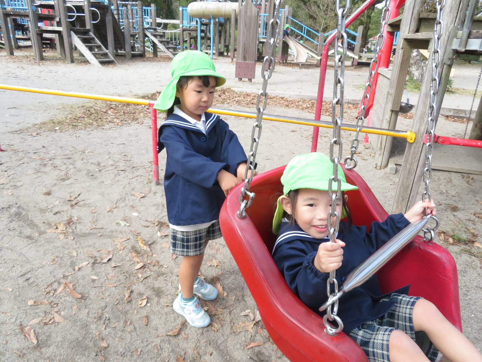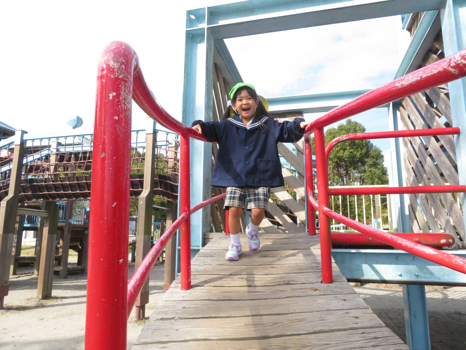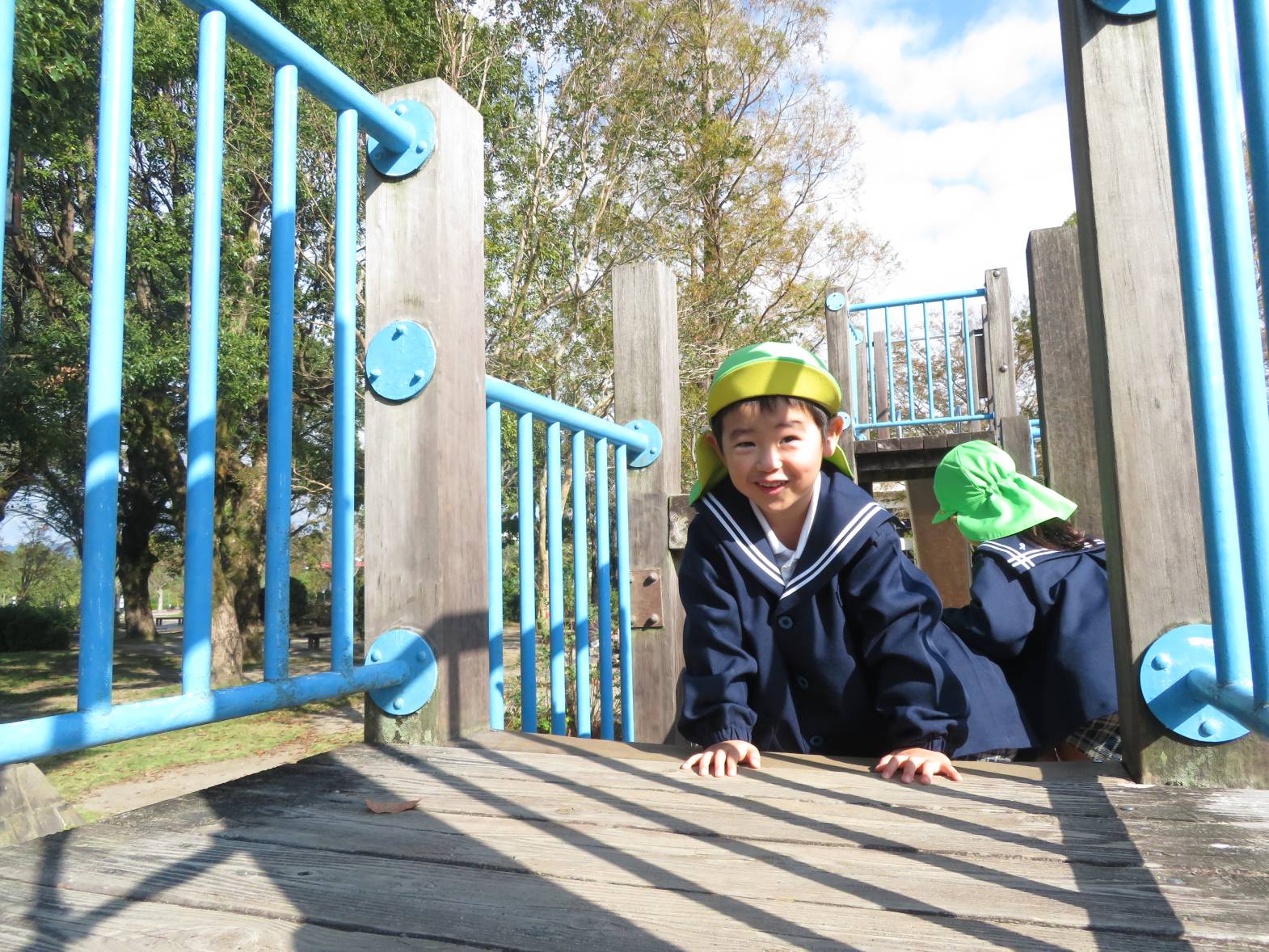 早速、公園に着くと、ブランコや大きな滑り台等の遊具で遊んでいきます。「見て!僕は高い所でも全然怖くないよ。」、「保育園にない滑り台で遊べて楽しいな♪」と、時間いっぱい遊ぶことができました!