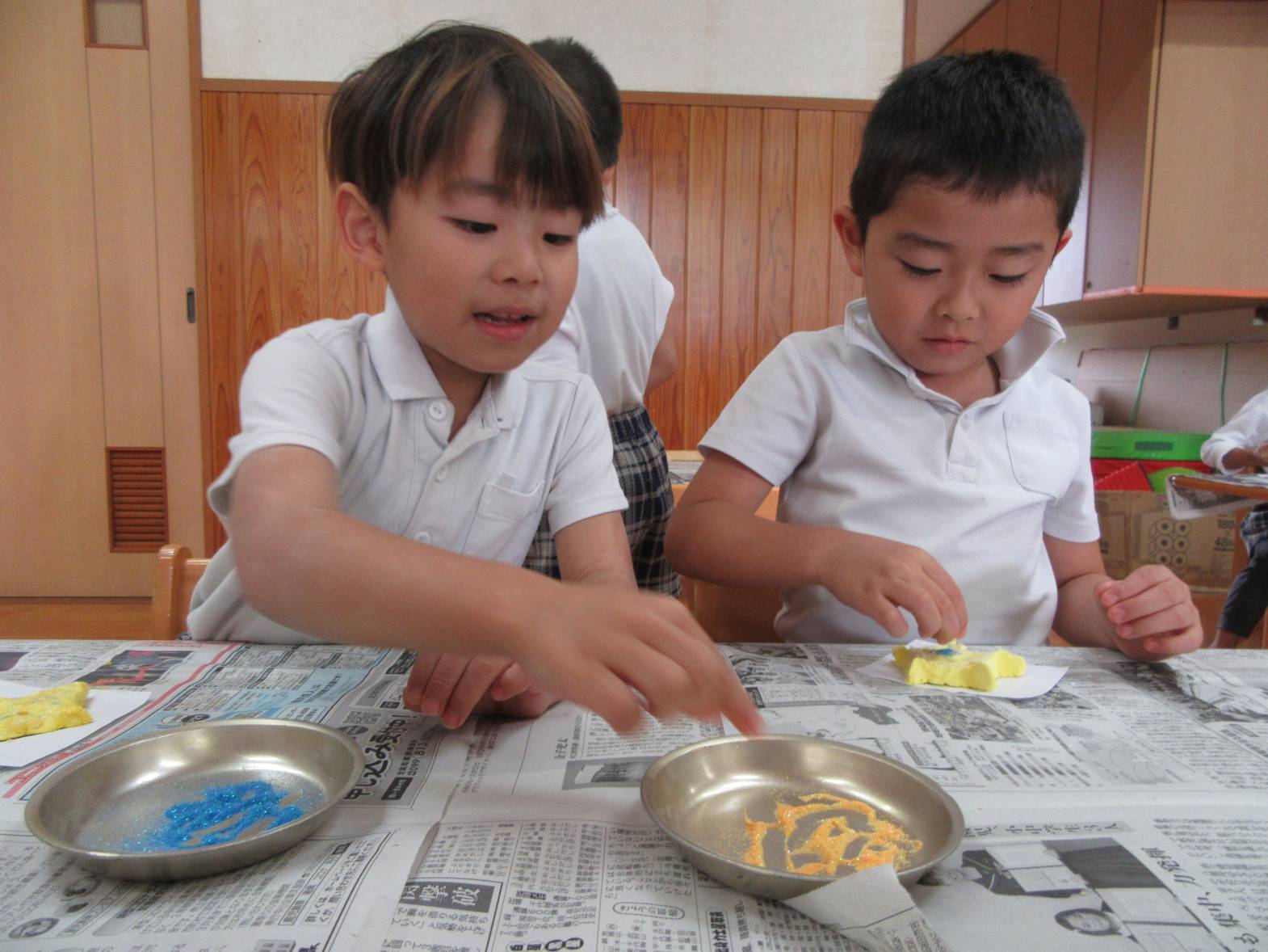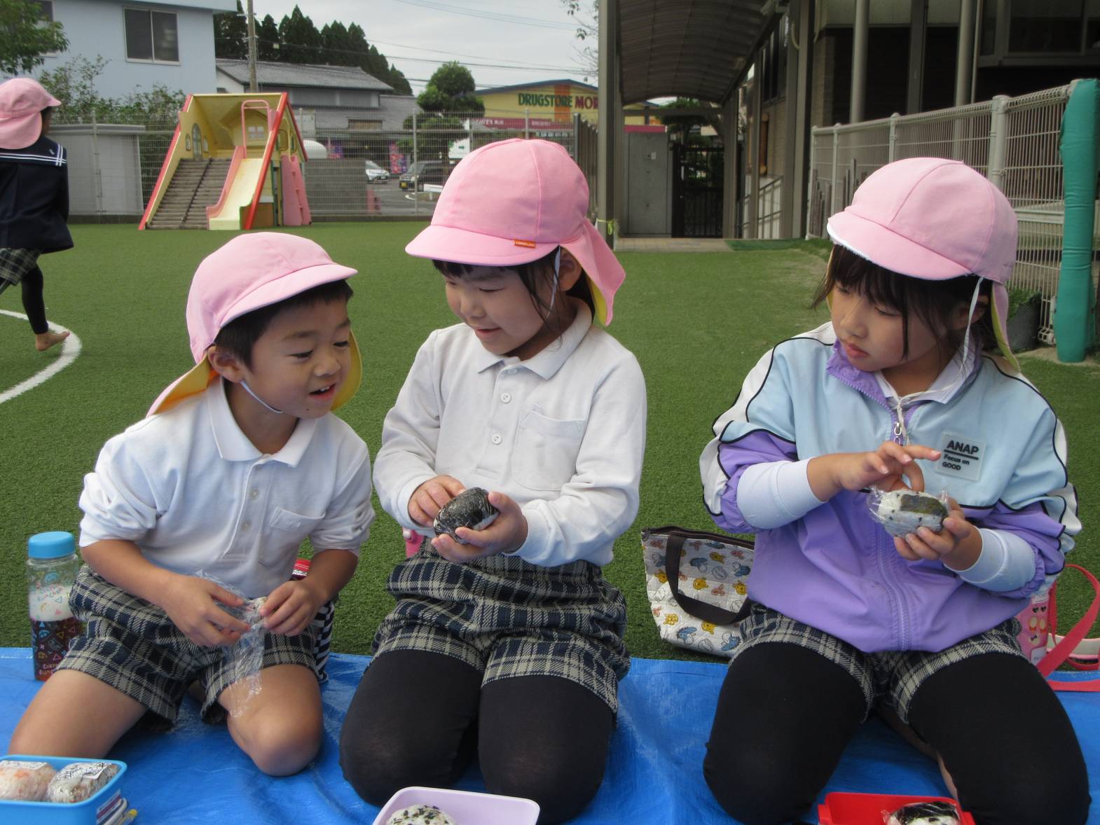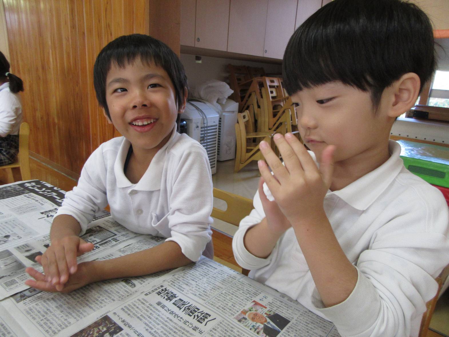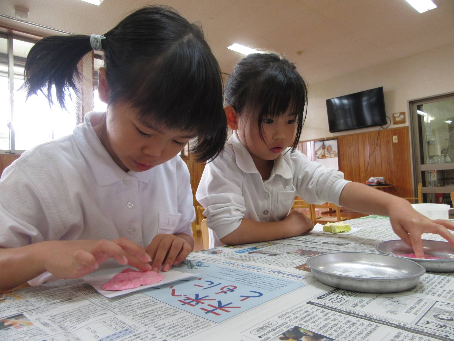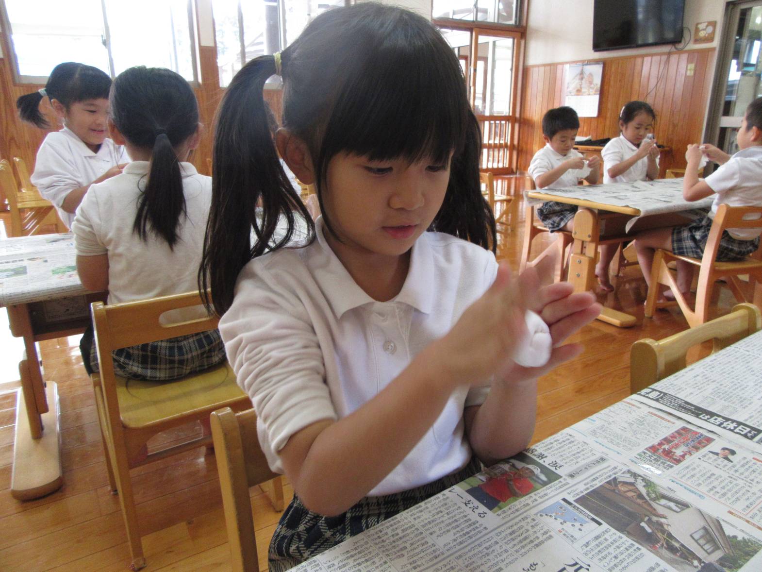今日は、紙粘土を使用して、クリスマスツリーのオーナメント作りをしました! 絵の具を混ぜて、色付けをしたり、好きな形に形作ったりしていく子どもたち。どんなクリスマスツリーになるか楽しみです! 昼食はお父さん、お母さんが作ってくれたおむすびを食べました! 「今日は3個ある!」、「梅干しが入ってる!」と友だちとの会話を弾ませながら、楽しい昼食となったきりん組さんでした!