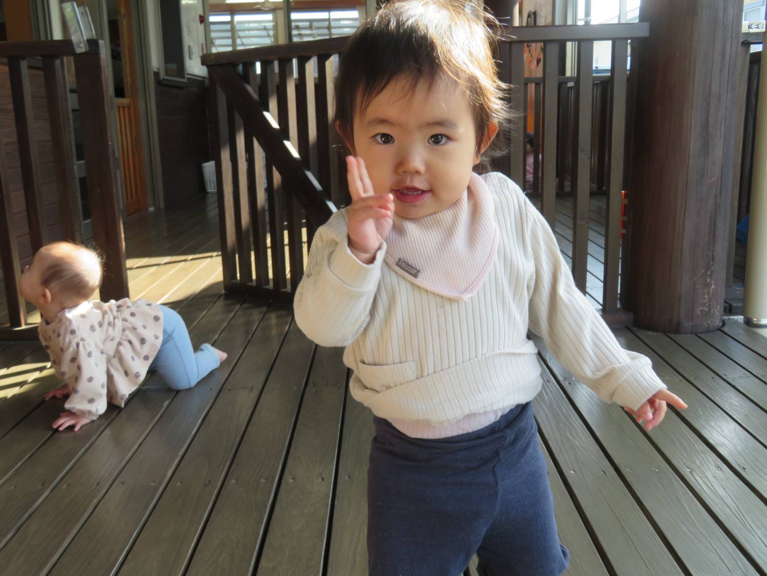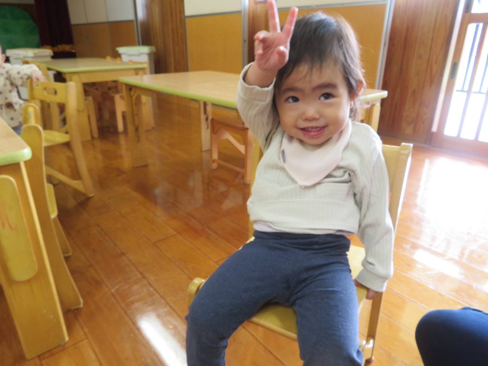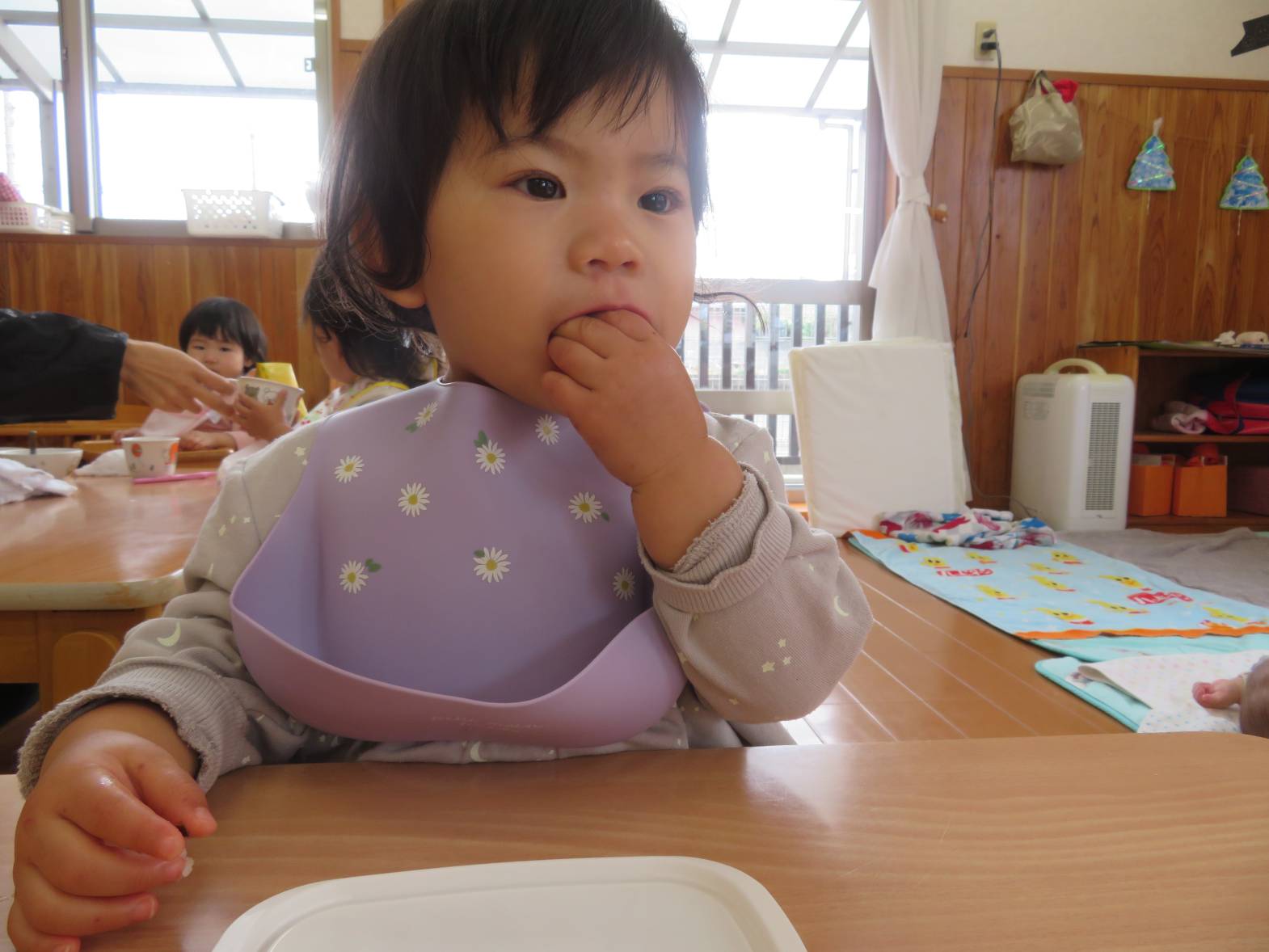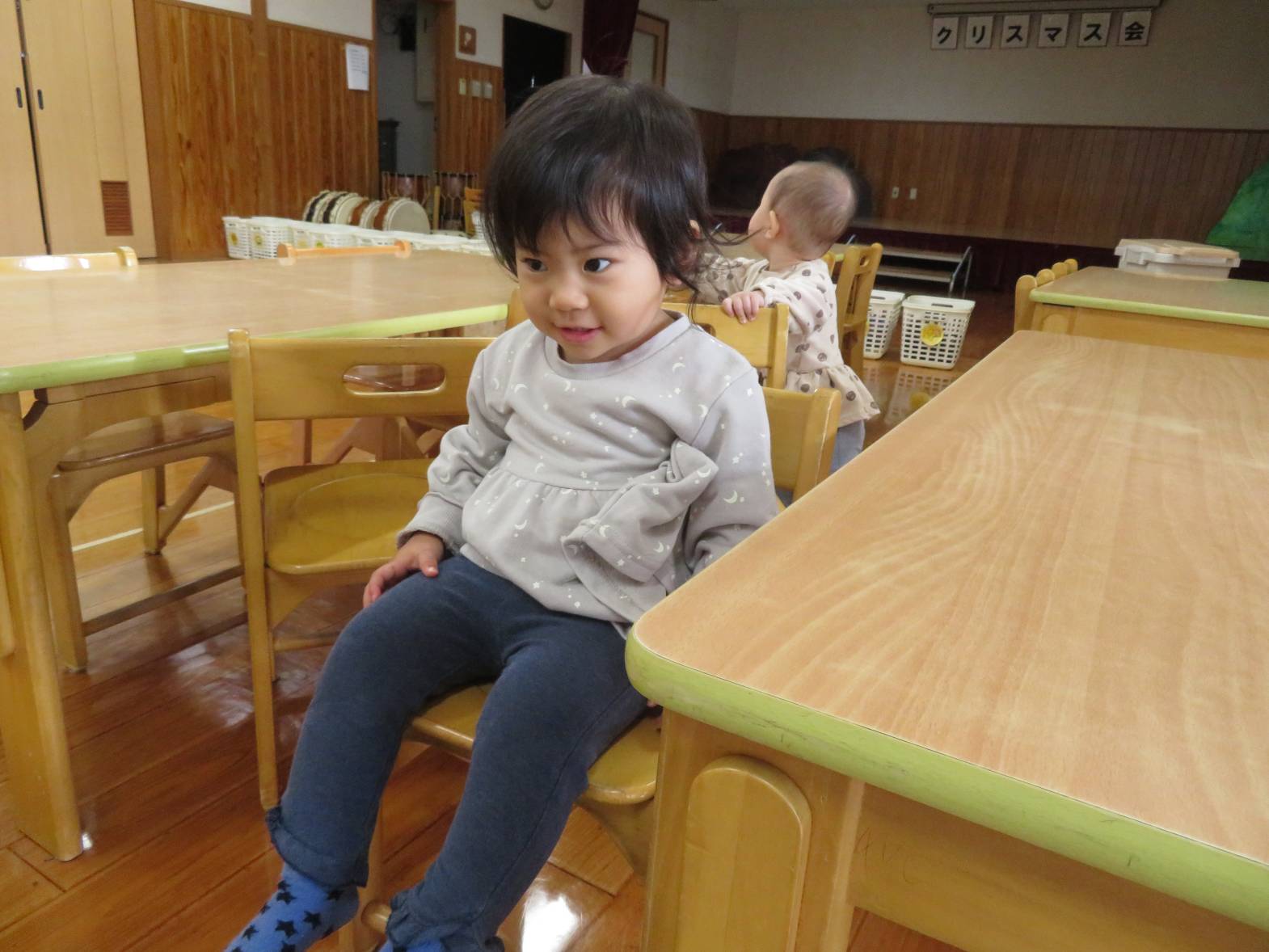 今日は、おむすびの日ということもあり、いつもと違う雰囲気の保育園。 そんな保育園の探索に行ってきました♪ きりん組さんに入ると、いつもよりも大きな机と椅子にわくわくした表情のひよこ組さん! 手押し車のようにしてみたり、座ってみたりと楽しんでいます。 お待ちかねのおむすびを美味しく頬張り満足そうな表情を浮かべる子どもたちでした。