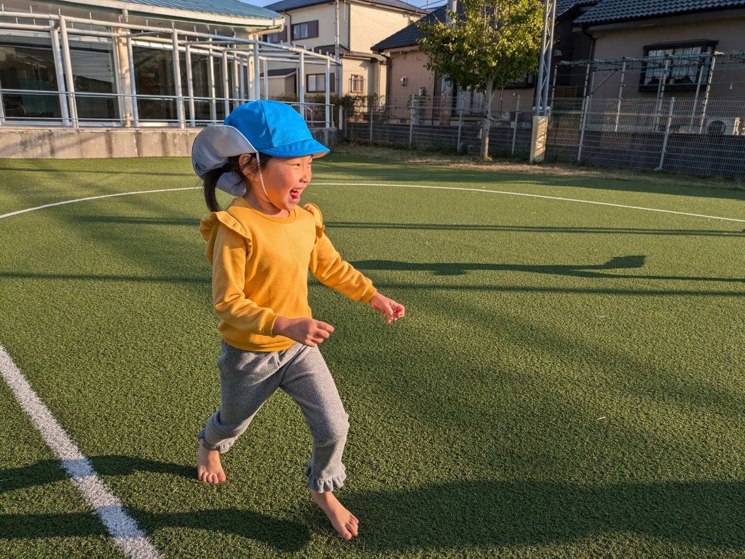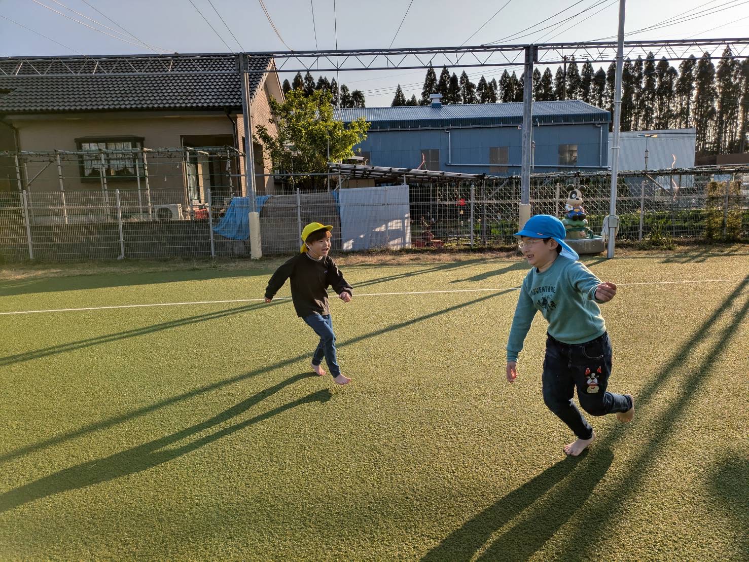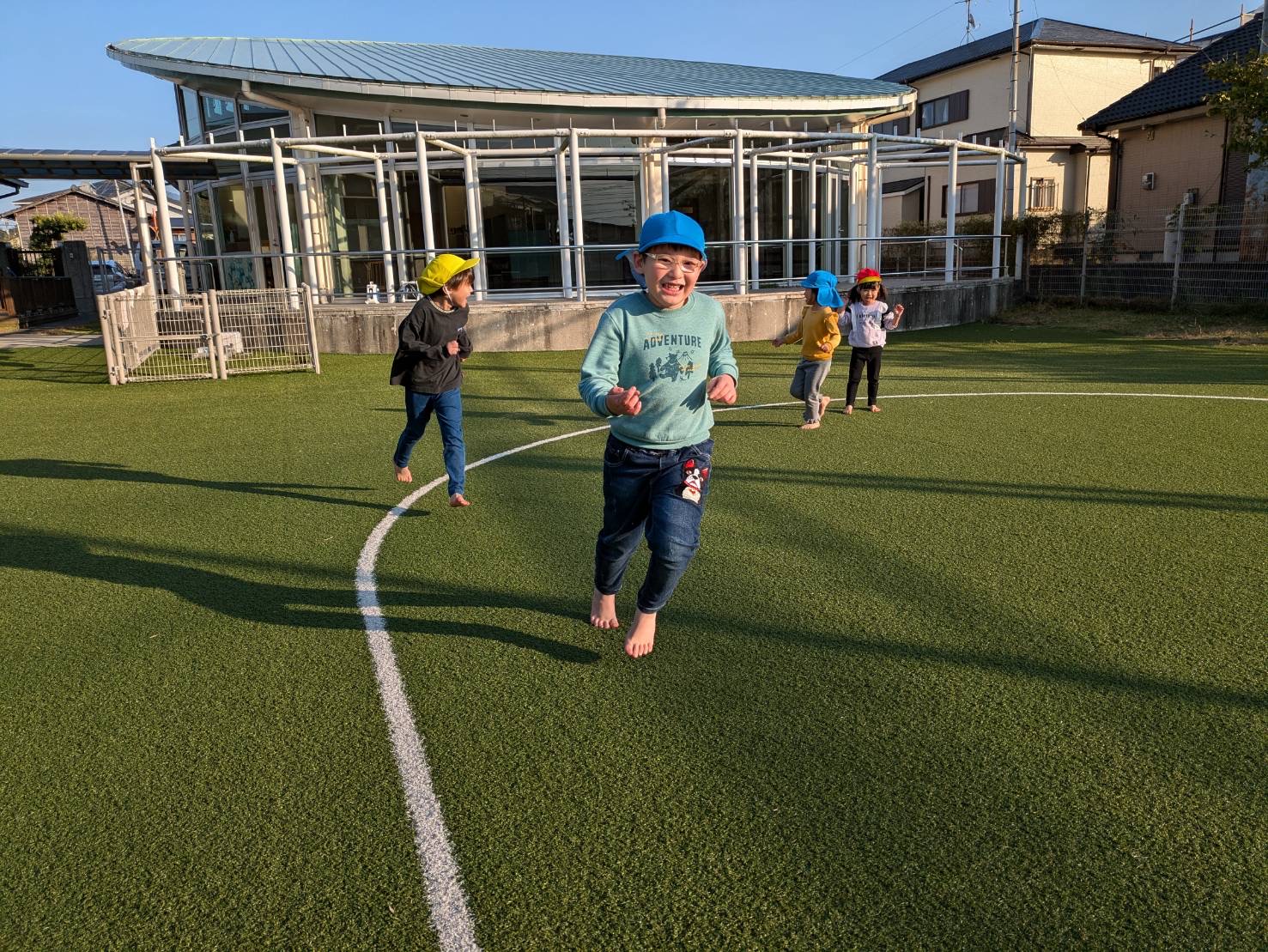 今回は、戸外活動で園庭に行きました。 就学に向けて、子ども達で話し合いをして集団遊びを決めて取り組んでいます。 決まったのは、氷鬼ごっこ!子ども達の大好きな鬼ごっこの一つです。 線の中を意識しながら逃げていき、捕まると… 両手を大きく伸ばして、助けを求める子ども達! 鬼ごっこの前には、マラソンも行い、時間いっぱい走る元気いっぱいなとら②・ぞう②グループさんでしたよ☆