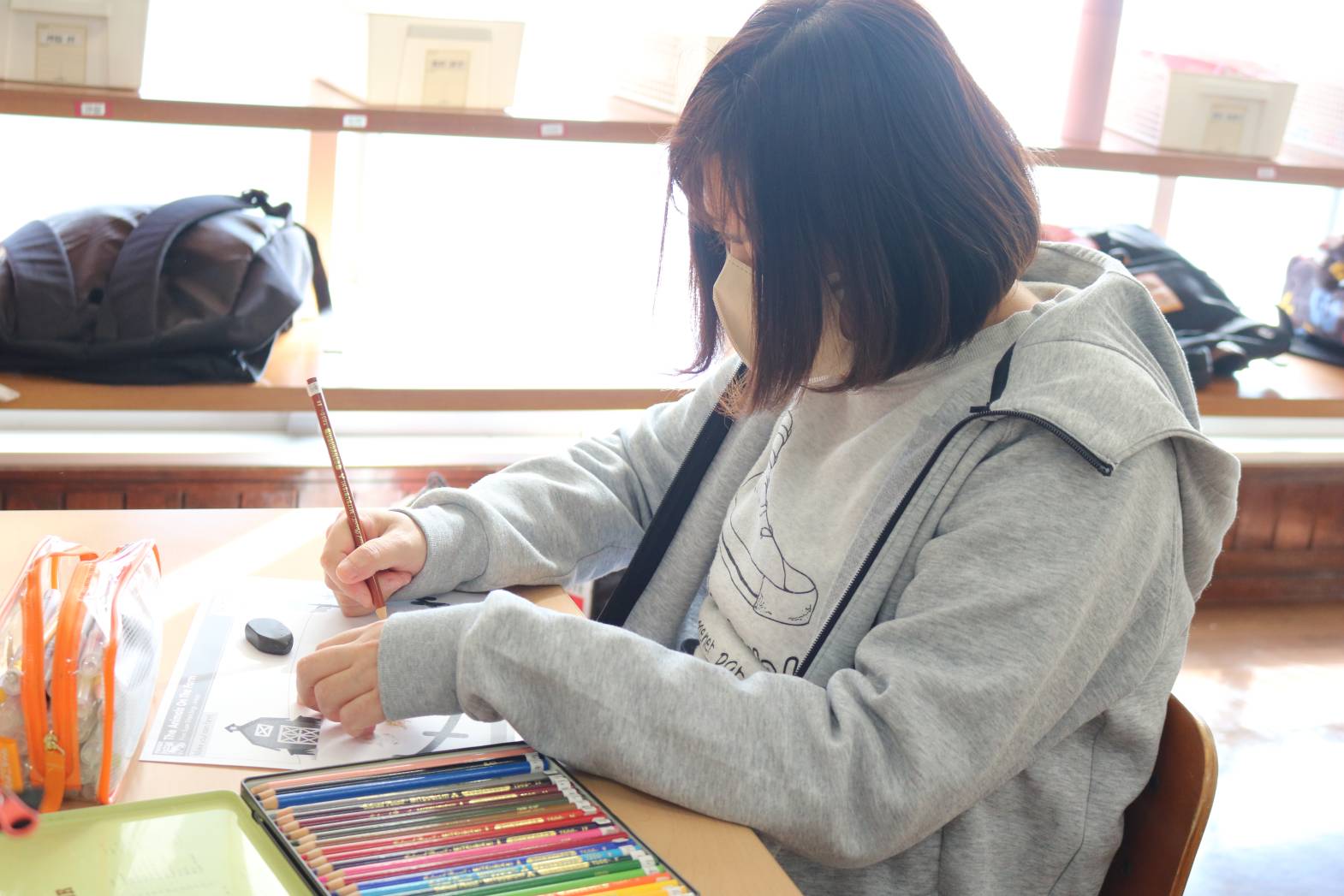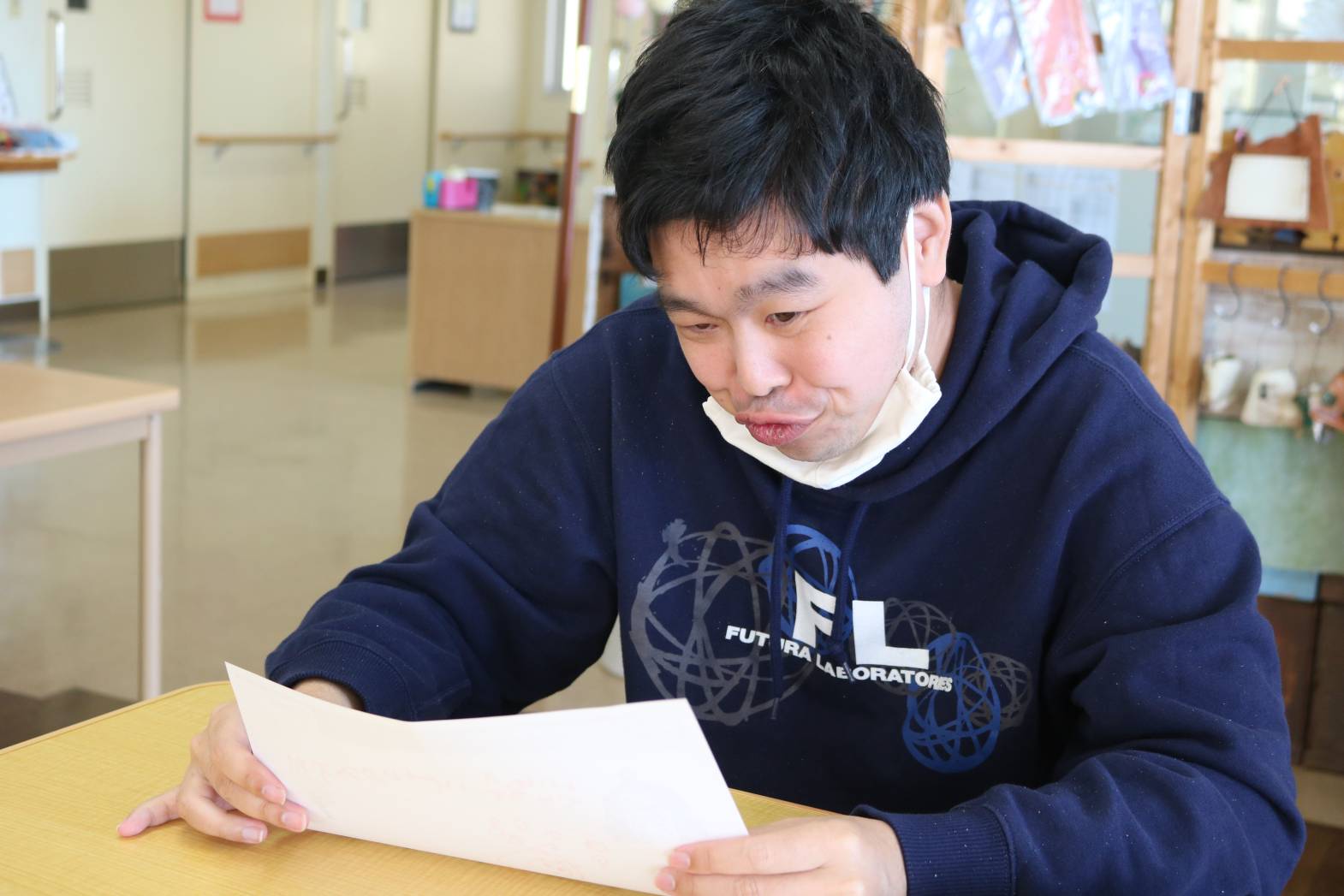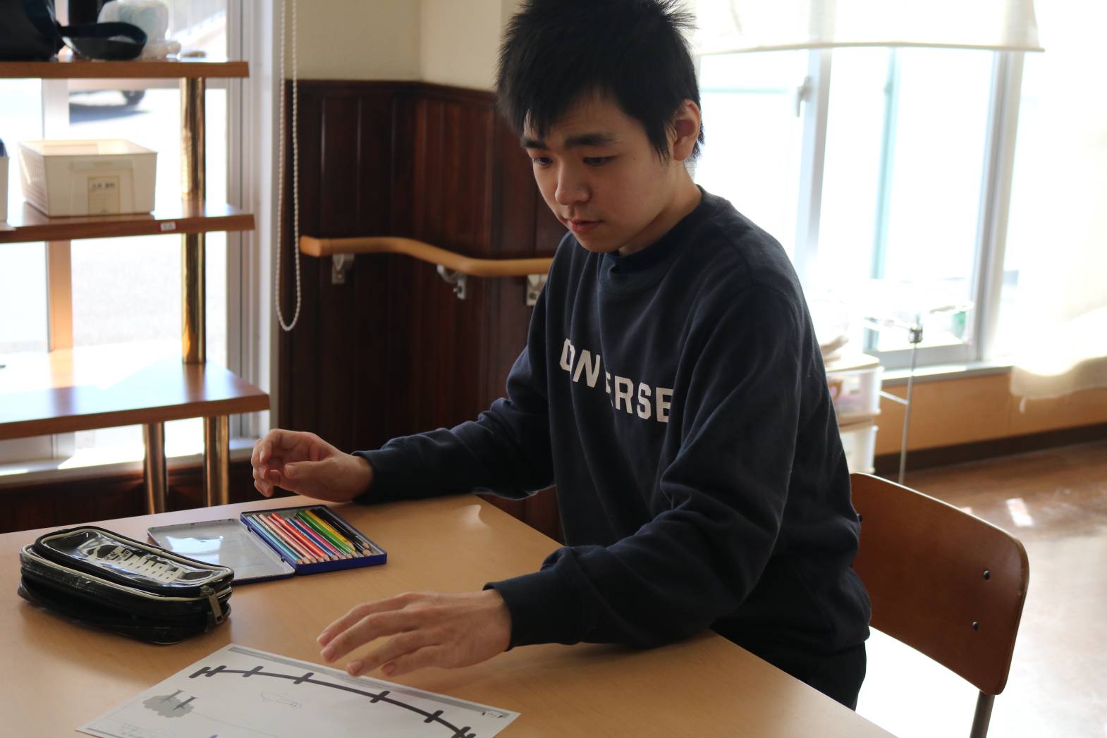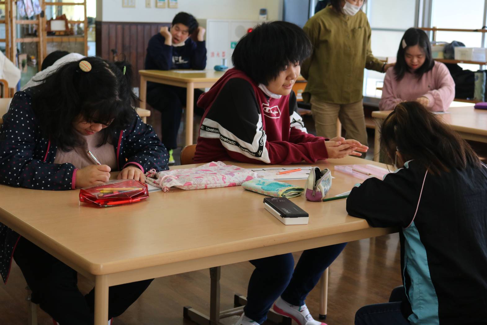 「英語で遊ぼう」にて、牧場の動物やその鳴き声について、 歌など通して楽しく学びました。 牧場の動物について学んだあとは、 皆さん自由に好きな動物の絵を描いて過ごされました。 なかには、支援員が何の動物を描いたのか、質問をすると 「cow!」と歌で学んだ英単語を使って返答して下さる方もいて 皆さんから拍手で称賛される場面もありました。