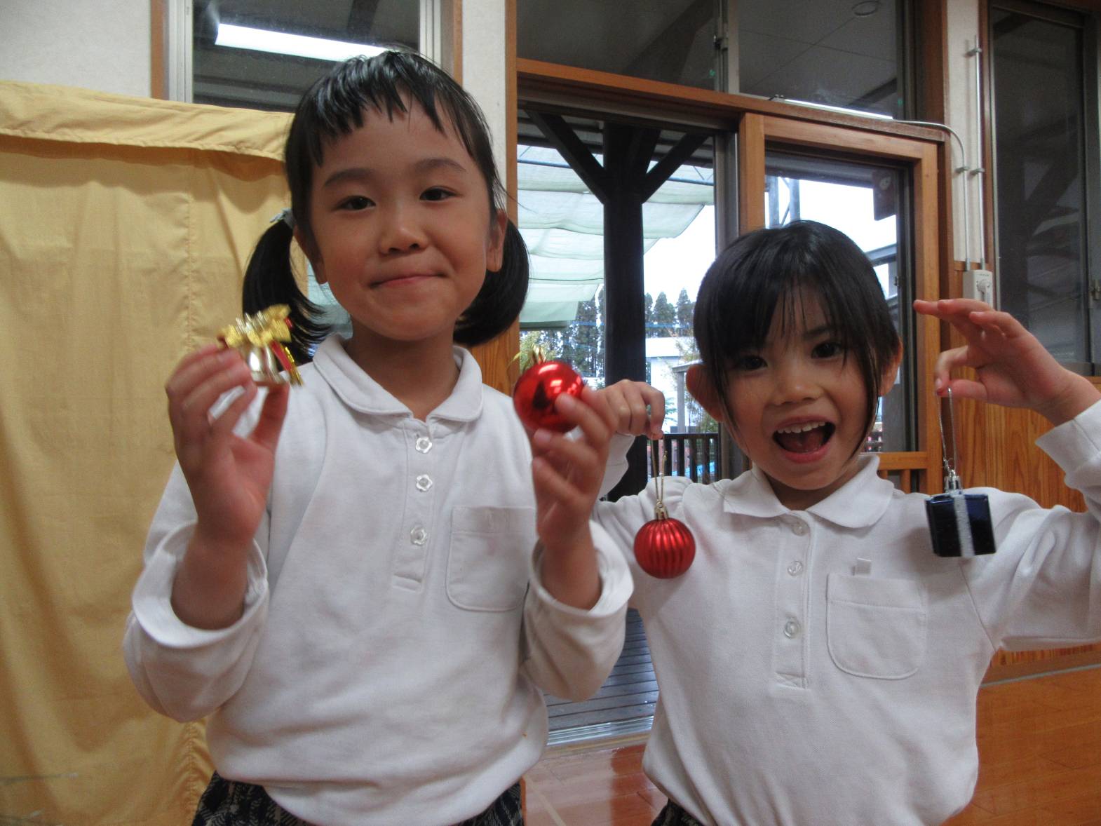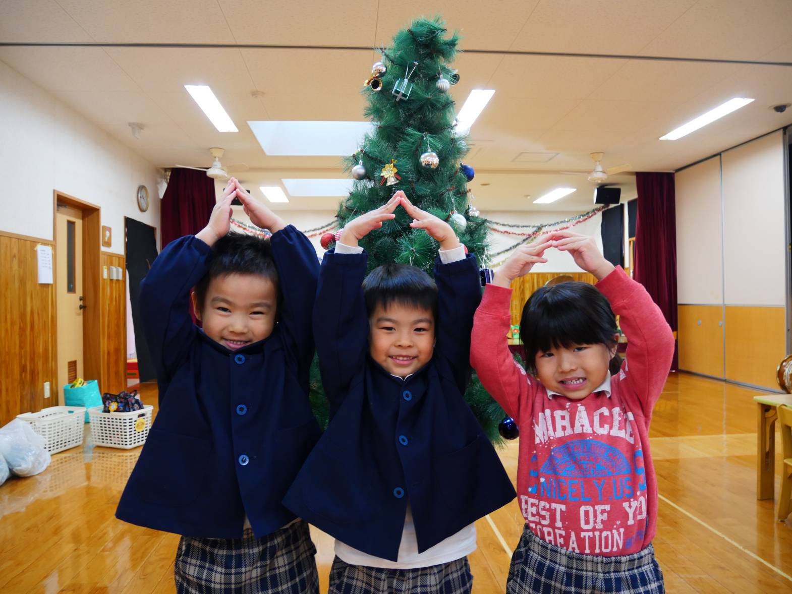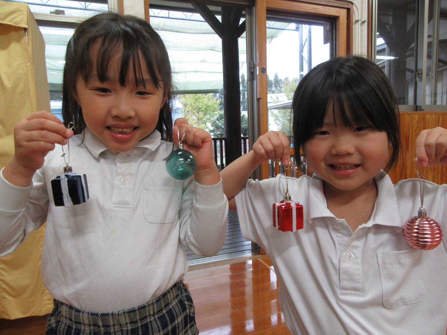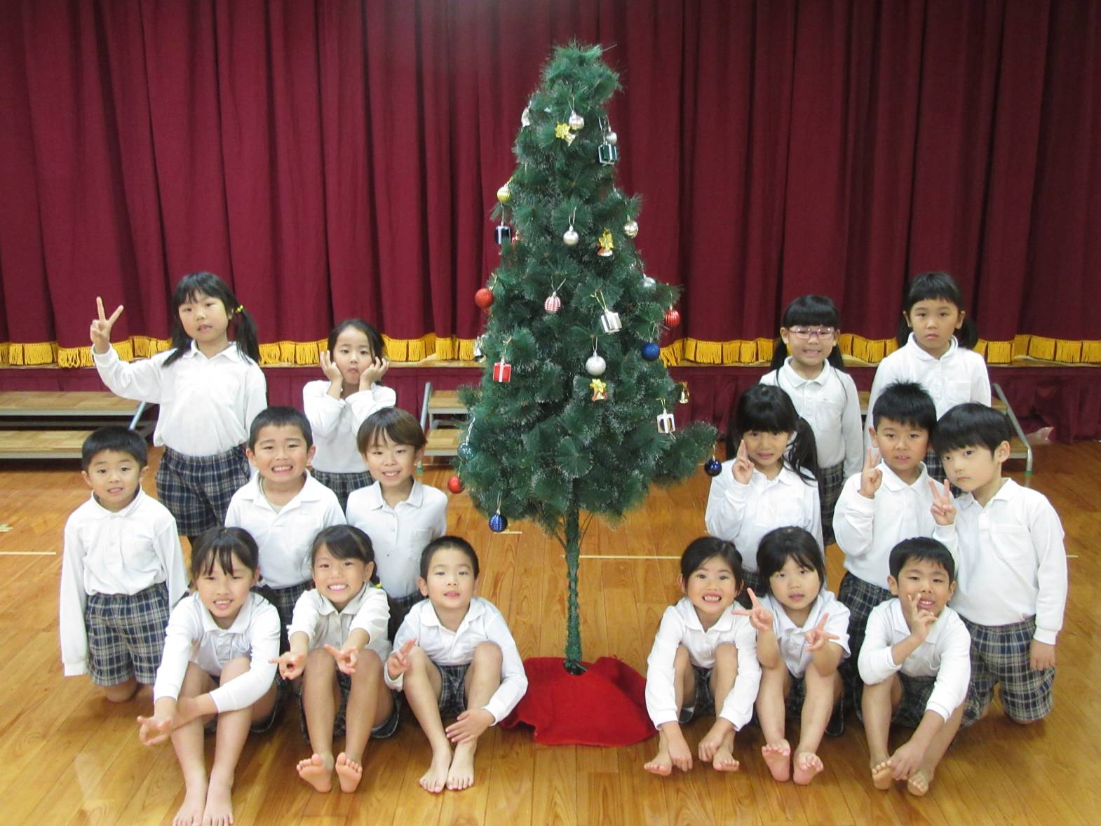 うさぎ組さんときりん組さんでクリスマスツリーの飾りつけをしました。 「きらきらしている飾りをつけたらかわいいかも!」、「僕は、サンタさんからプレゼントをもらいたいからプレゼントの飾りをつけようかな!」と、会話を弾ませる子どもたち。 「みんなで一緒に飾りつけをしたからかわいいクリスマスツリーになったね。」、「サンタさんも見てくれると嬉しいな。」と、楽しく飾り付けをすることができました♪