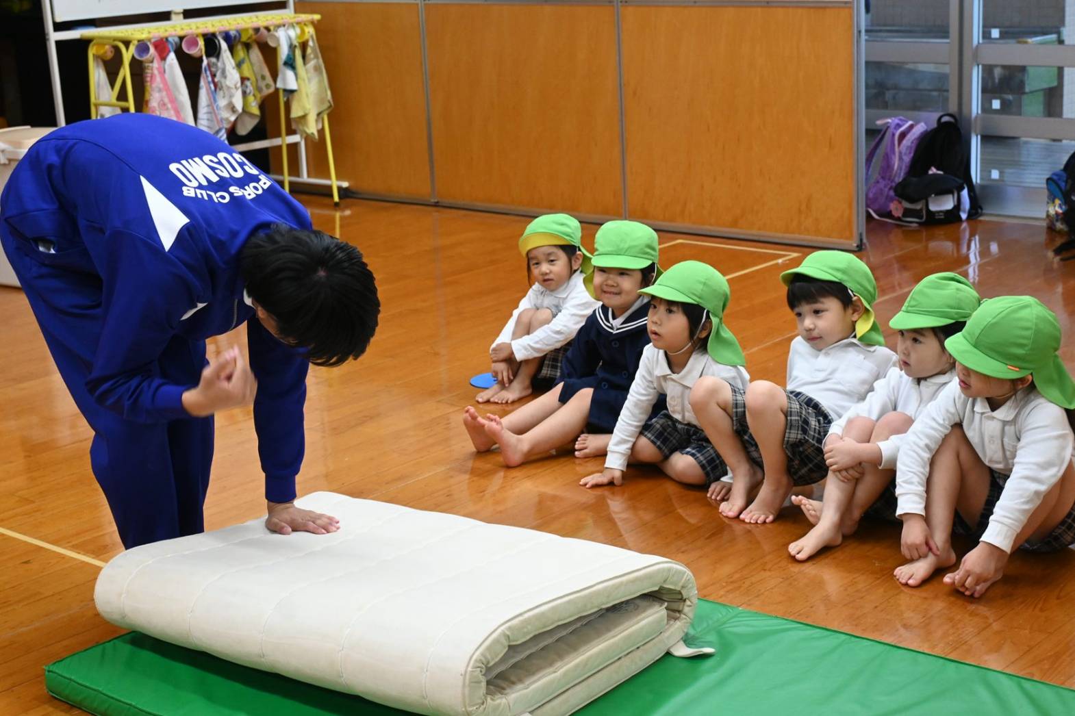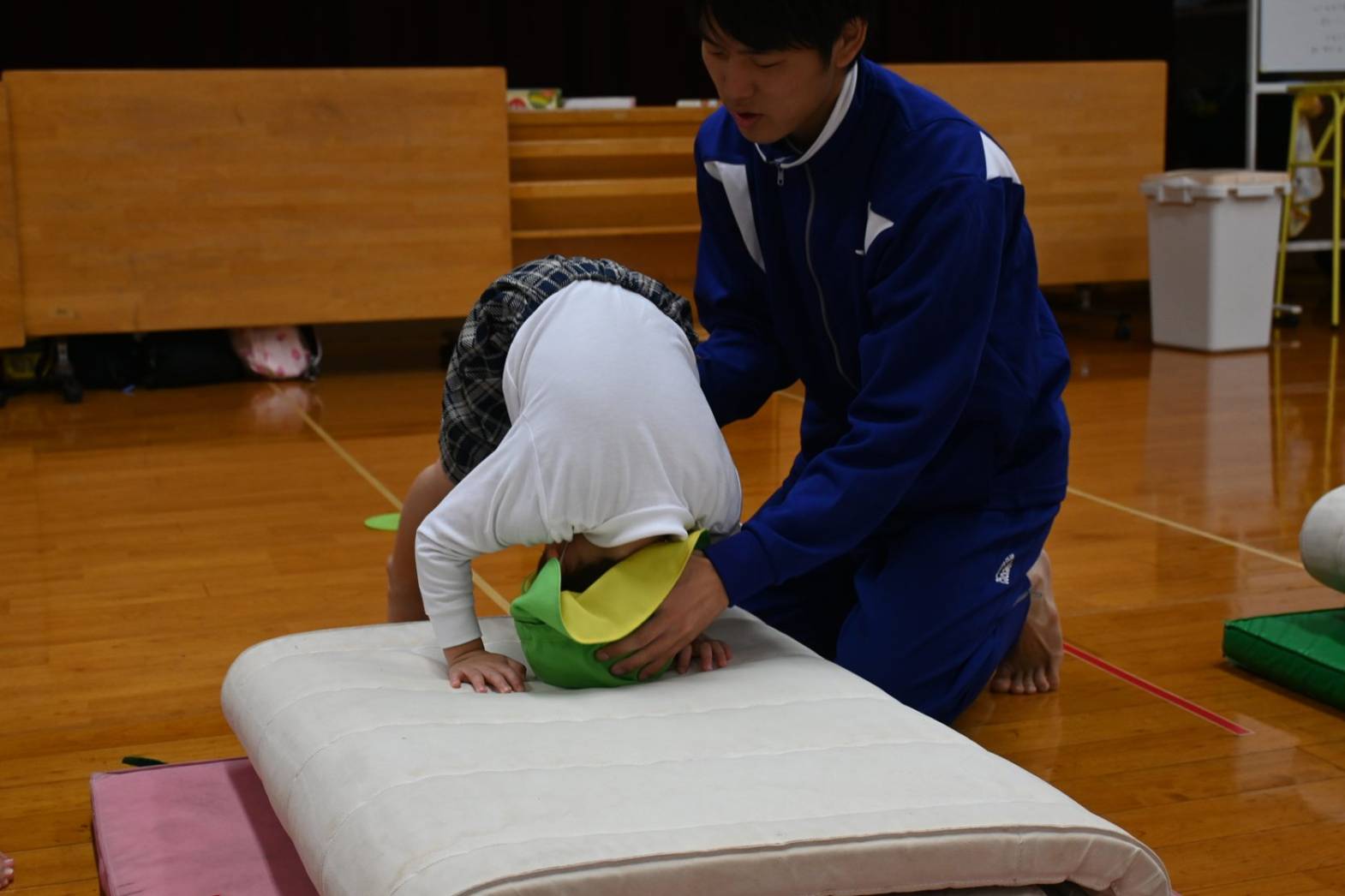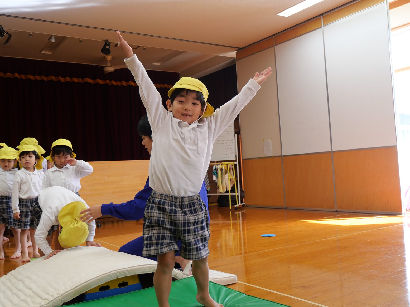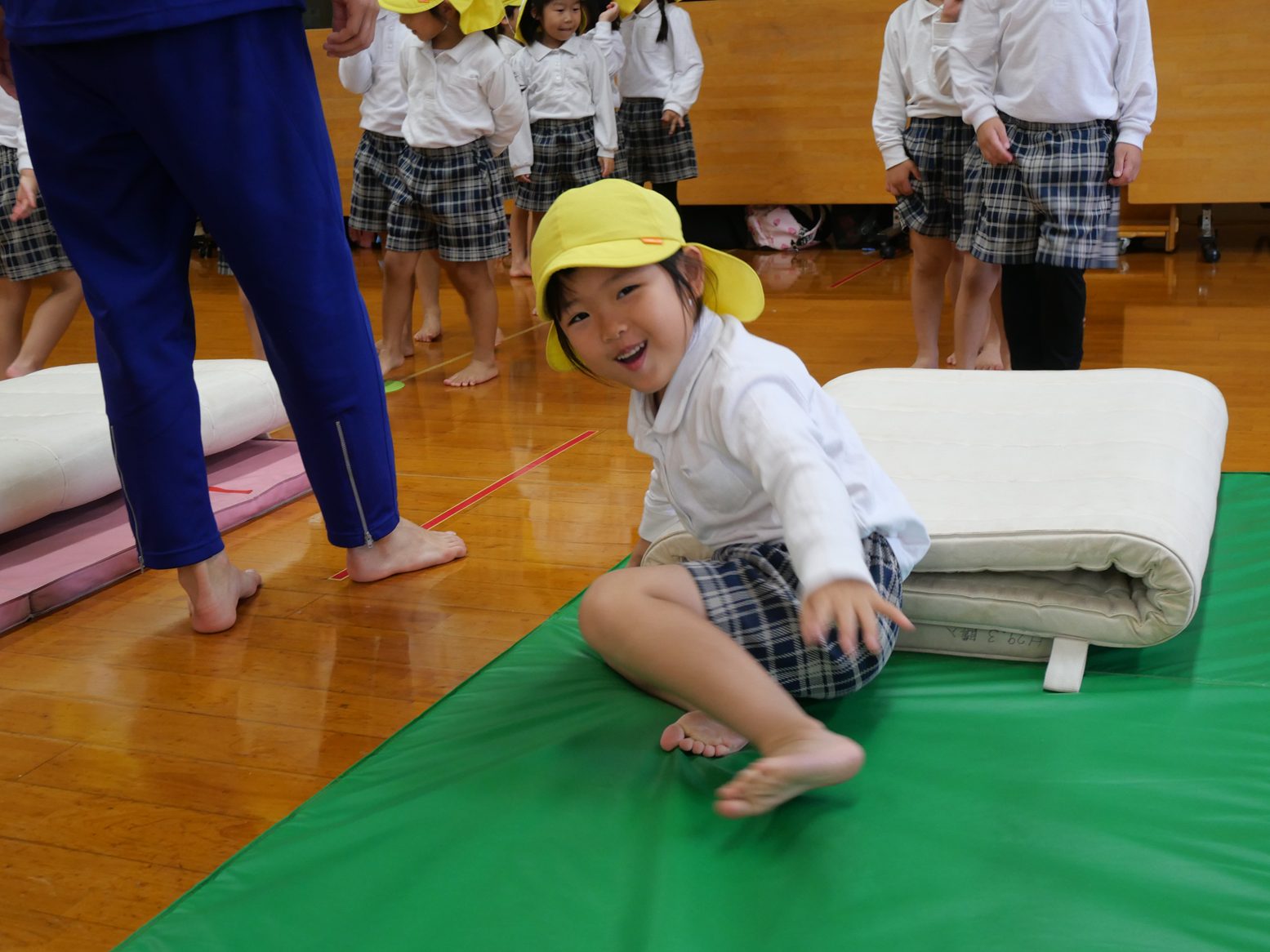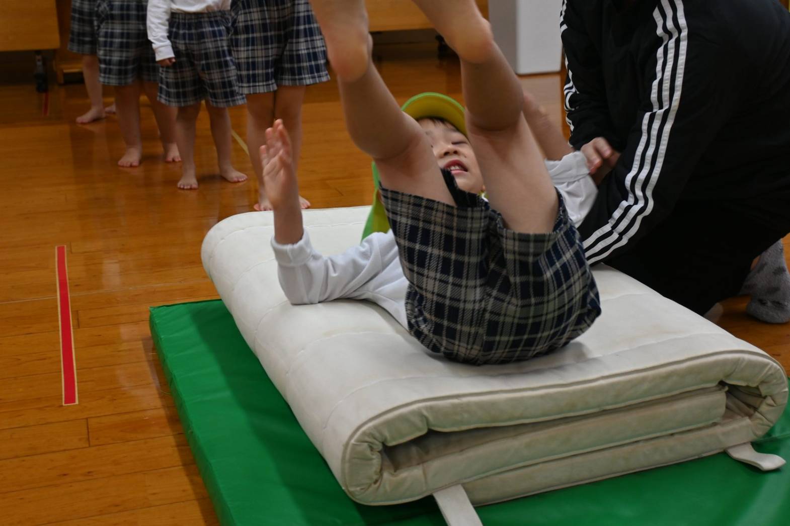 「今日もたくさん前転したね!」「運動遊び、楽しかった。」と、嬉しそうに話していた子どもたちです。