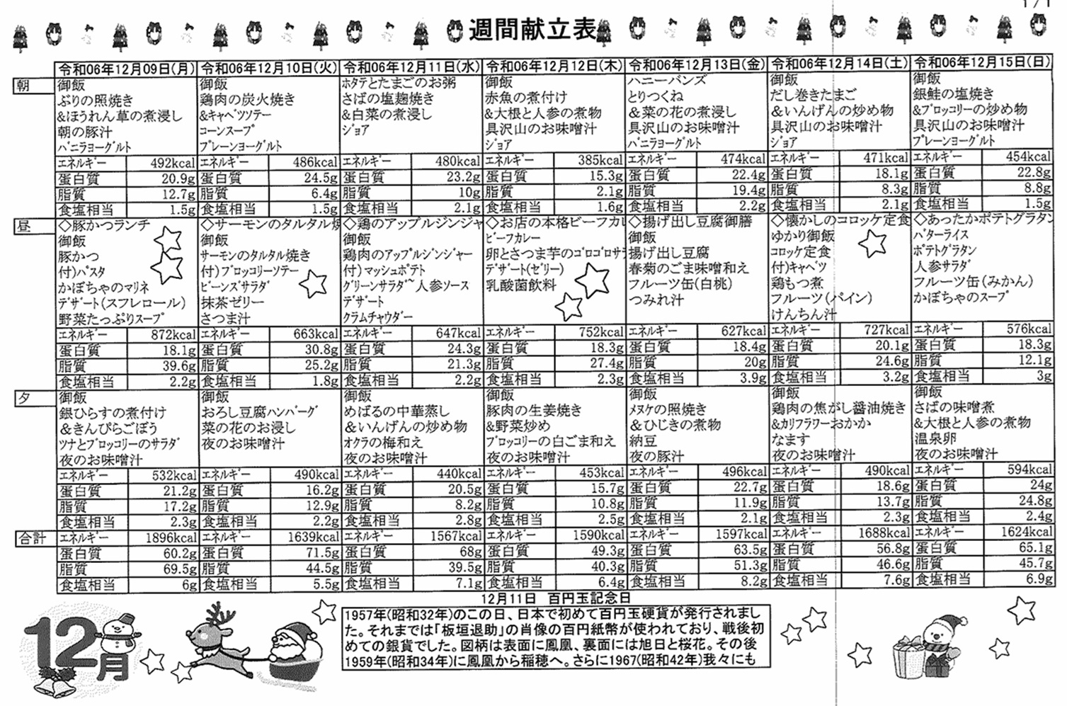 12月9日(月)~12月15日(日)の献立表になります。ぜひご覧ください。