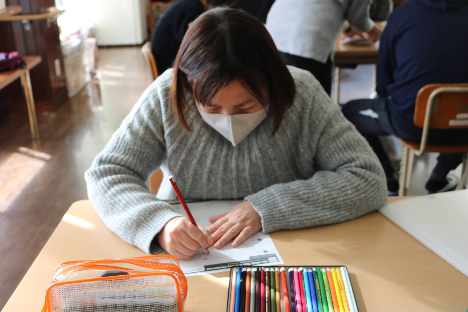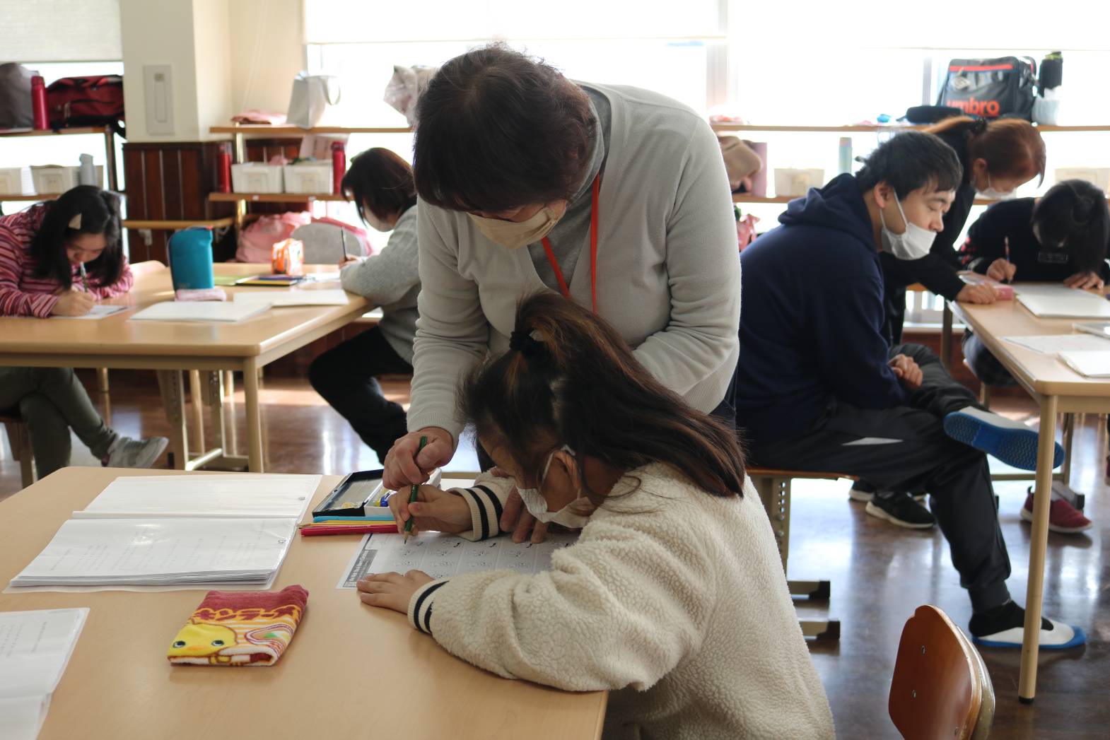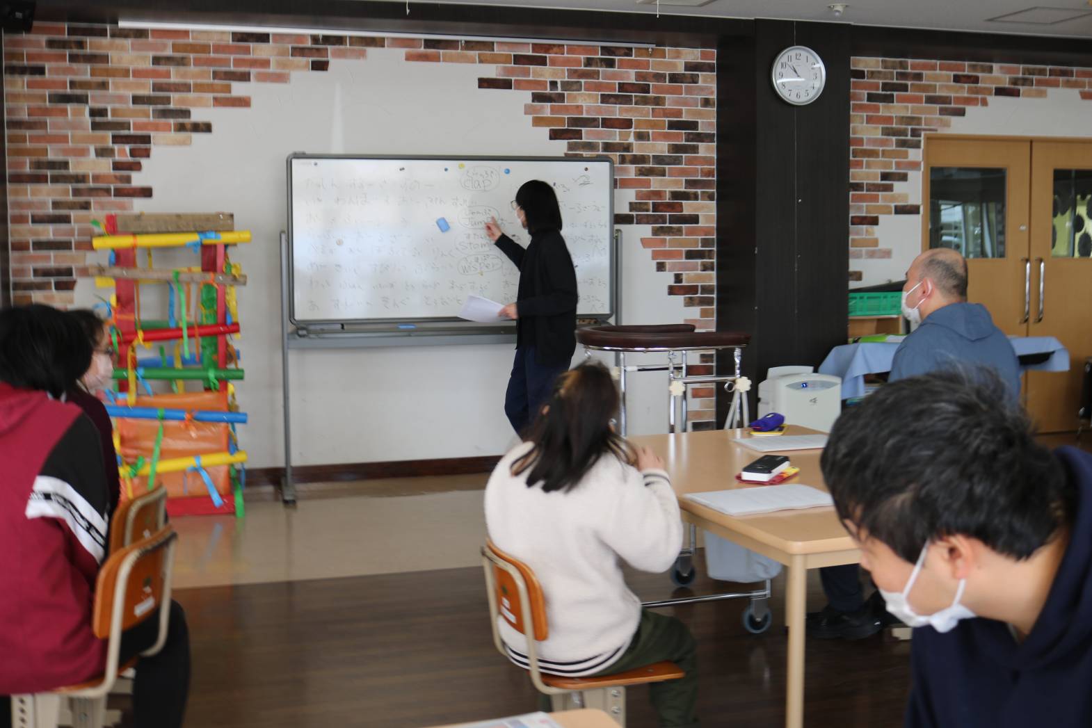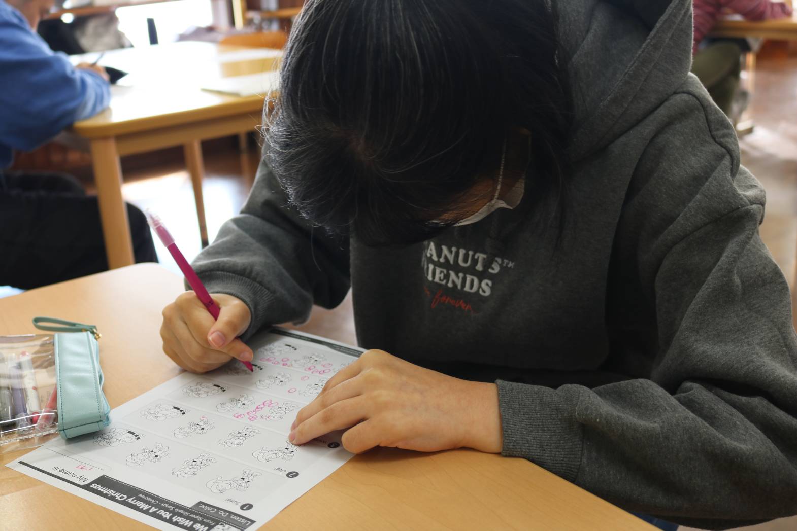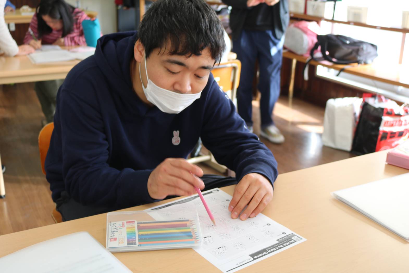 毎週月曜日は「英語で遊ぼう」 歌や振り付けなどを通して英語の学習します。 最近はクリスマスソングの英語バージョンを皆さんで歌ったり、 英単語の書かれたプリントを使って○を付けたり、 色塗りをされたりしています。 皆さん、笑顔いっぱいで活動に参加してくれてありがとうございました。 また来週も楽しみましょう。