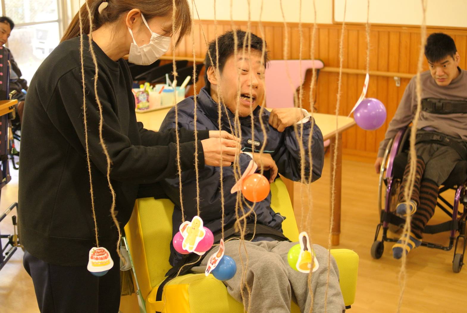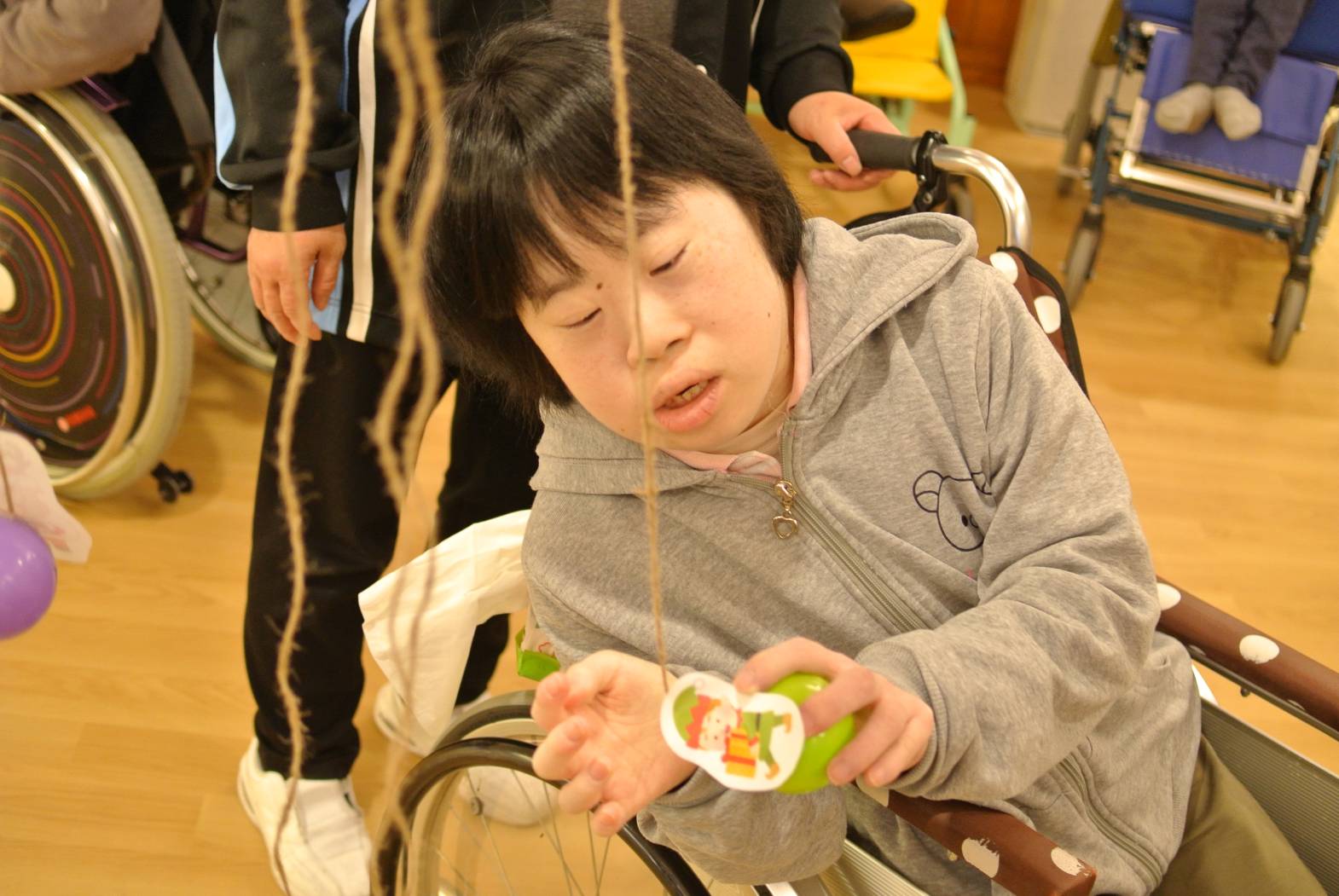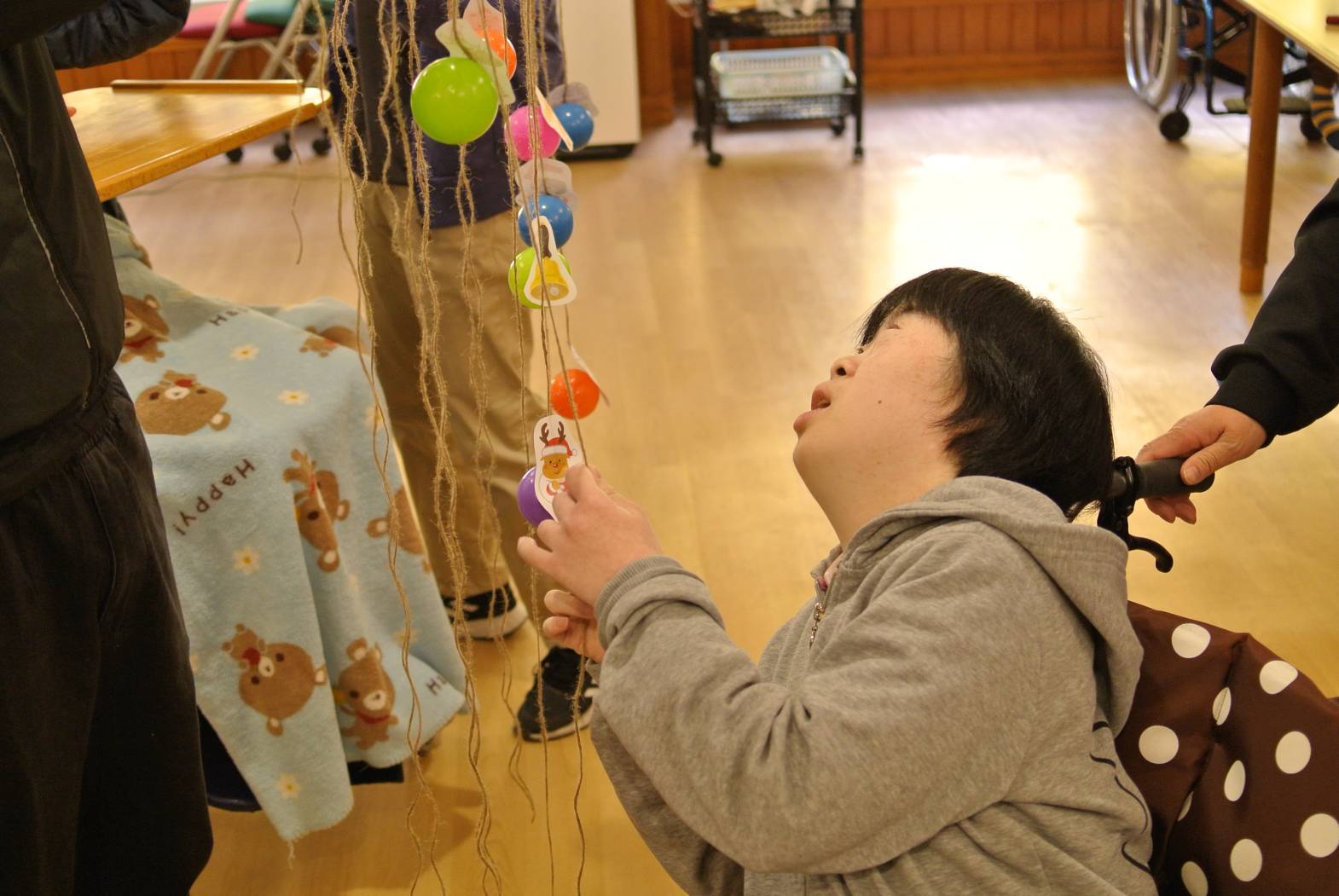 紐を引っ張り、オーナメント風の飾りを天井に吊り下げられたらゴールです!