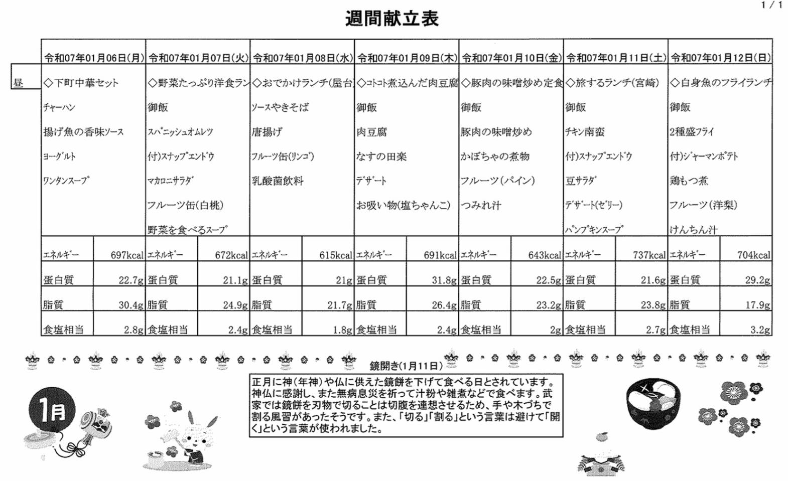1月6日(月)~1月12日(日)の献立表になります。ぜひご覧ください。