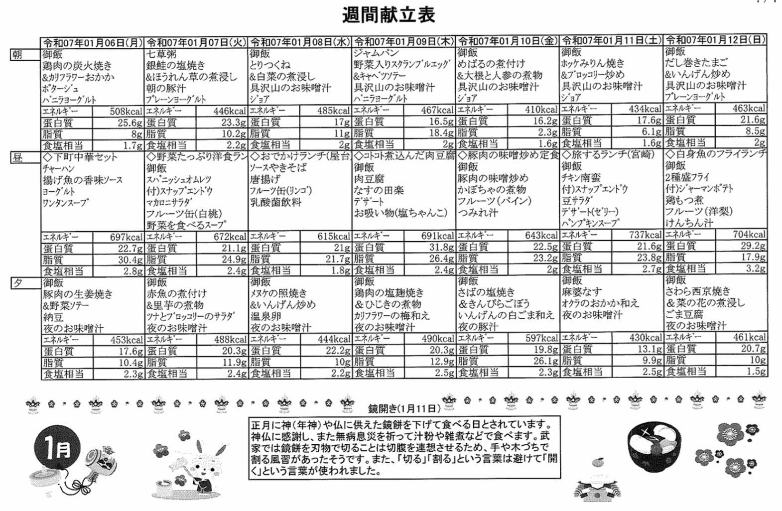 1月6日(月)~1月12日(日)の献立表になります。ぜひご覧ください。