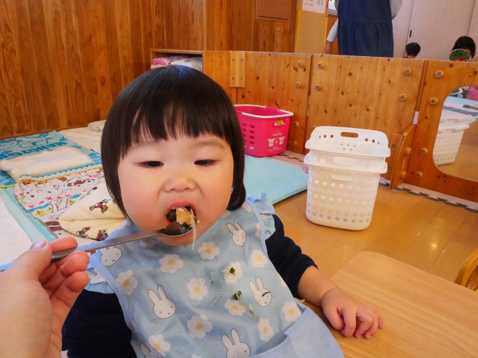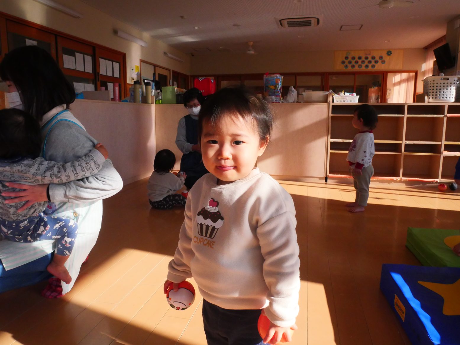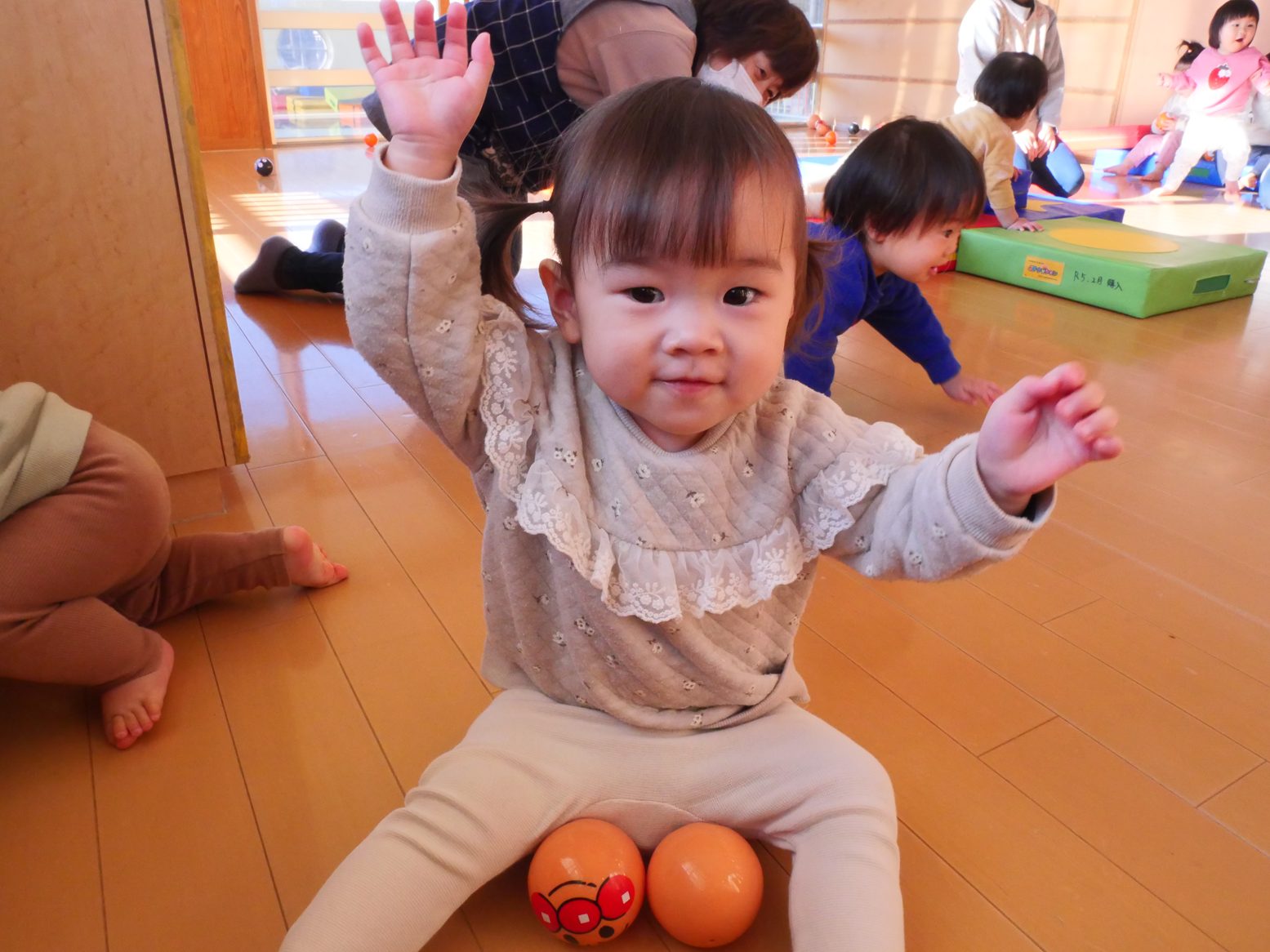 2025年が始まりました! 久しぶりの登園でも、にこにこで元気いっぱい過ごす子どもたち。 部屋遊びでは音楽に合わせてダンスを踊ったり、ボールを投げたり、マットの上を登ったり活発に過ごしました! 給食では、自分でスプーンを使ってモリモリ食べ進めてくれました! 今年もひよこ組みんなで楽しい思い出をたくさん作っていけたらと思います。 今年もよろしくお願い致します!