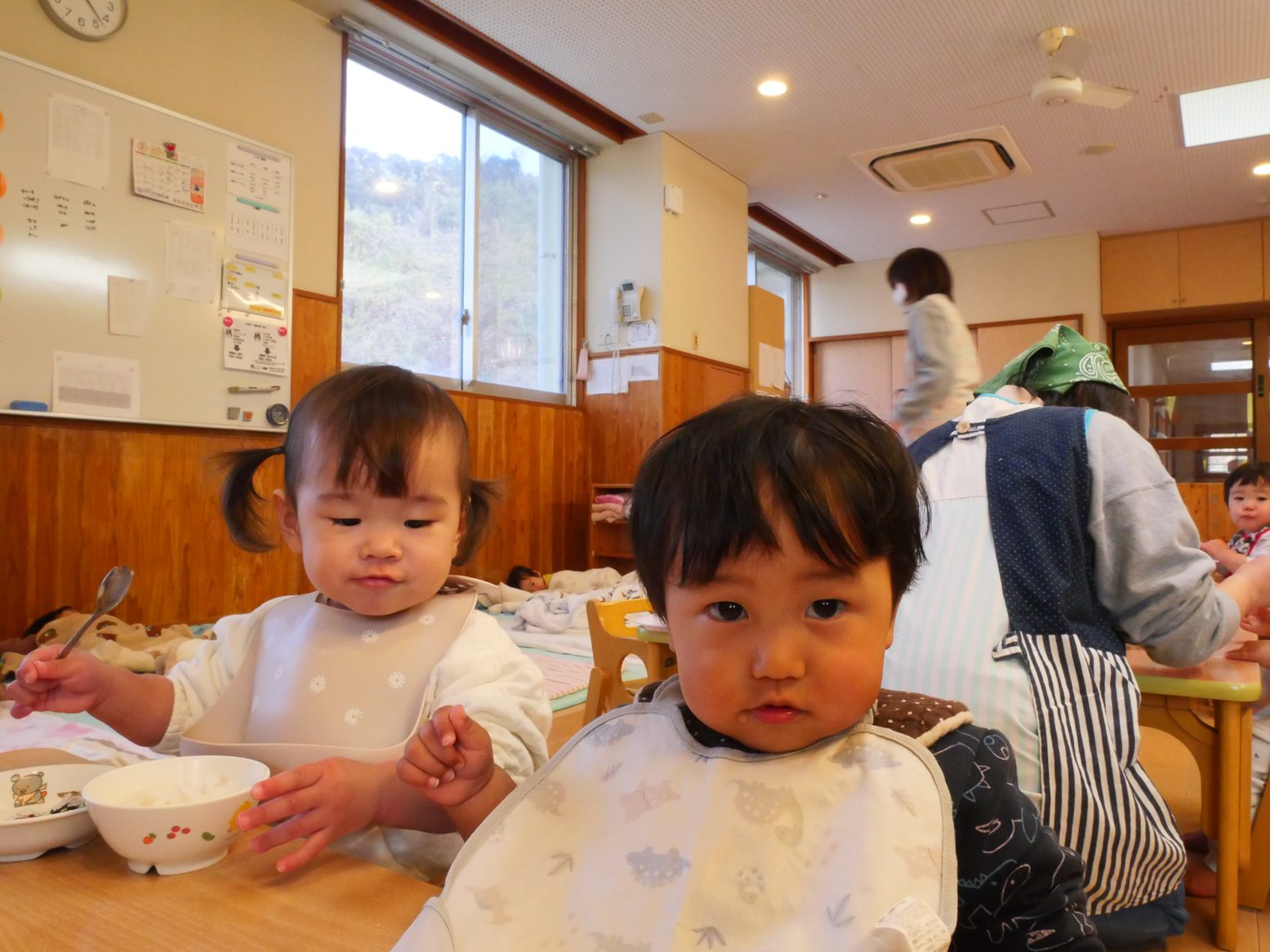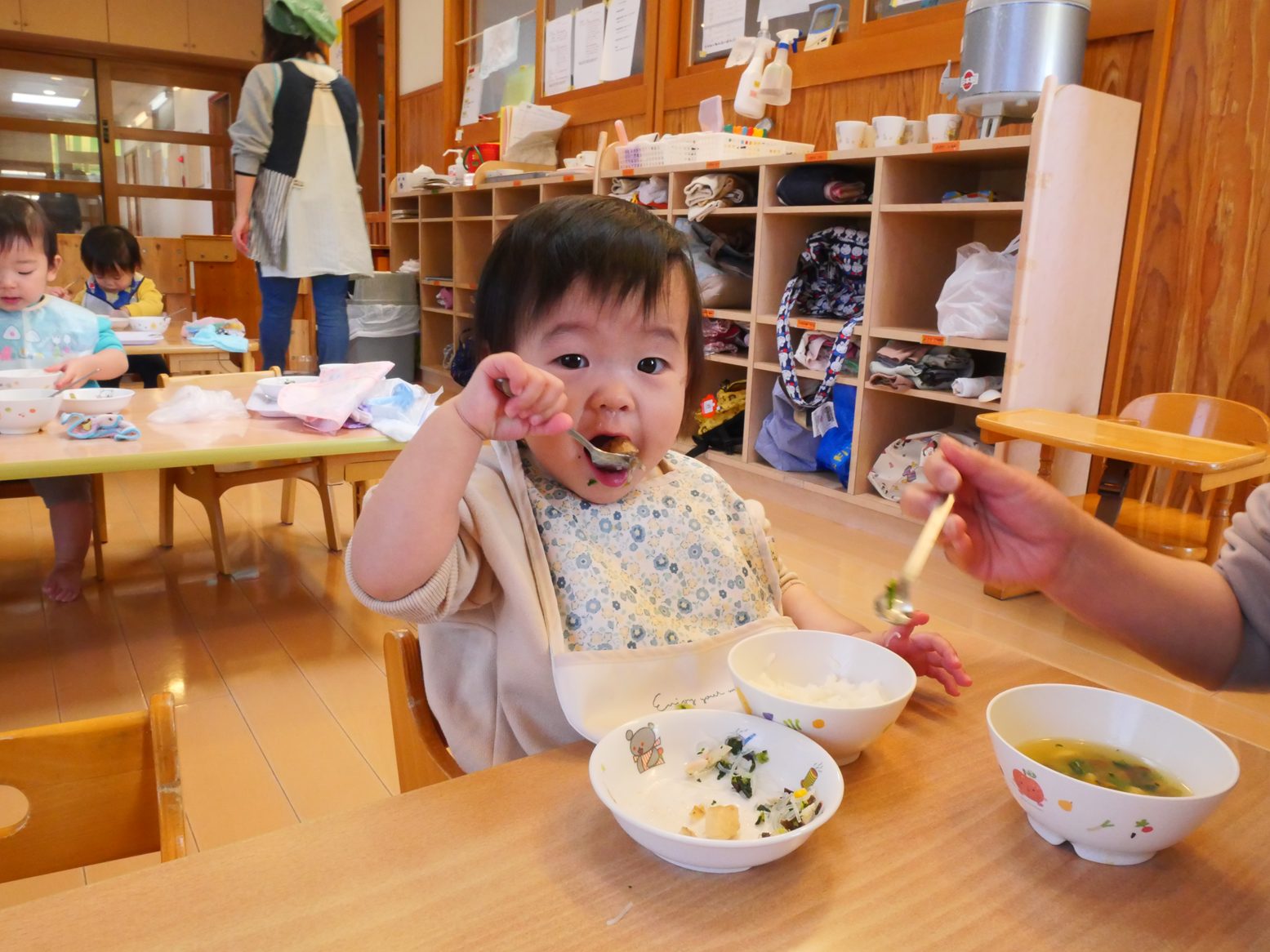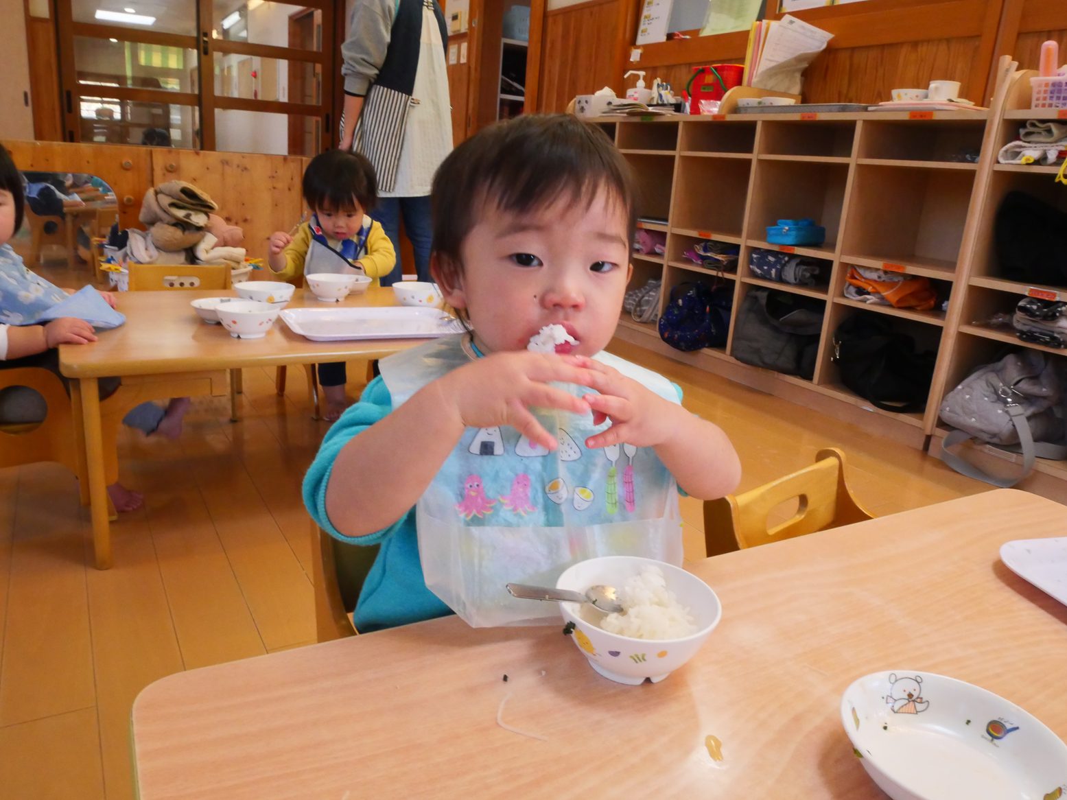 2025年が始まりました! 久しぶりの登園でも、にこにこで元気いっぱい過ごす子どもたち。 部屋遊びでは音楽に合わせてダンスを踊ったり、ボールを投げたり、マットの上を登ったり活発に過ごしました! 給食では、自分でスプーンを使ってモリモリ食べ進めてくれました! 今年もひよこ組みんなで楽しい思い出をたくさん作っていけたらと思います。 今年もよろしくお願い致します!