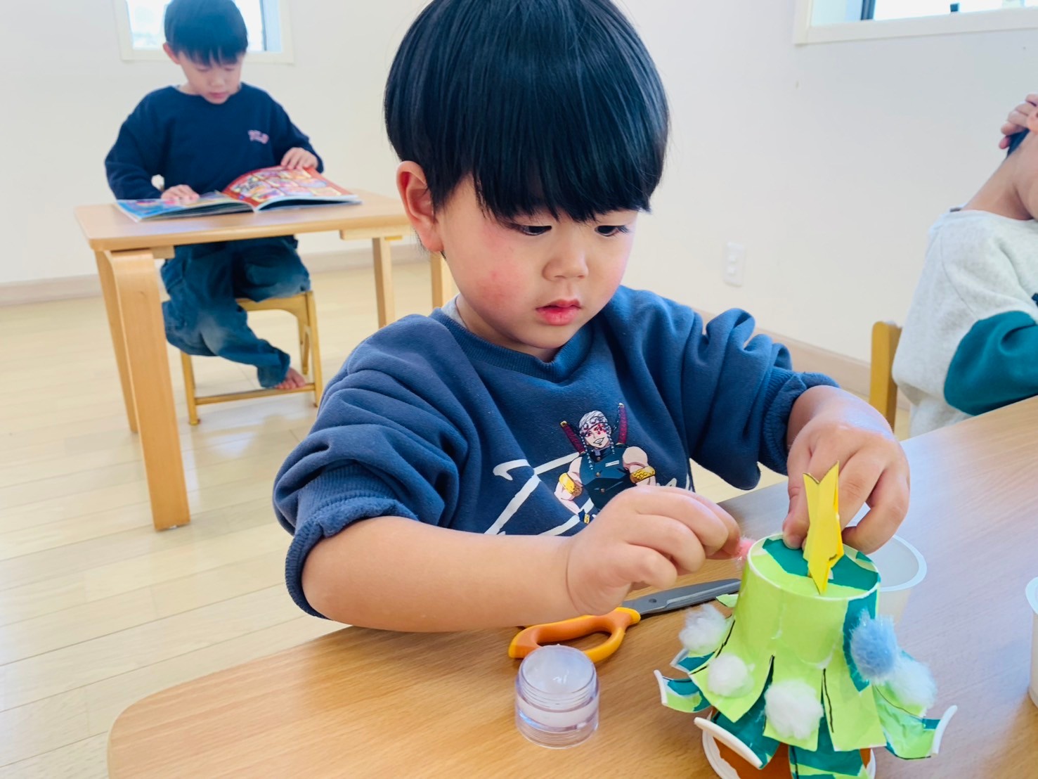 最後に星をつけてツリーが完成すると、こだわって作ったツリーをお友達同士で見せ合う様子が見られました!