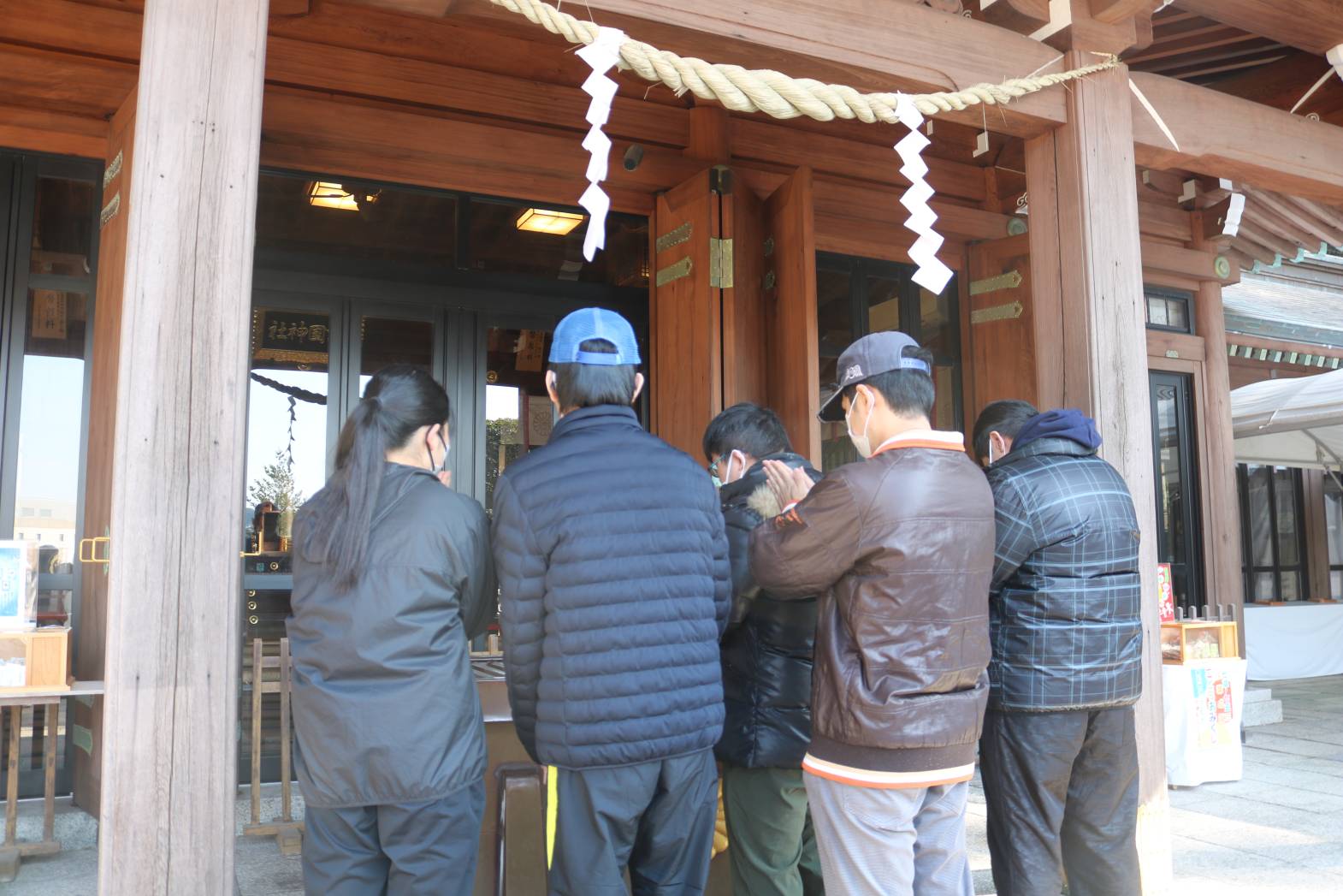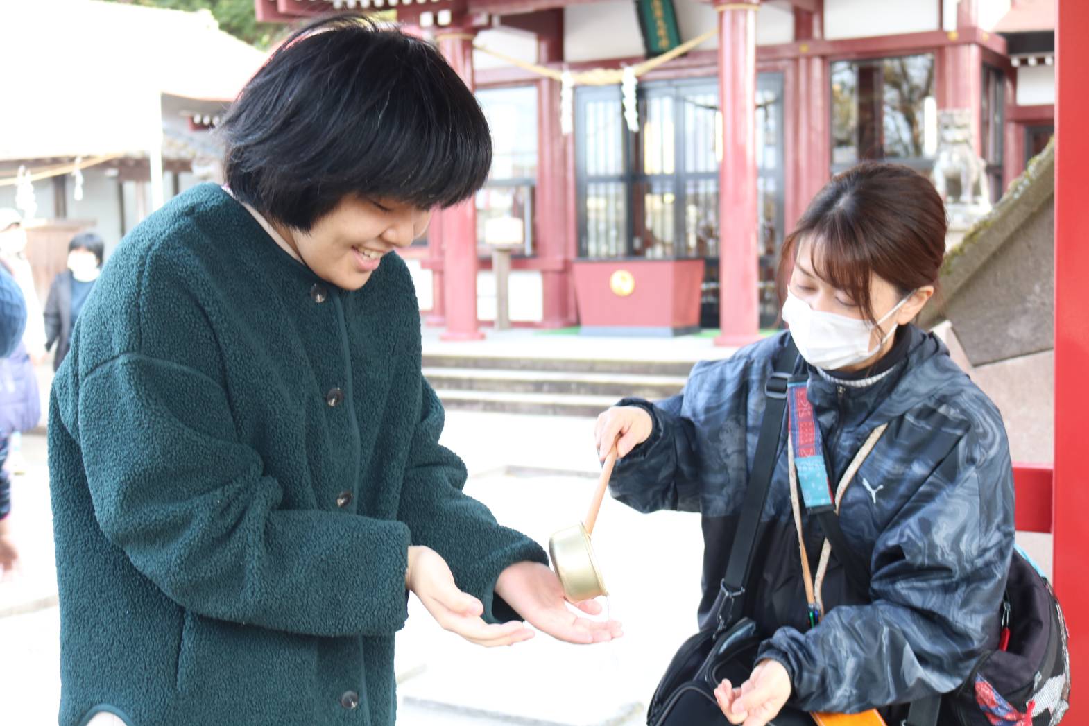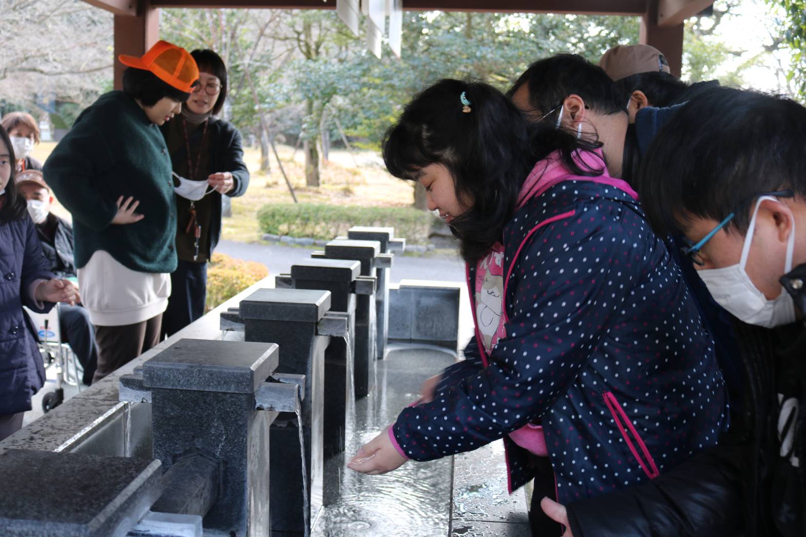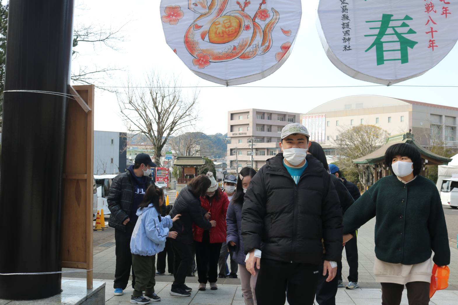 本日、「初詣」にいってきました。 護国神社と鹿児島神社へ参拝に行きました。 支援員と一緒に、二礼二拍手一礼をしながら、神様へ健康祈願をしました。 天候にも恵まれ、皆さん笑顔で楽しまれているご様子でした。 お散歩も兼ねて、神社間を歩いて移動 そして帰園後は、注文していたお弁当を皆さんで頂きました。 チキン南蛮や野菜のナムル、煮物などボリュームたっぷりのお弁当にみなさん 一段と表情が明るくなっていました。 外出活動と美味しいご飯の両方を 楽しんでもらえた一日になりました。