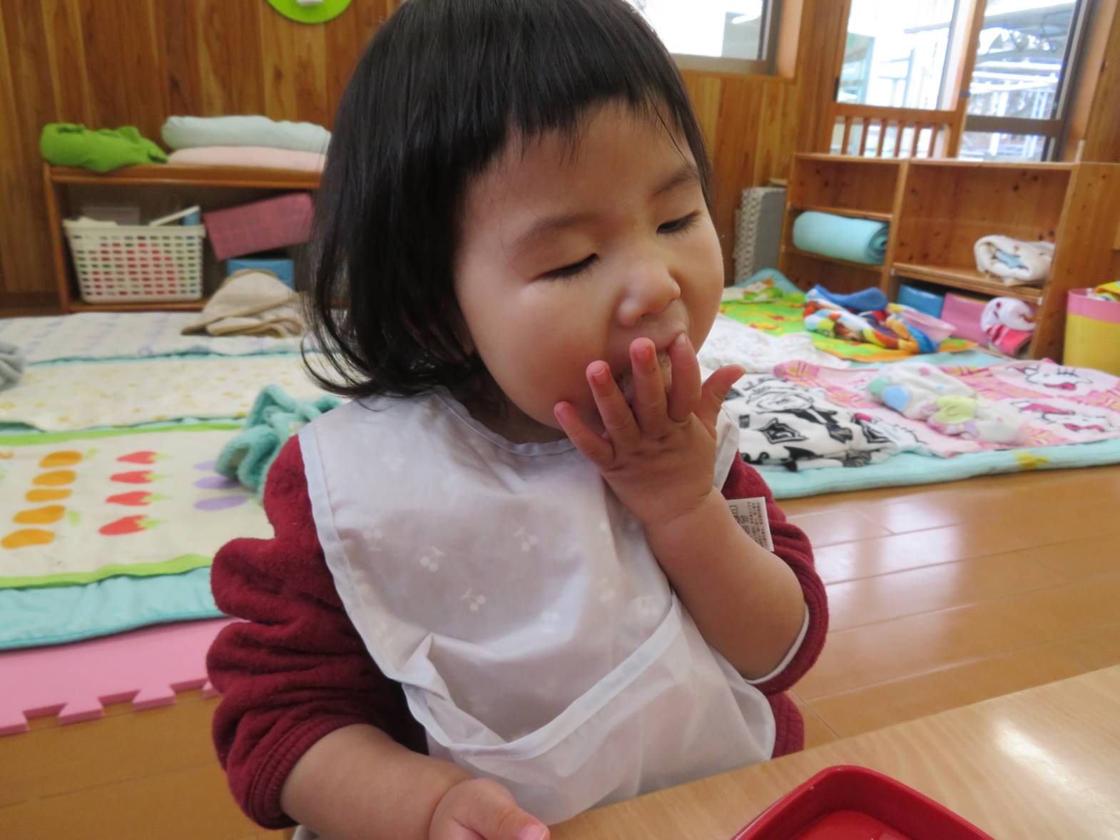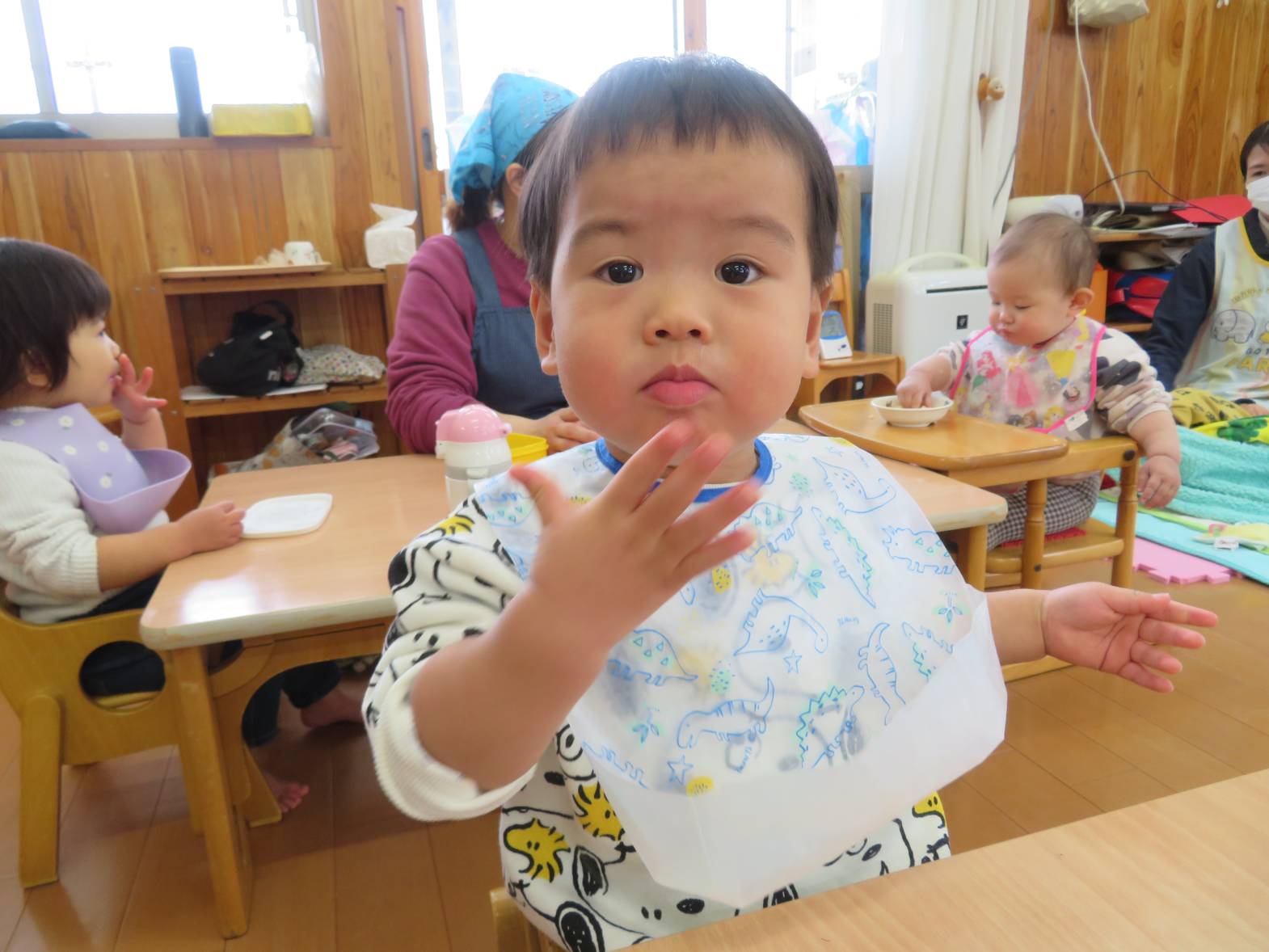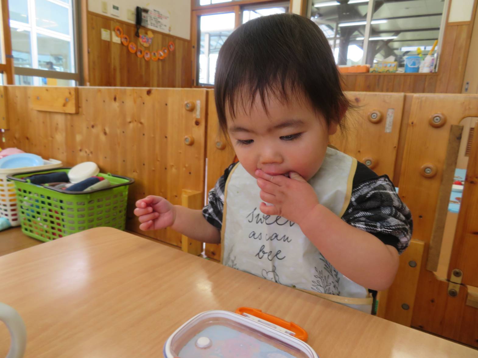 たくさん体を動かし、お腹が空いたひよこ組さん。